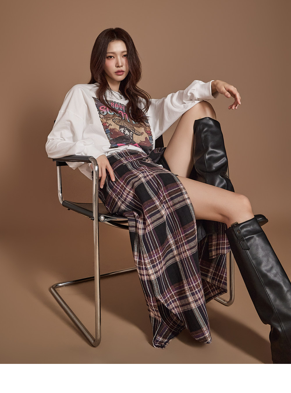 전면 프린팅 디테일로 밋밋하지 않은 아웃핏을 선사하고