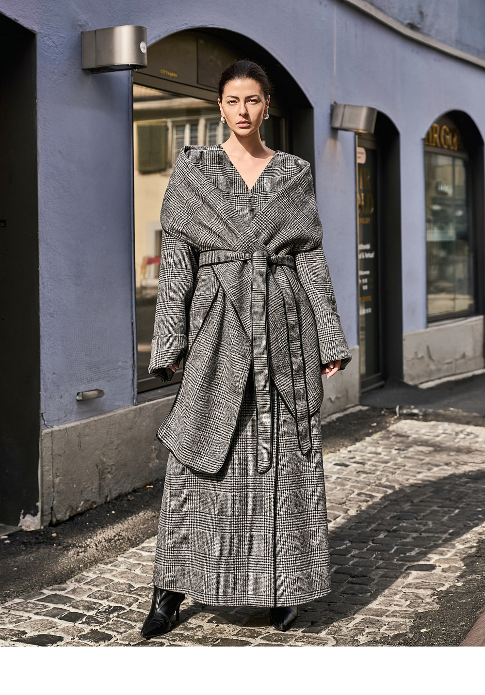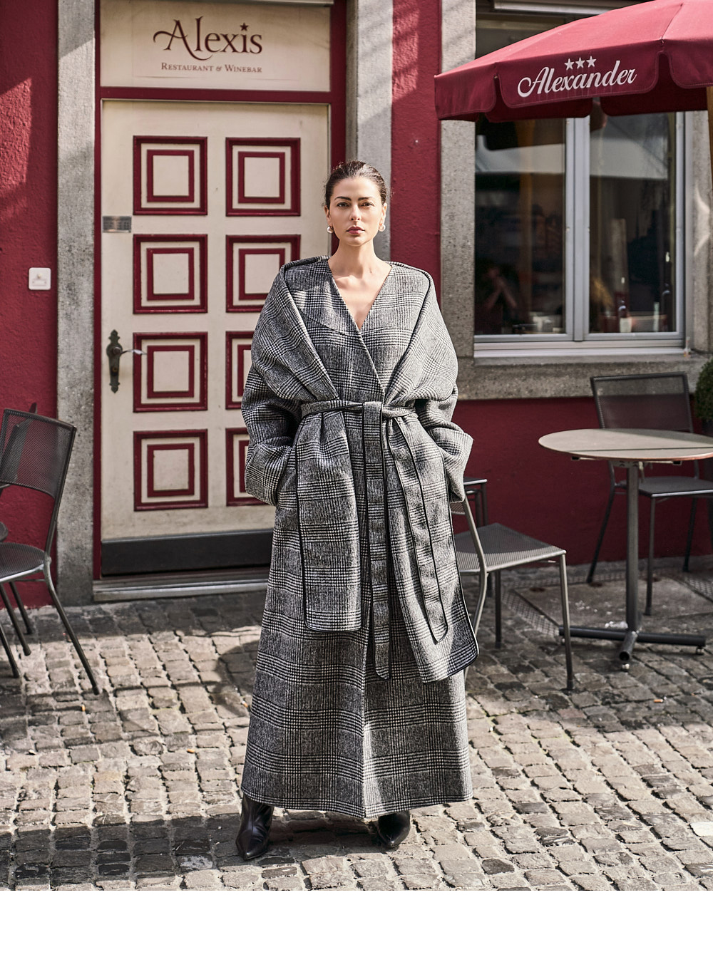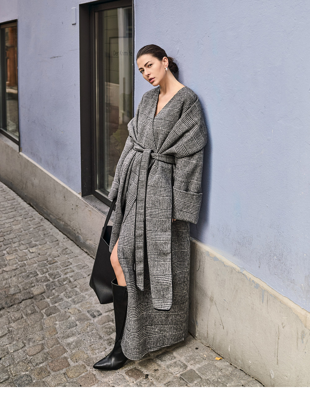 173CM模特,ONE尺码,CHARCOAL色穿着。