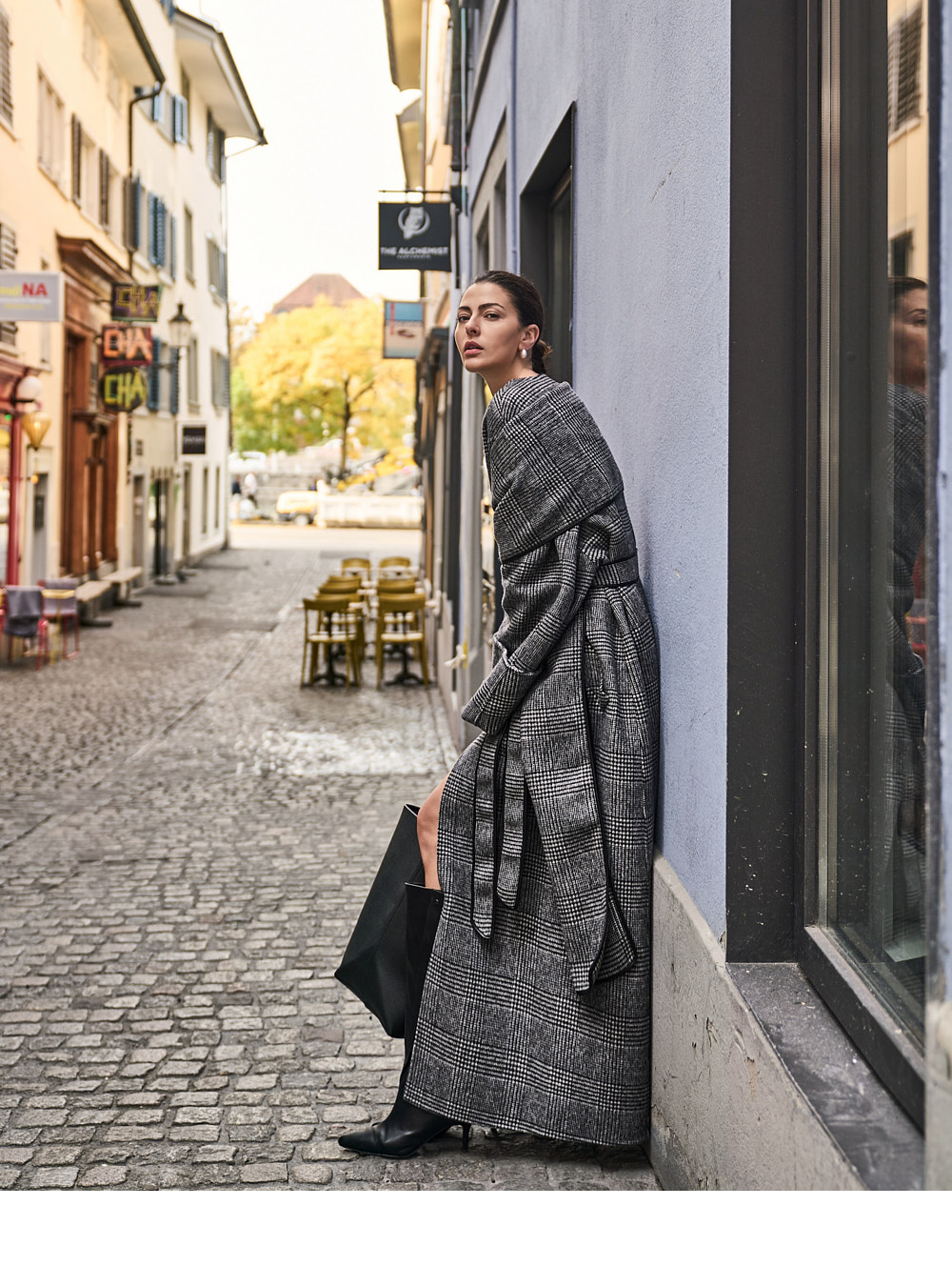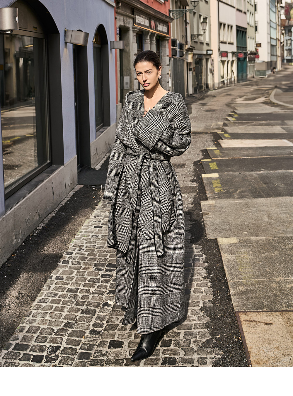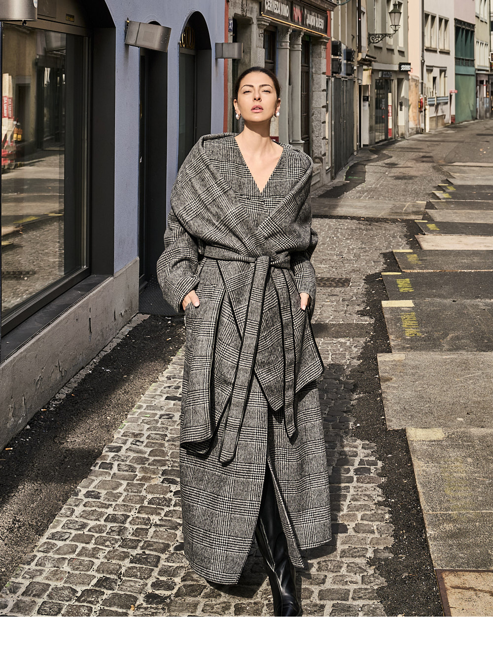 173CM模特,ONE尺码,CHARCOAL色穿着。