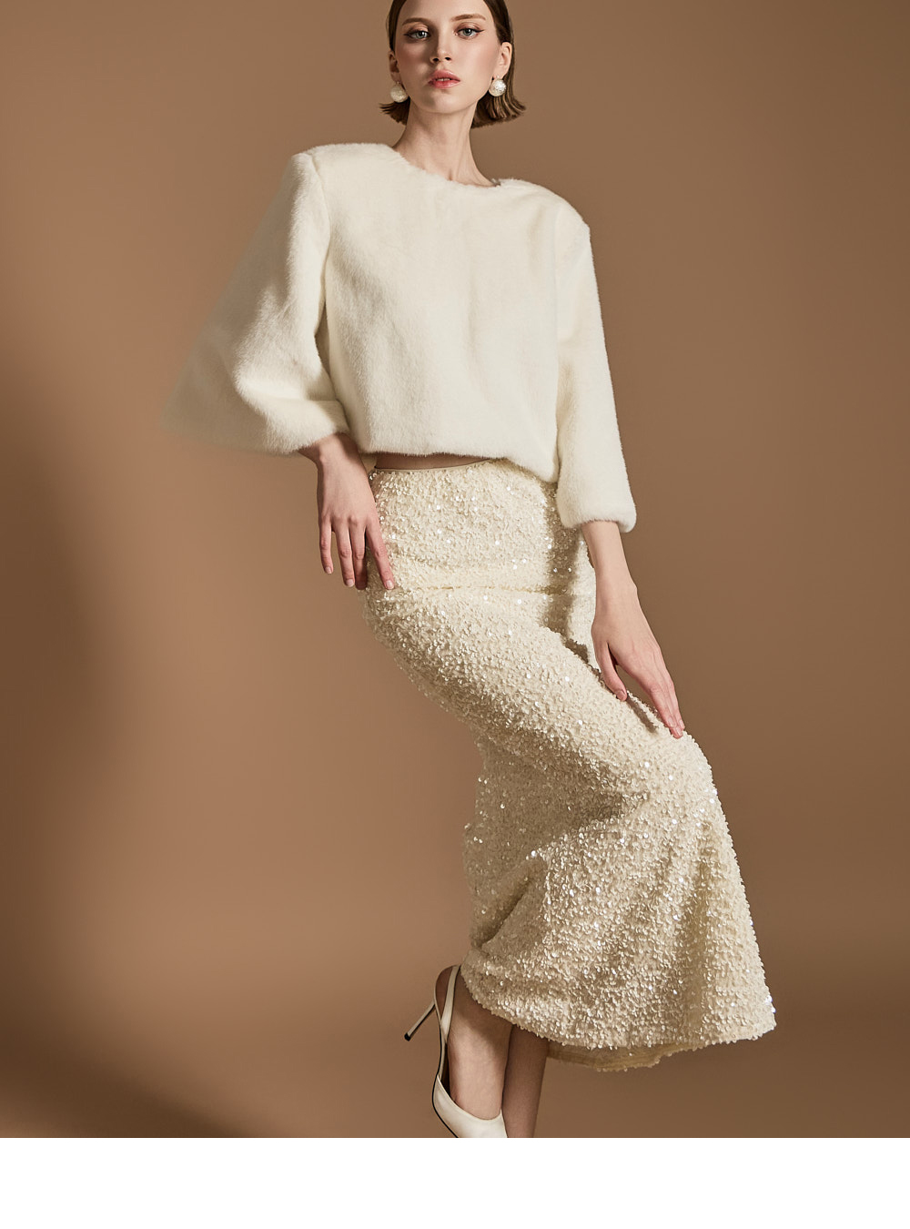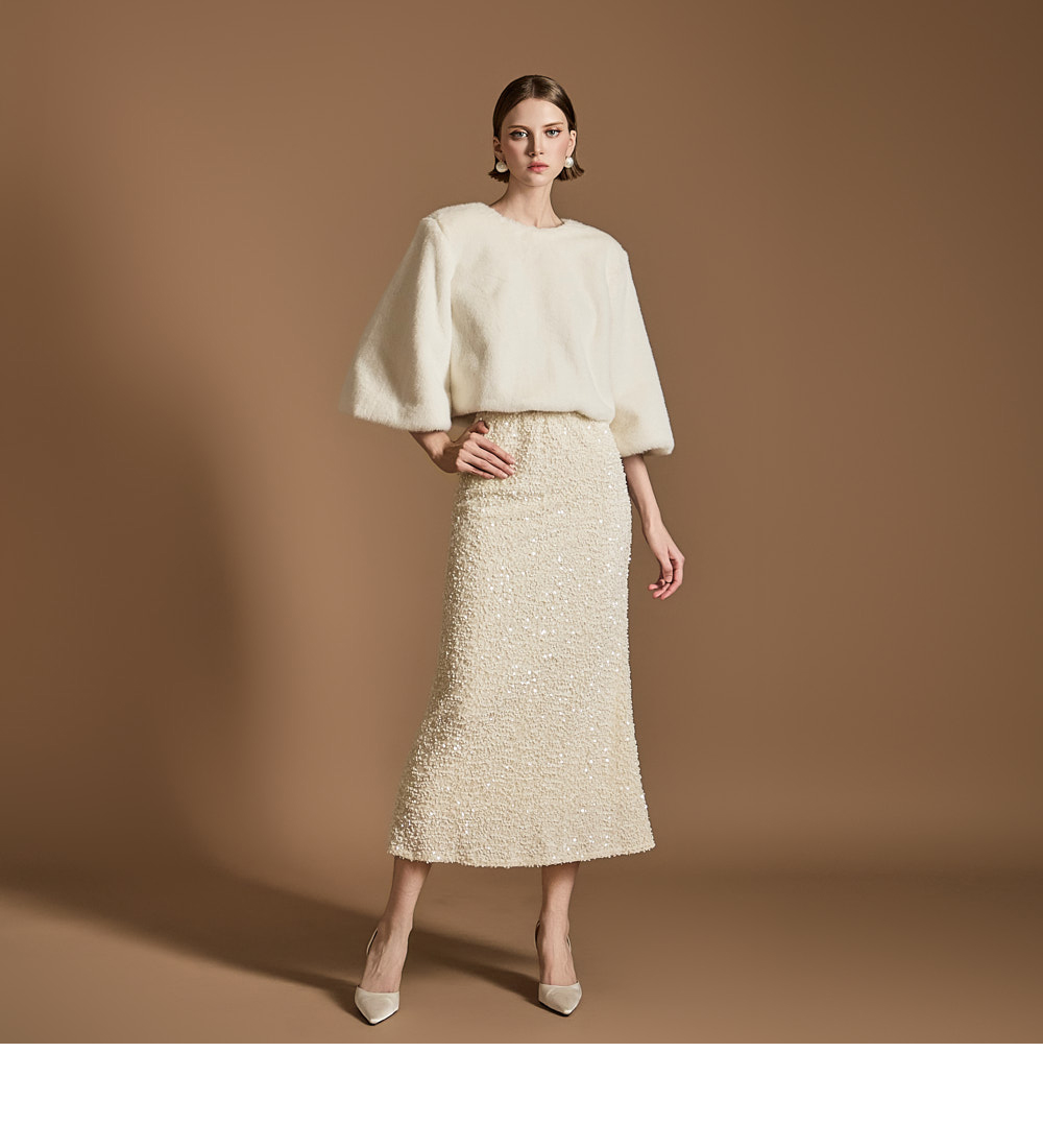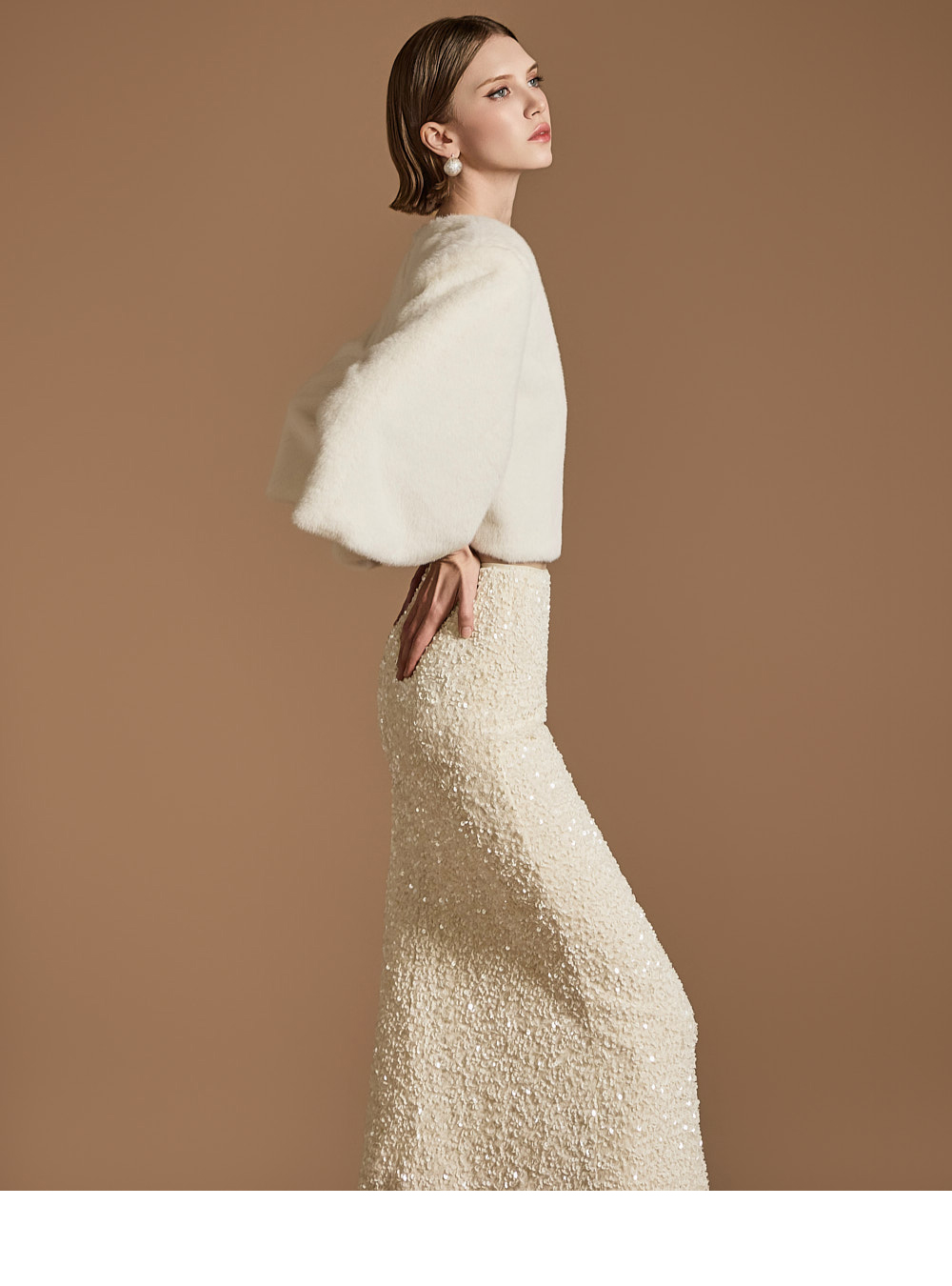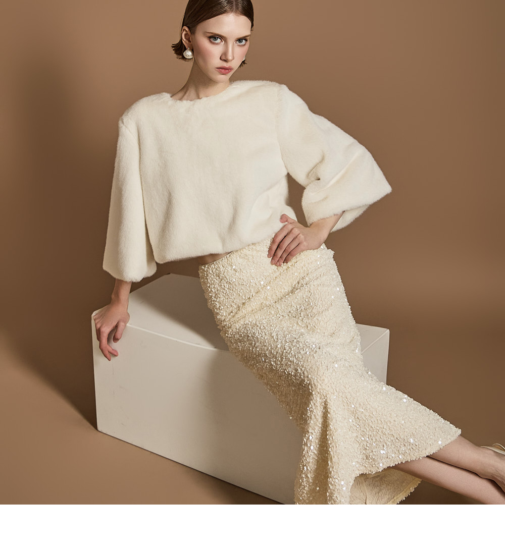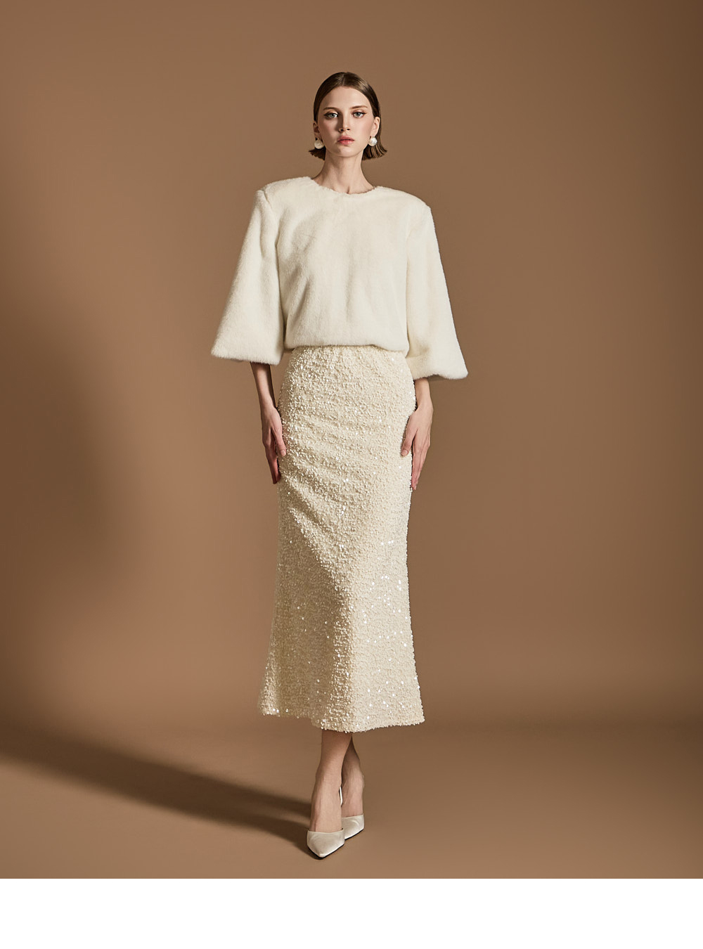这是一款优雅的毛绒衬衫。采用柔软的聚酯纤维材质制作,ONE尺码设计,可根据体型舒适穿着。背部纽扣设计,方便穿脱,内部全衬里提供柔软的穿着感。适中的长度便于与多种下装搭配,肩部加入肩垫塑造轮廓,七分袖设计与宽松袖口增添优雅气质。柔软的毛绒面料与优雅剪裁,使这款单品充满年末氛围,推荐给DINT顾客。模特身高174CM,穿着ONE尺码,颜色为象牙白。