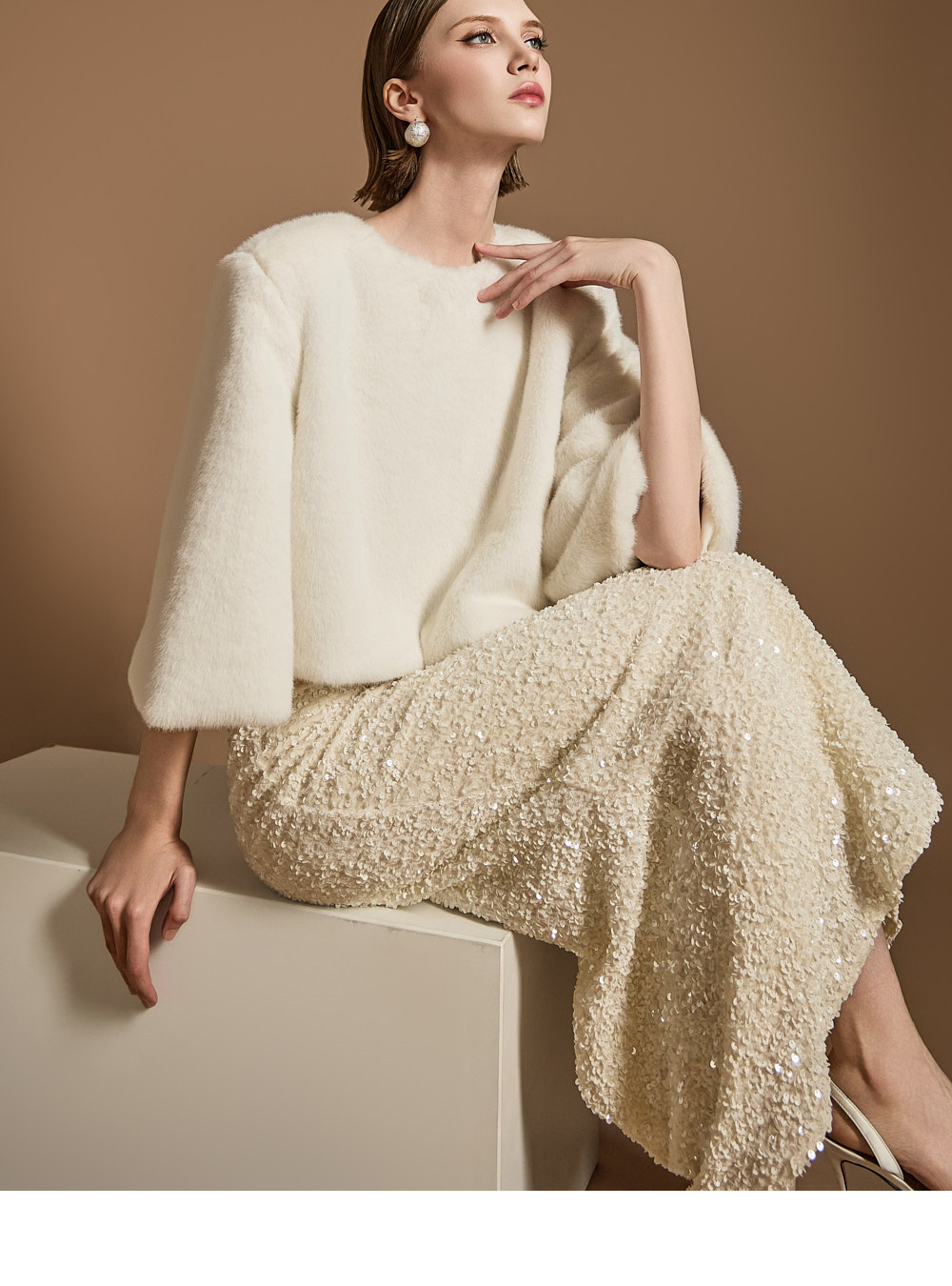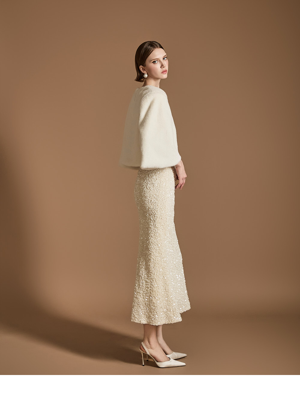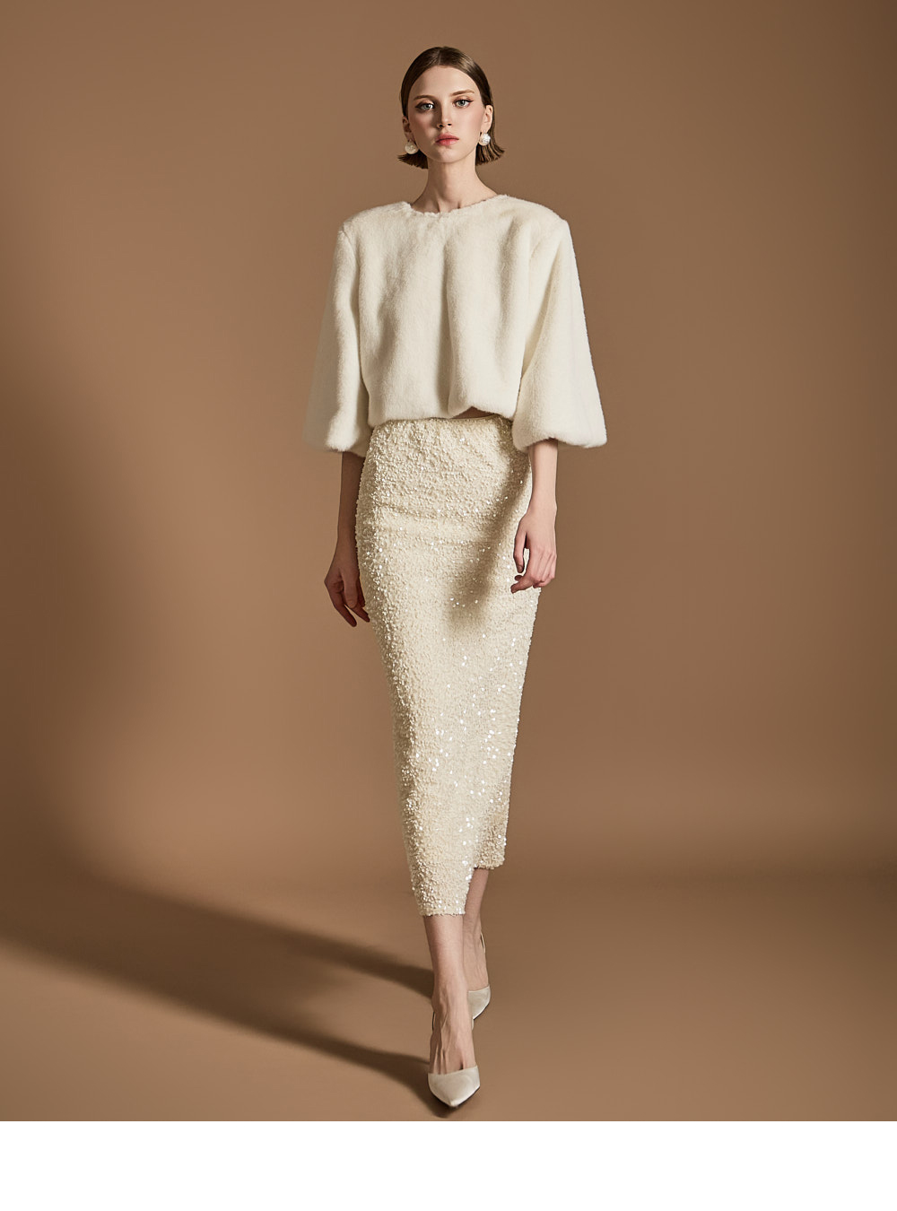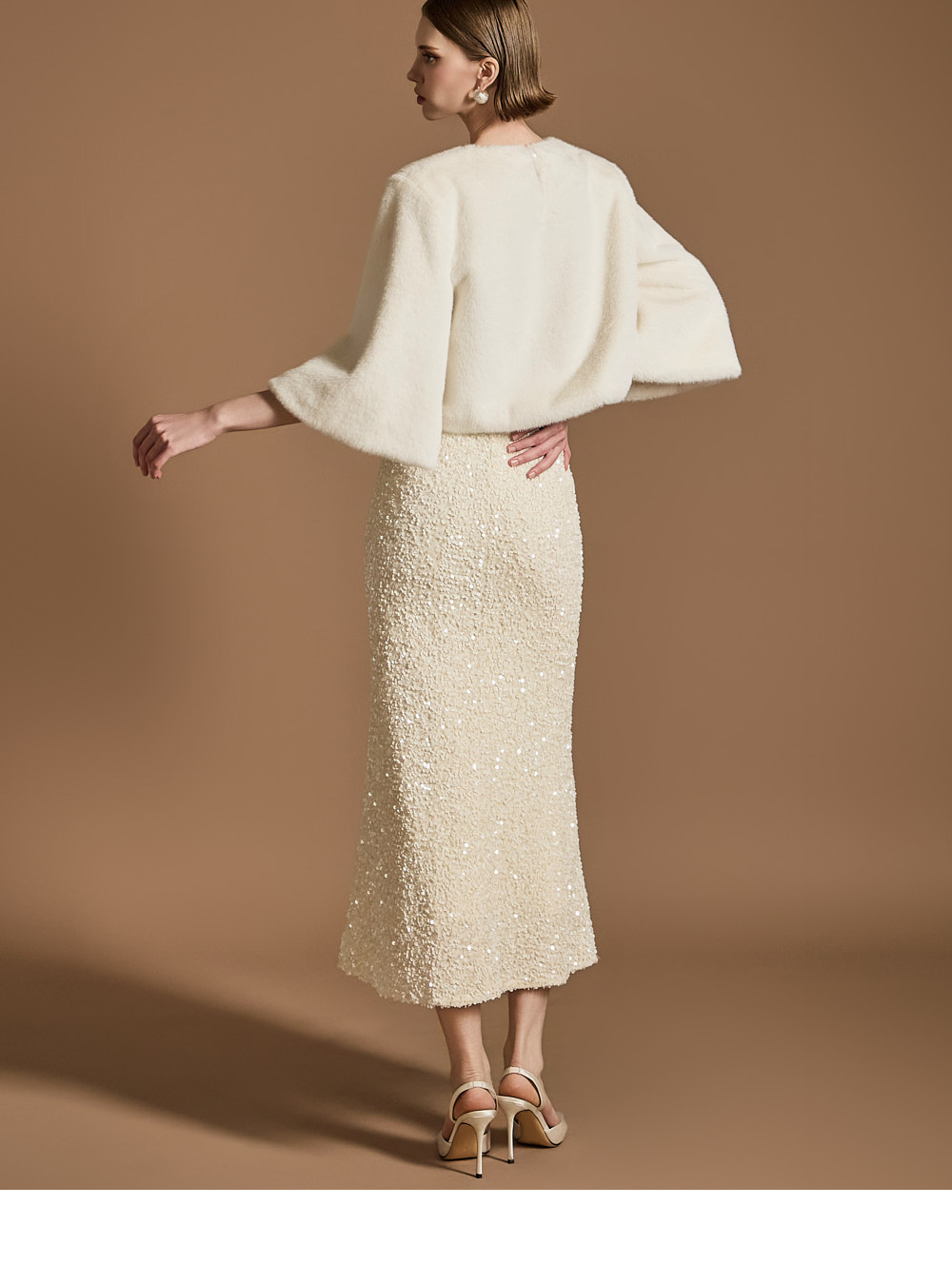 这是一款优雅的毛绒衬衫。采用柔软的聚酯纤维材质制作,ONE尺码设计,可根据体型舒适穿着。背部纽扣设计,方便穿脱,内部全衬里提供柔软的穿着感。适中的长度便于与多种下装搭配,肩部加入肩垫塑造轮廓,七分袖设计与宽松袖口增添优雅气质。柔软的毛绒面料与优雅剪裁,使这款单品充满年末氛围,推荐给DINT顾客。模特身高174CM,穿着ONE尺码,颜色为象牙白。