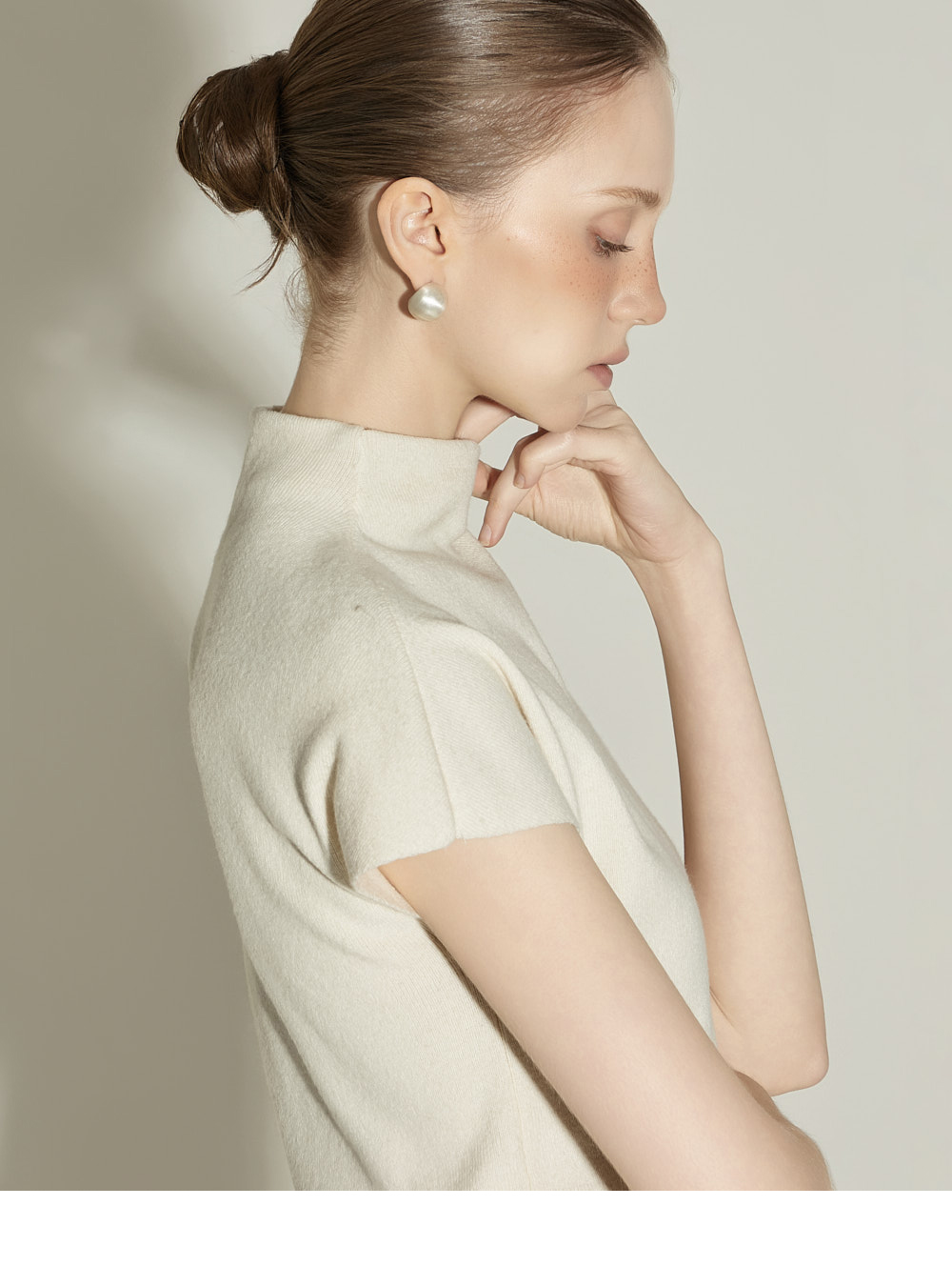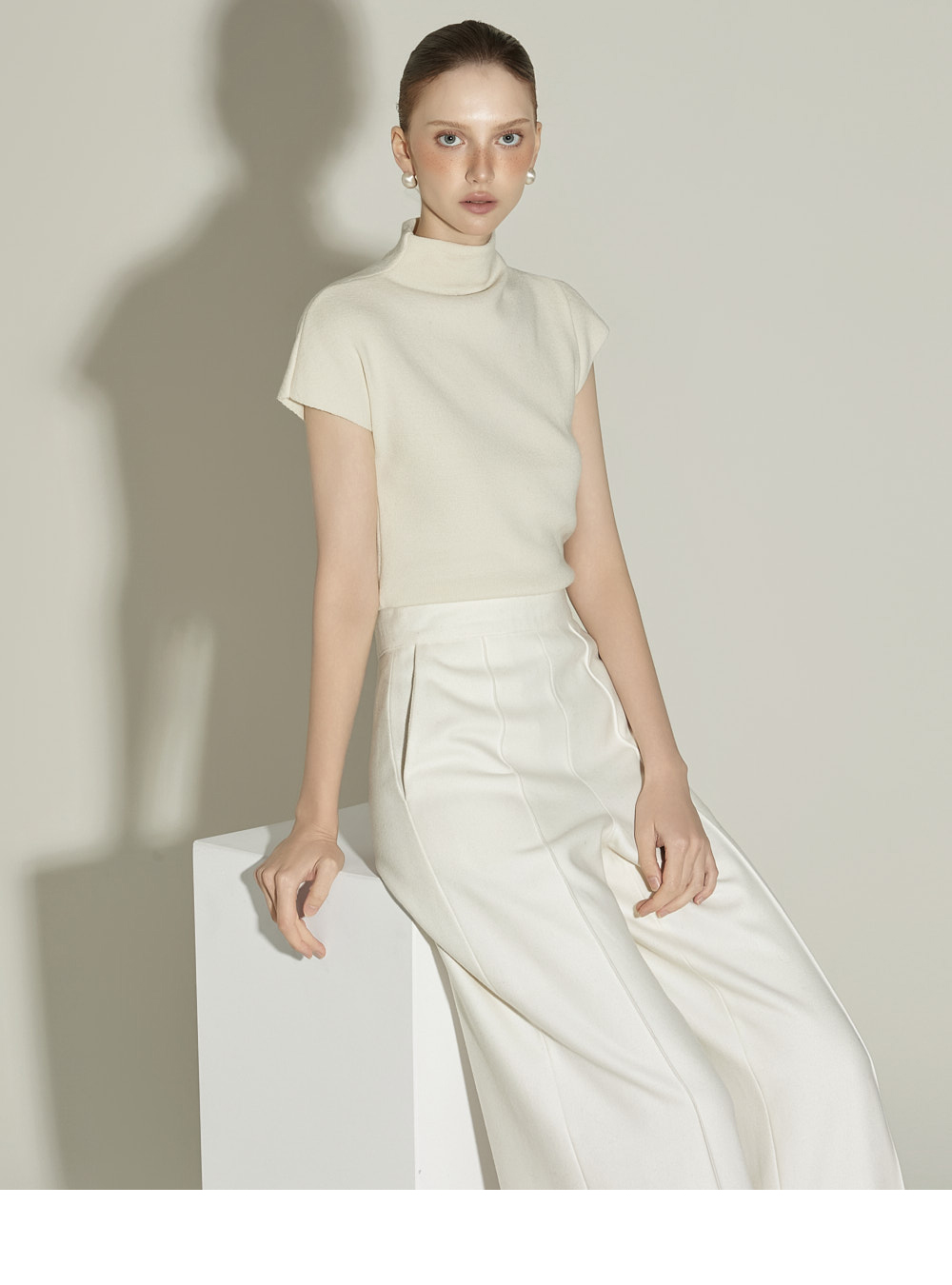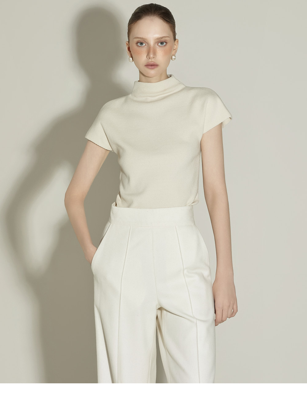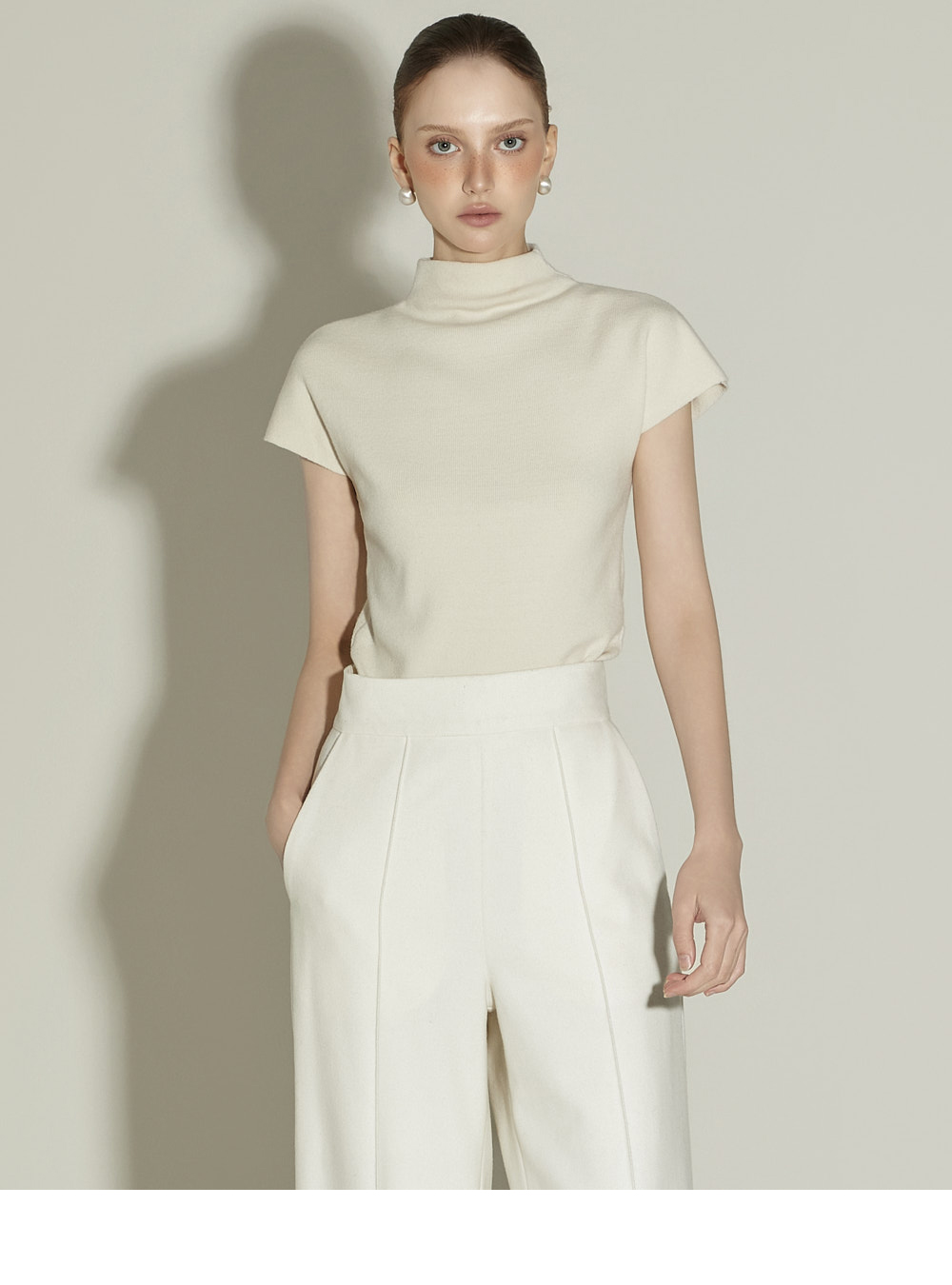 174CM 模特 ONE 尺码,象牙白 颜色穿着。