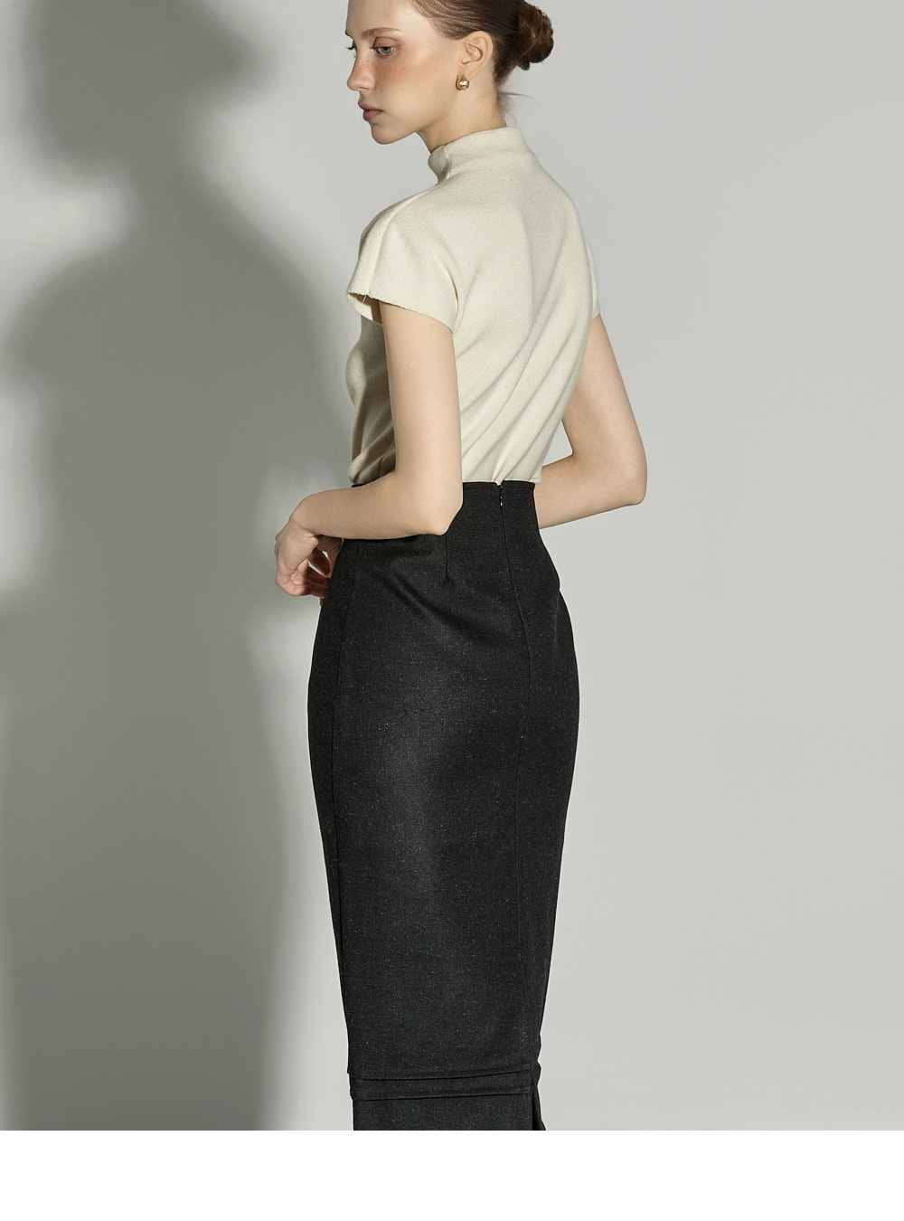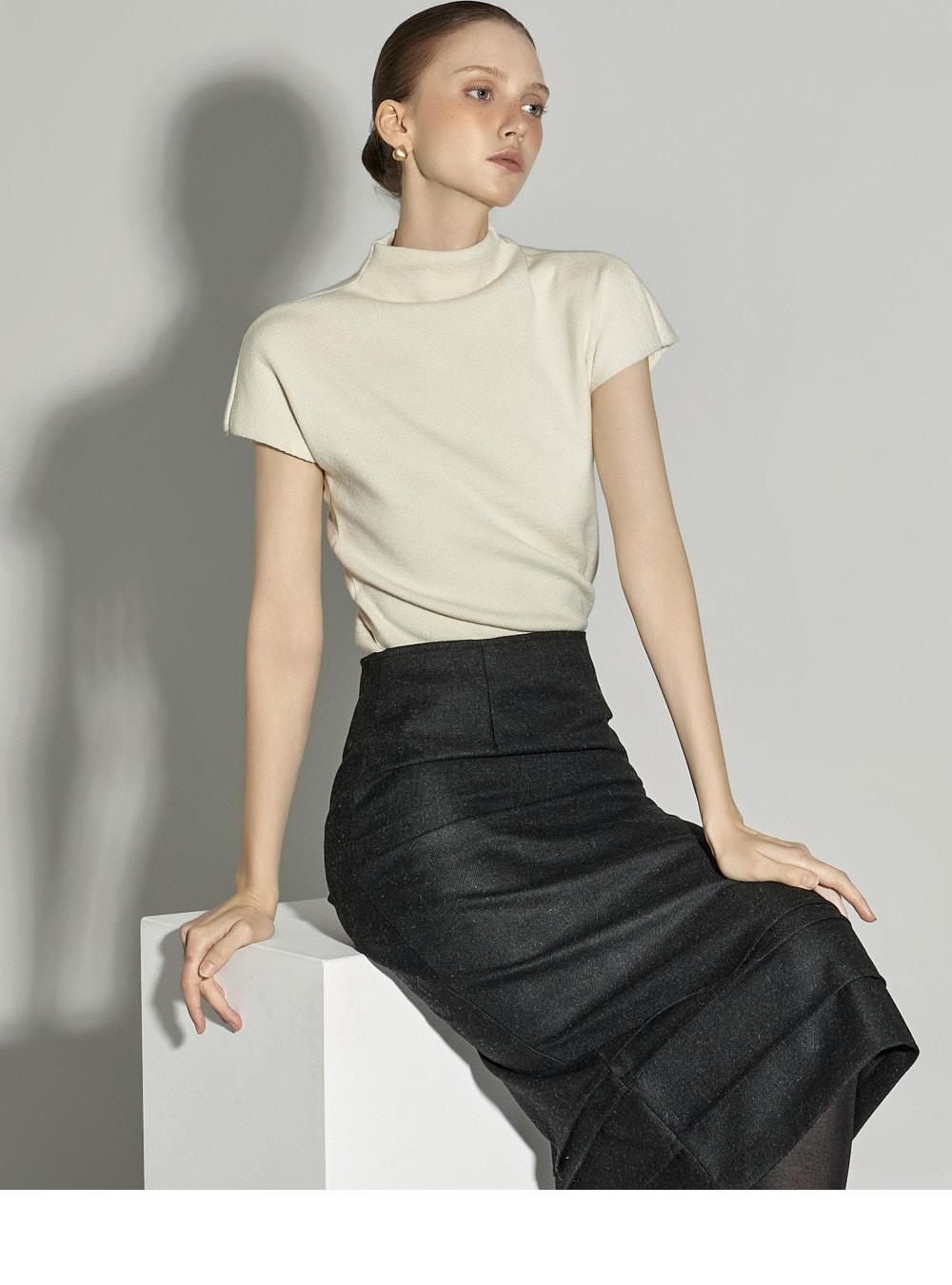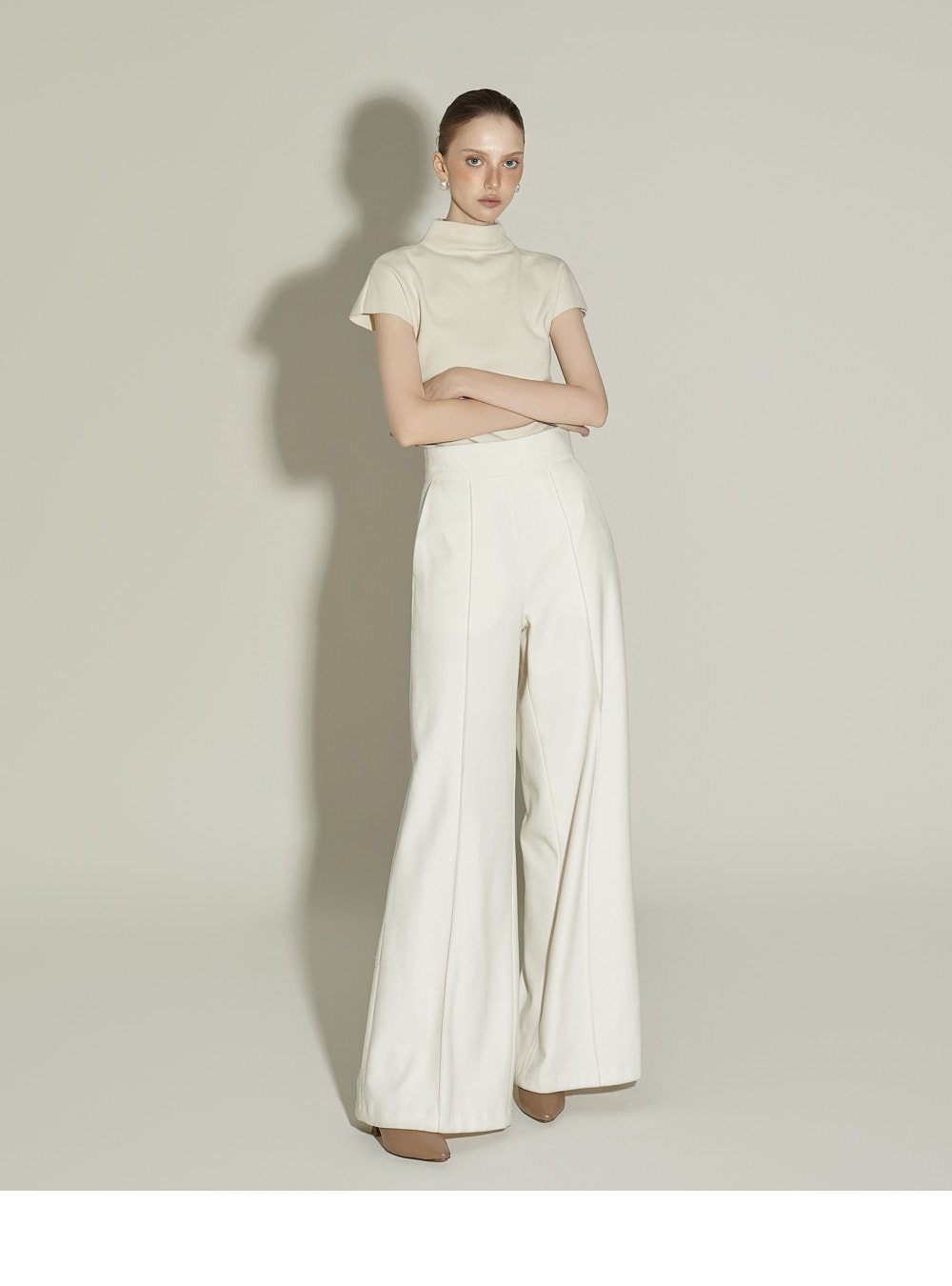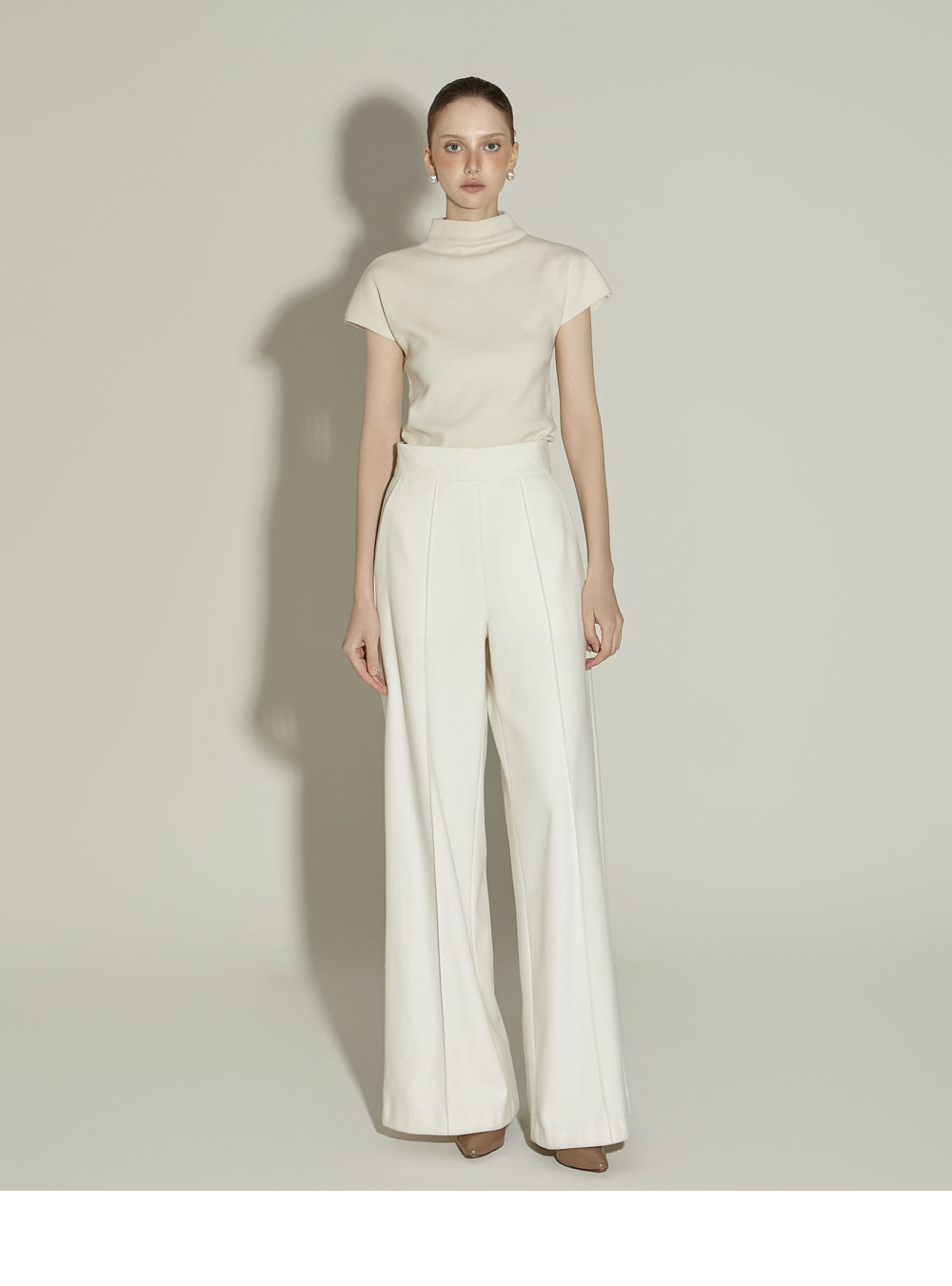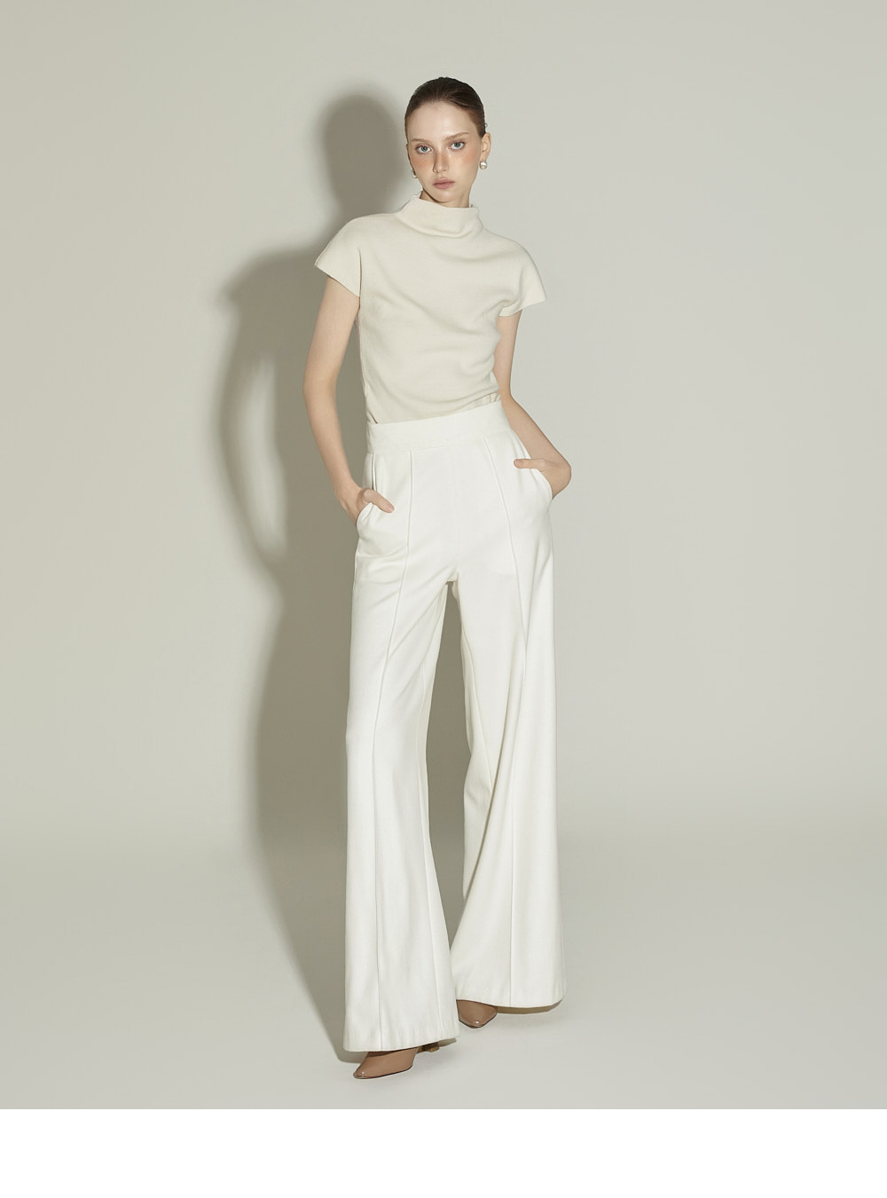 174CM 模特 ONE 尺码,象牙白 颜色穿着。