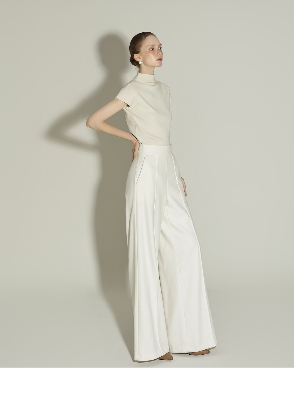 P9065 褶裥宽羊毛休闲裤