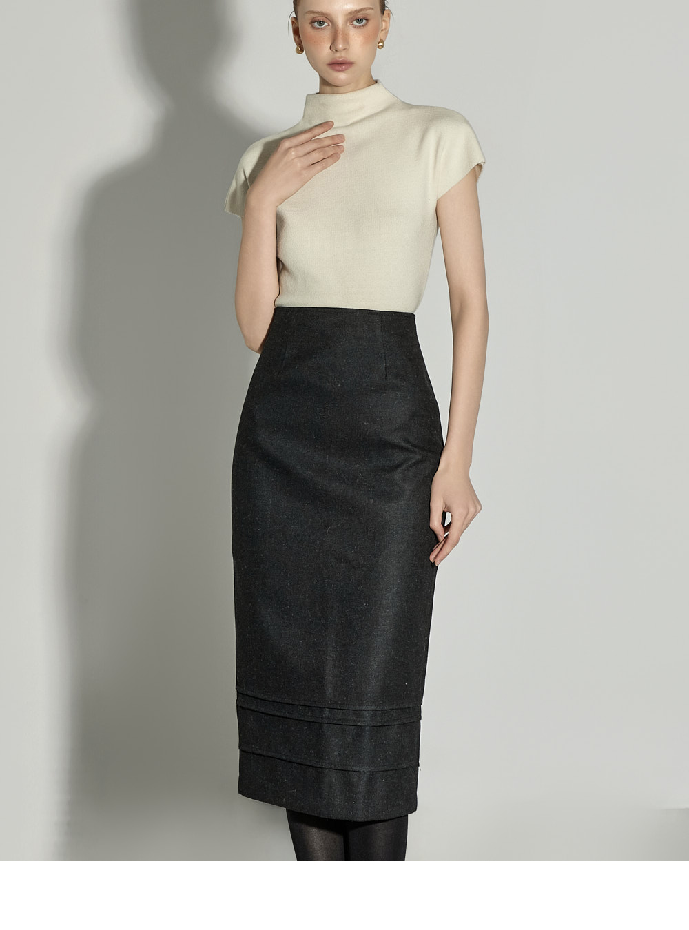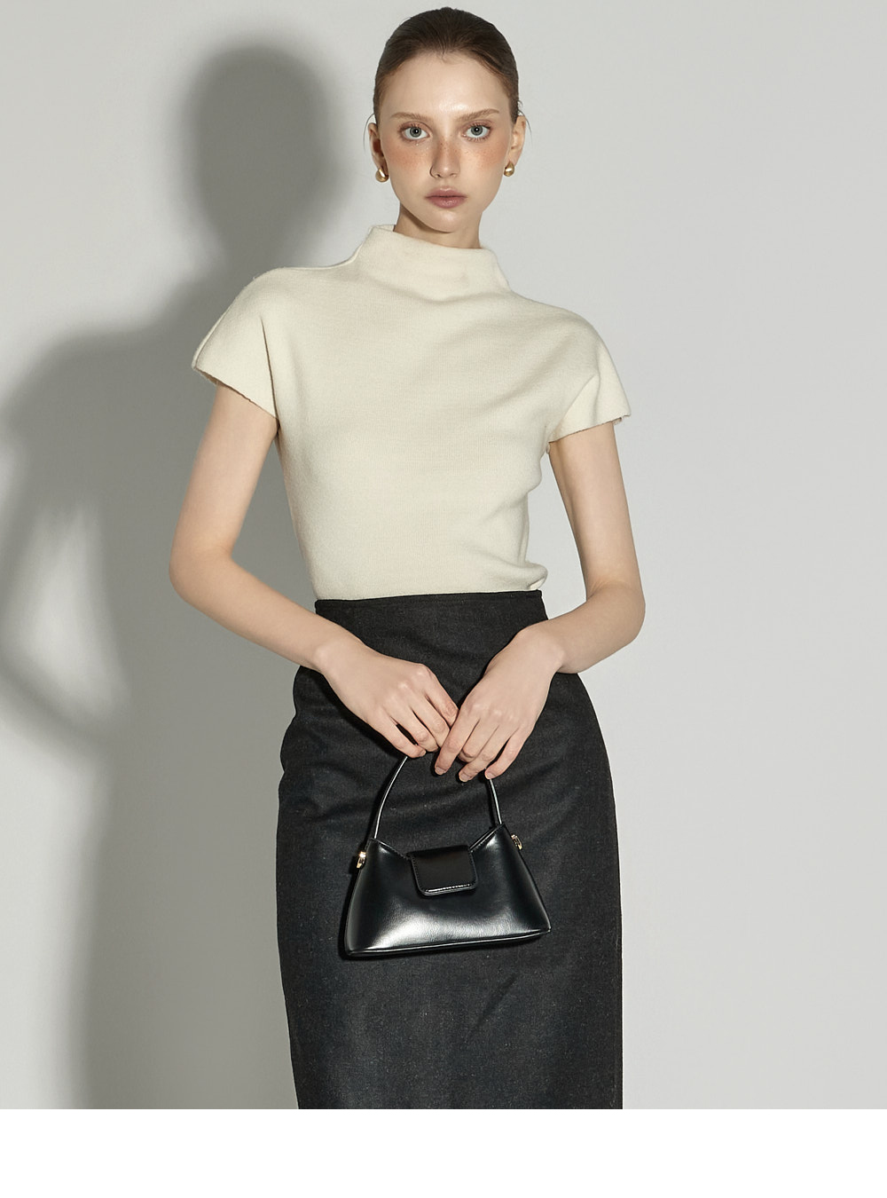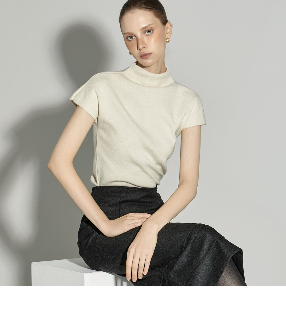 内搭半高领针织衫。