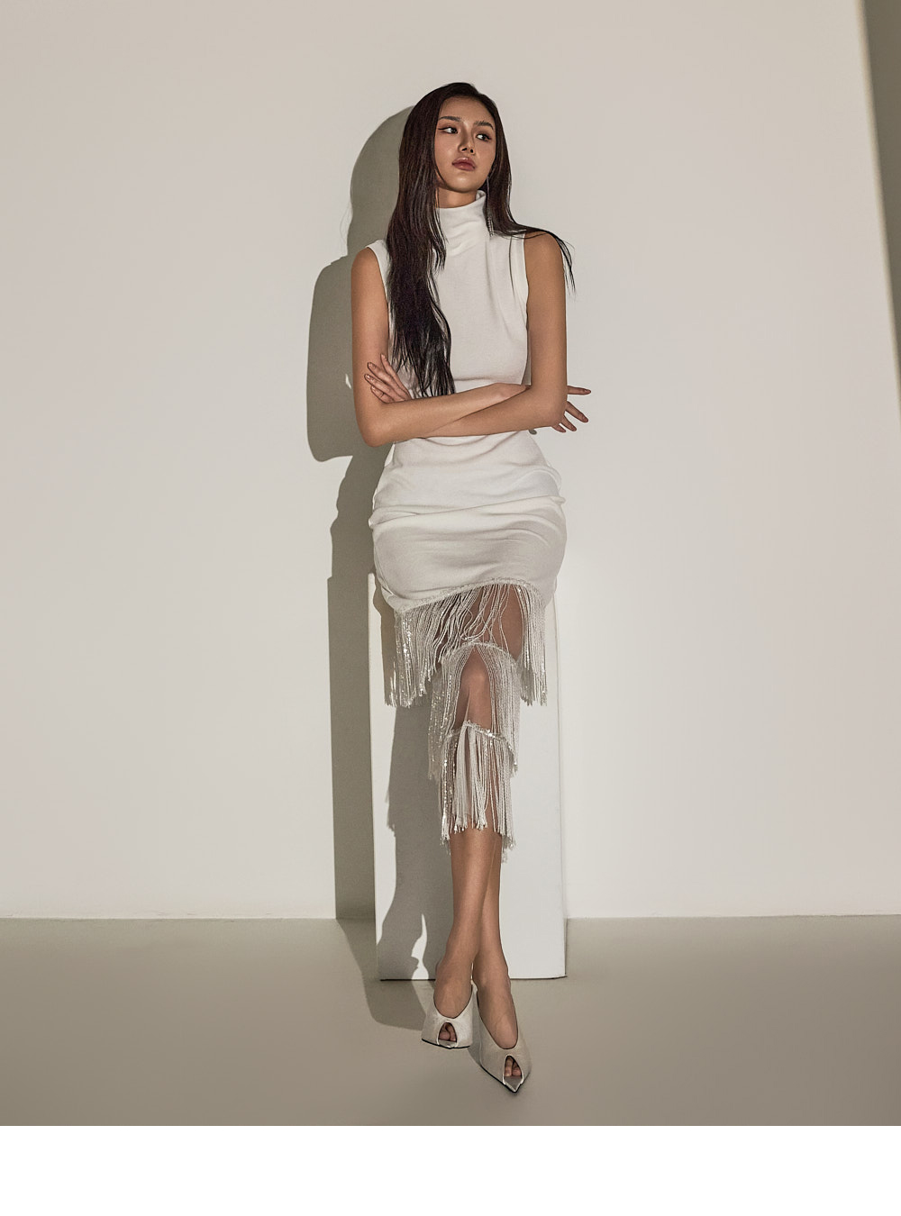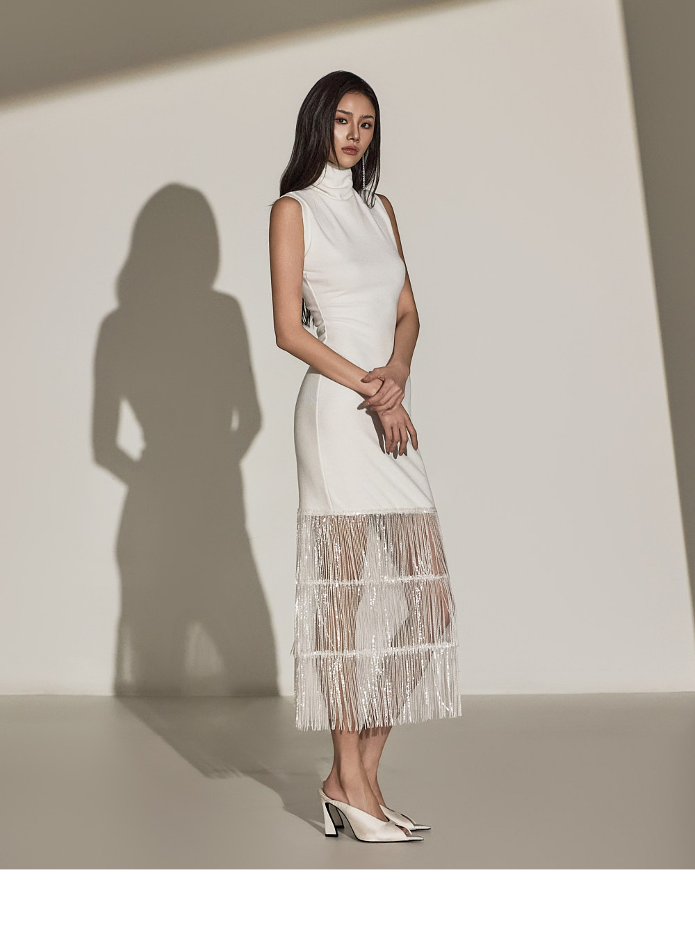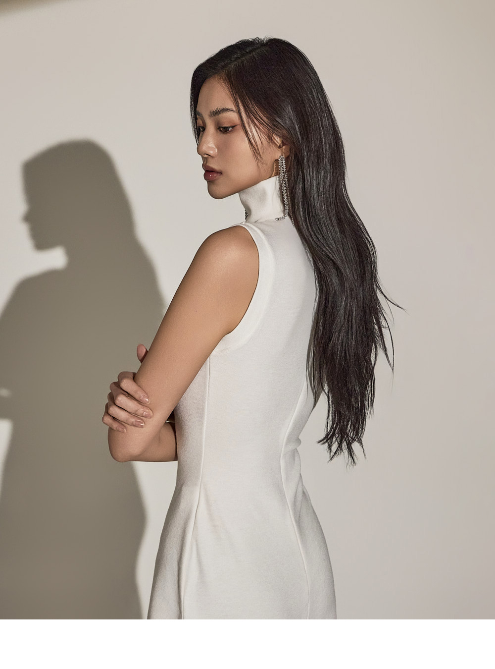 하이 네크라인으로 세련된 페이스 라인을 자아내며,