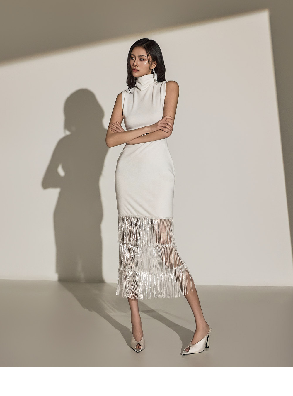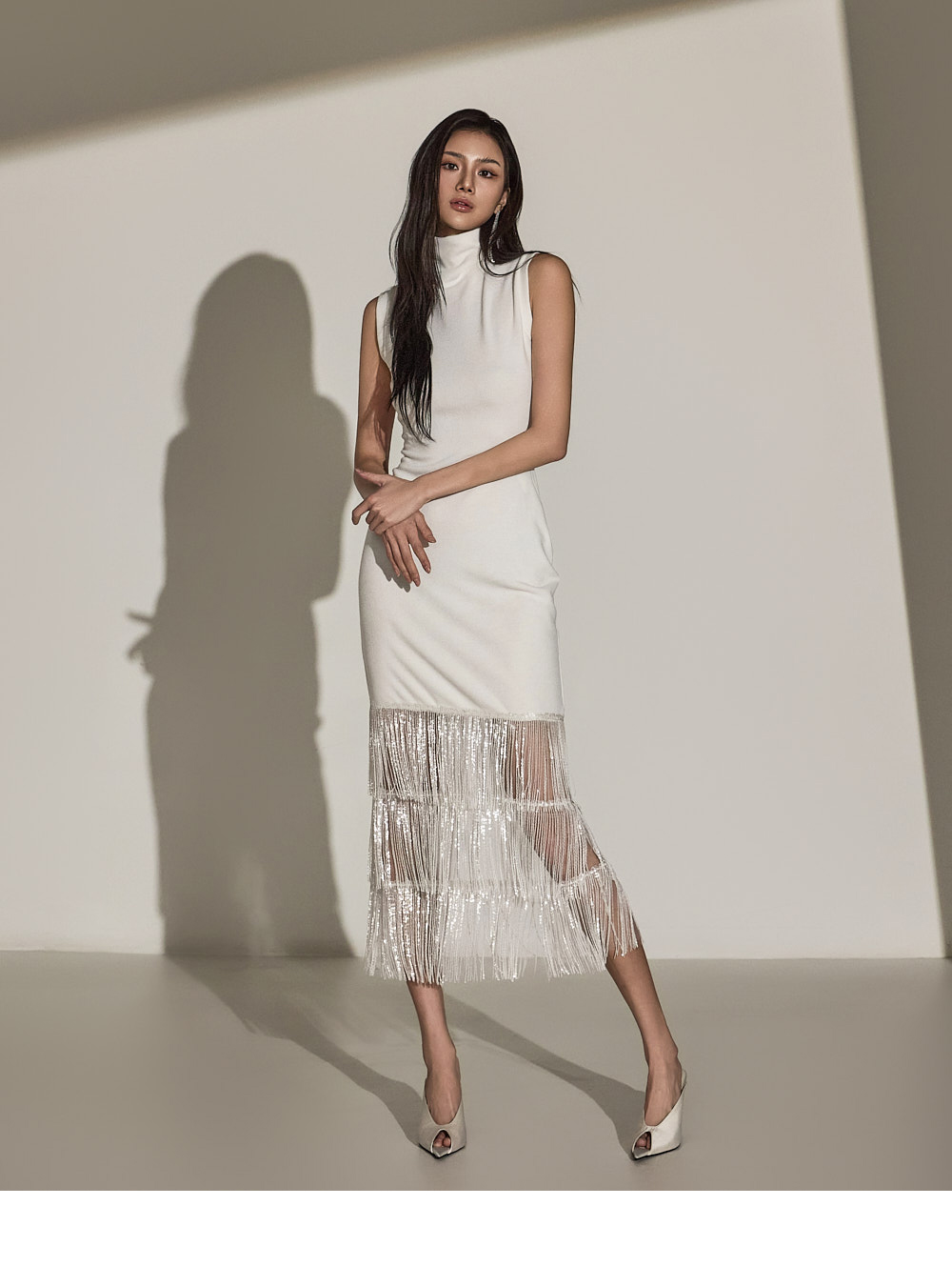 바디라인을 따라 슬림하게 떨어지는 H 라인의 원피스로