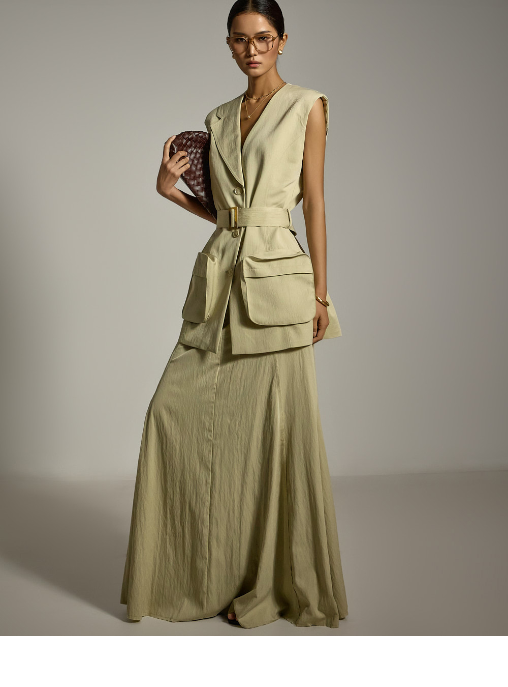 随步伐轻盈摆动,展现优雅动感的剪裁美学。