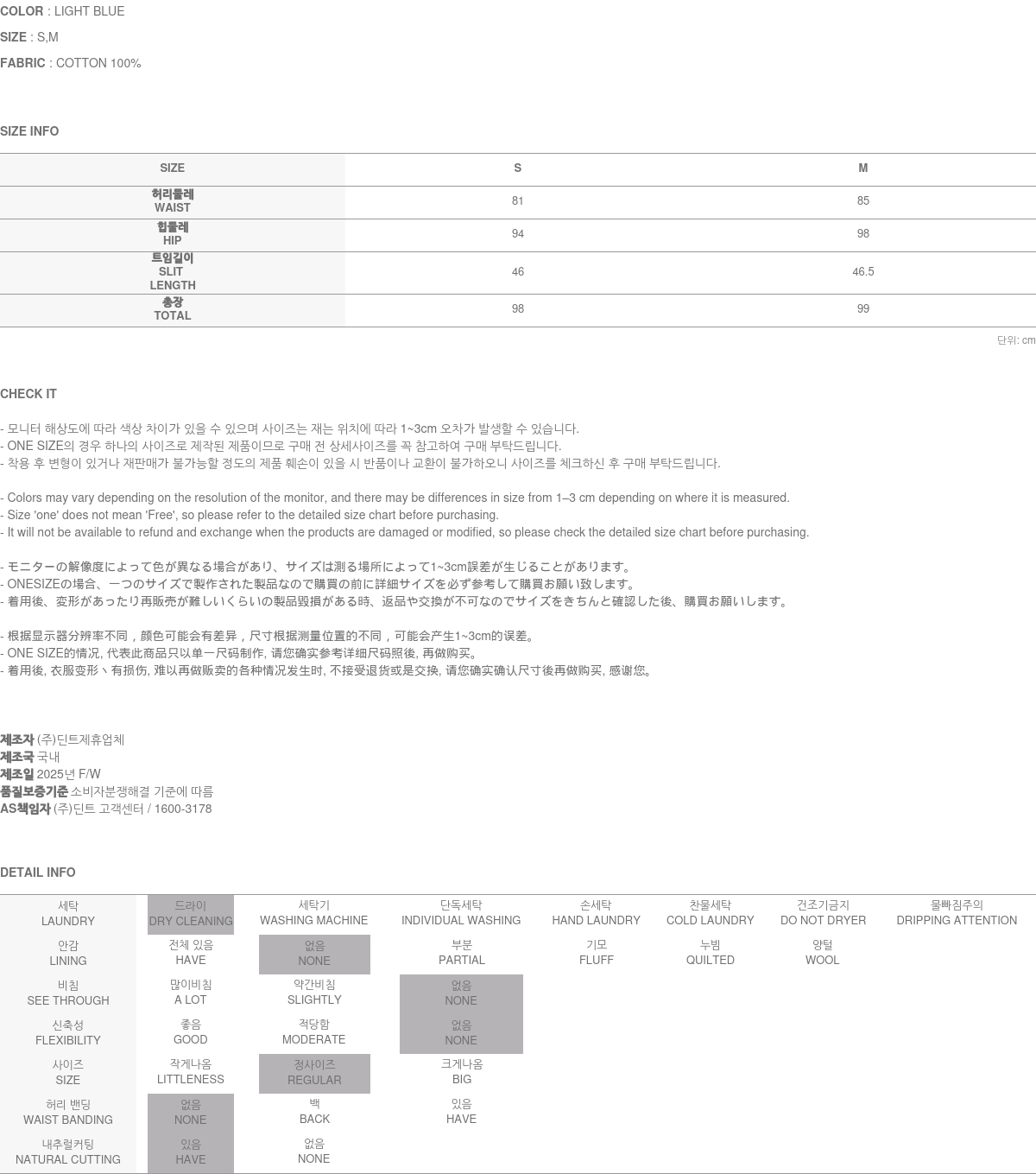 • 丹寧商品的部分, 商品特徵上洗滌時有可能會掉色, 着用時請多加留意.