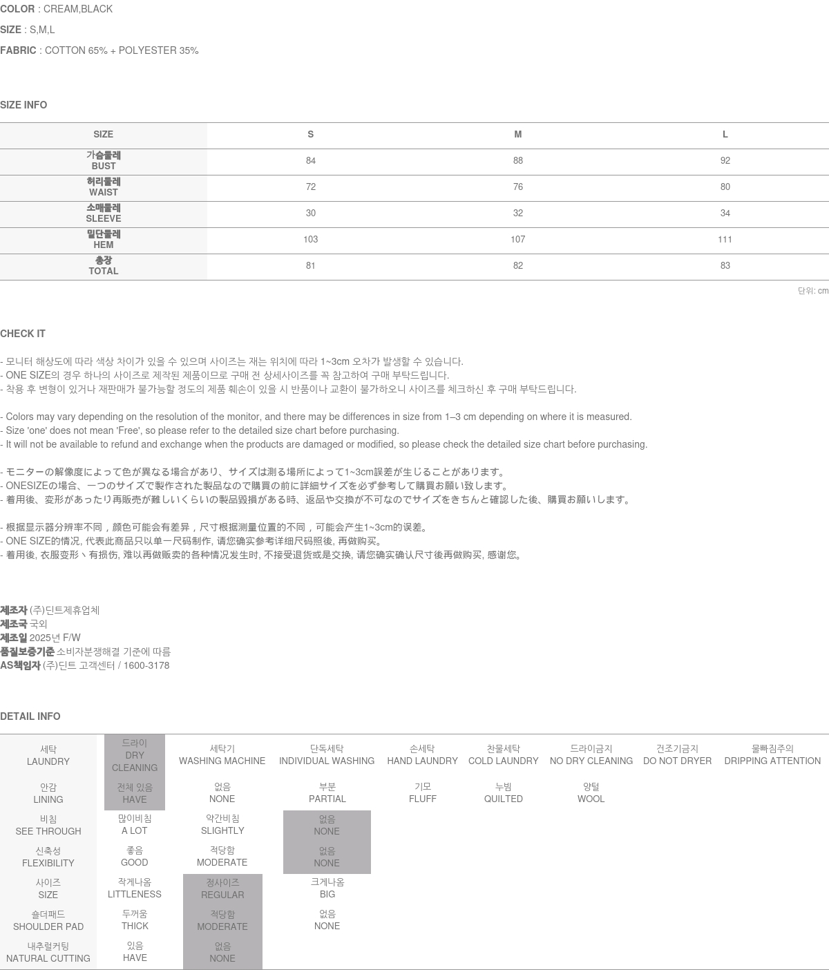 • DINT的所有商品, 使用一般洗滌或是烘乾機, 皆有可能成爲變形或是商品損傷的原因, 建議您使用乾洗.