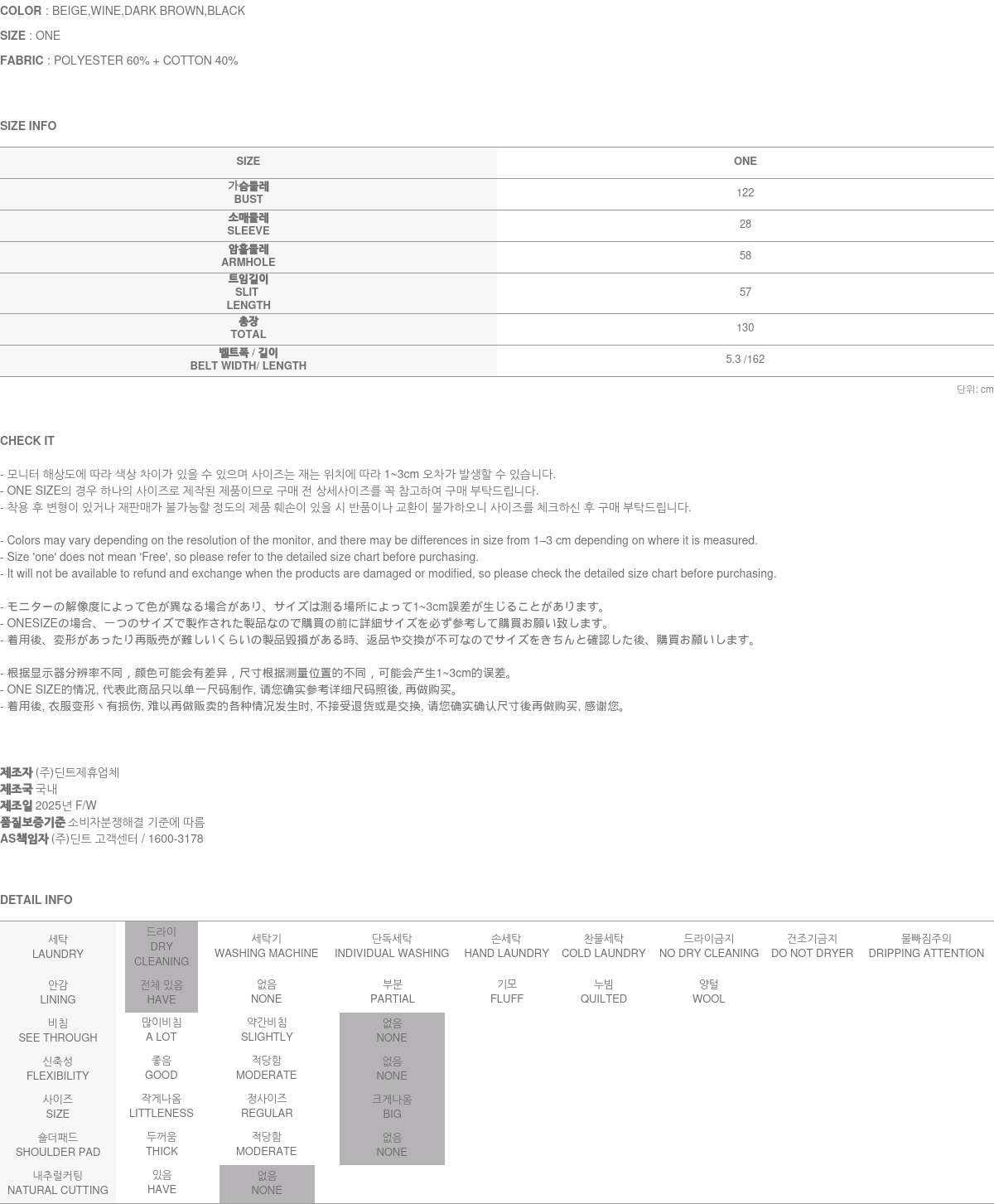 關於售後服務 瑕疵商品, 或是布料瑕疵、不正確標註的尺碼或質料, 引起的問題, 將會爲您進行修復/車縫 → 交換 → 退貨處理 (換貨與退貨的實際舉例, 請參考 ”換貨與退貨“ 與 “無法進行換貨與退貨的情況”之說明.) A/S負責人與連絡電話:DINT.Inc (gbcs_dint@naver.com)