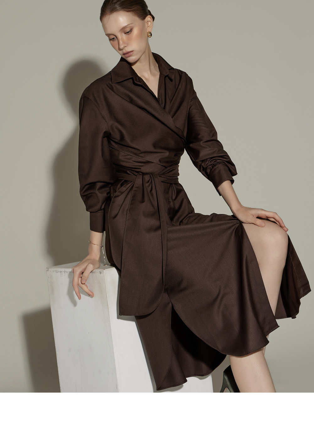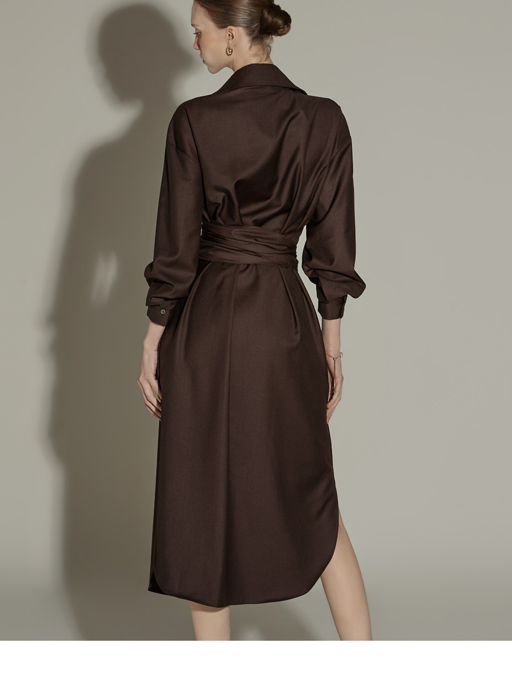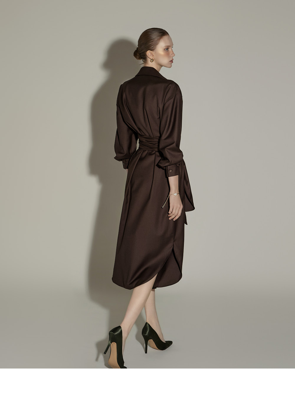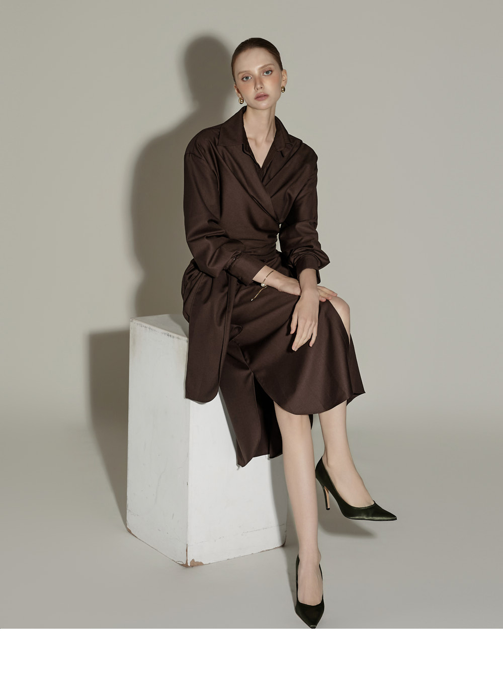 模特身高 174CM,穿 ONE 尺码,DARK BROWN 颜色。