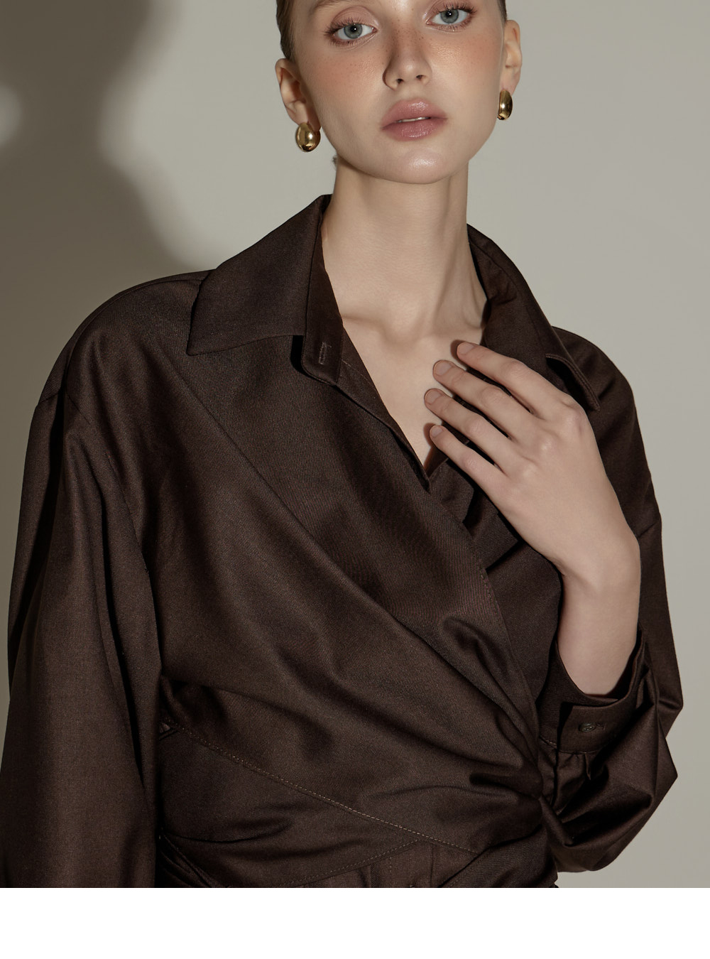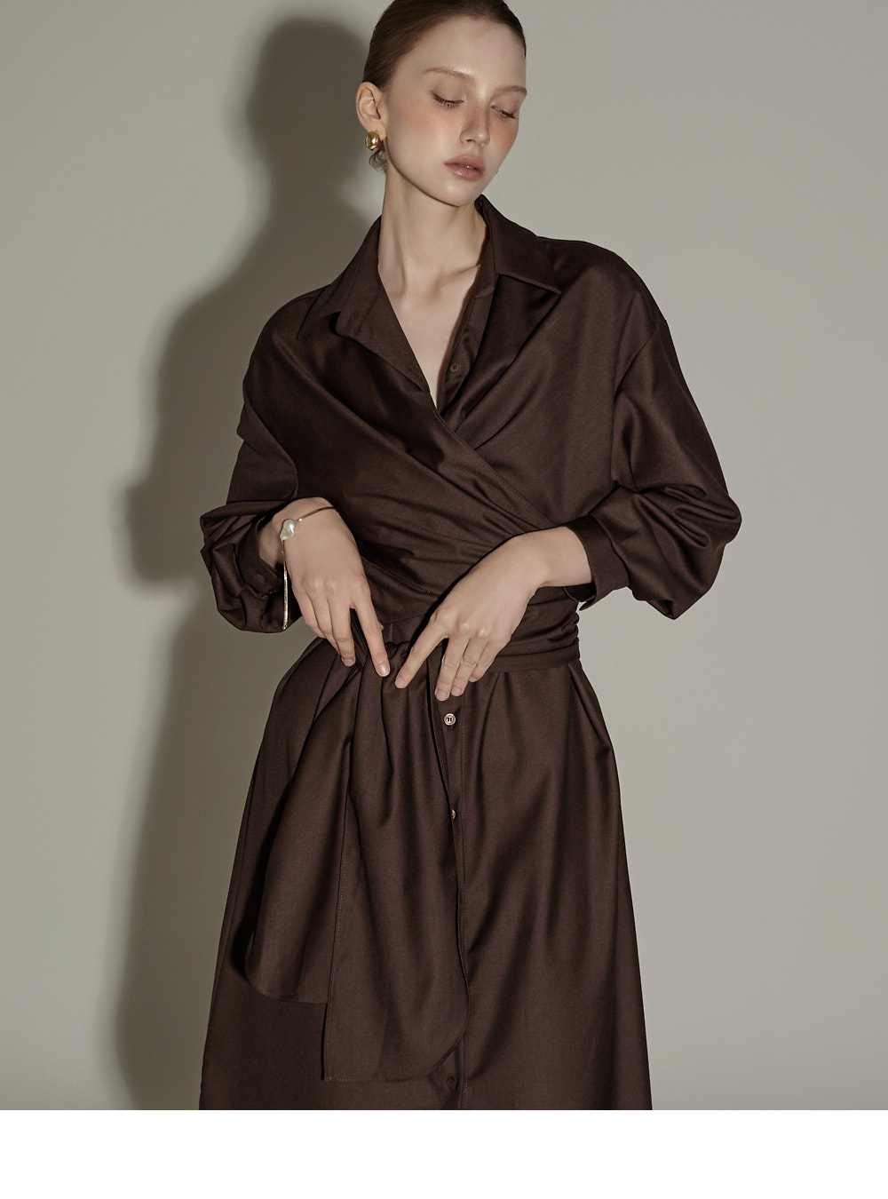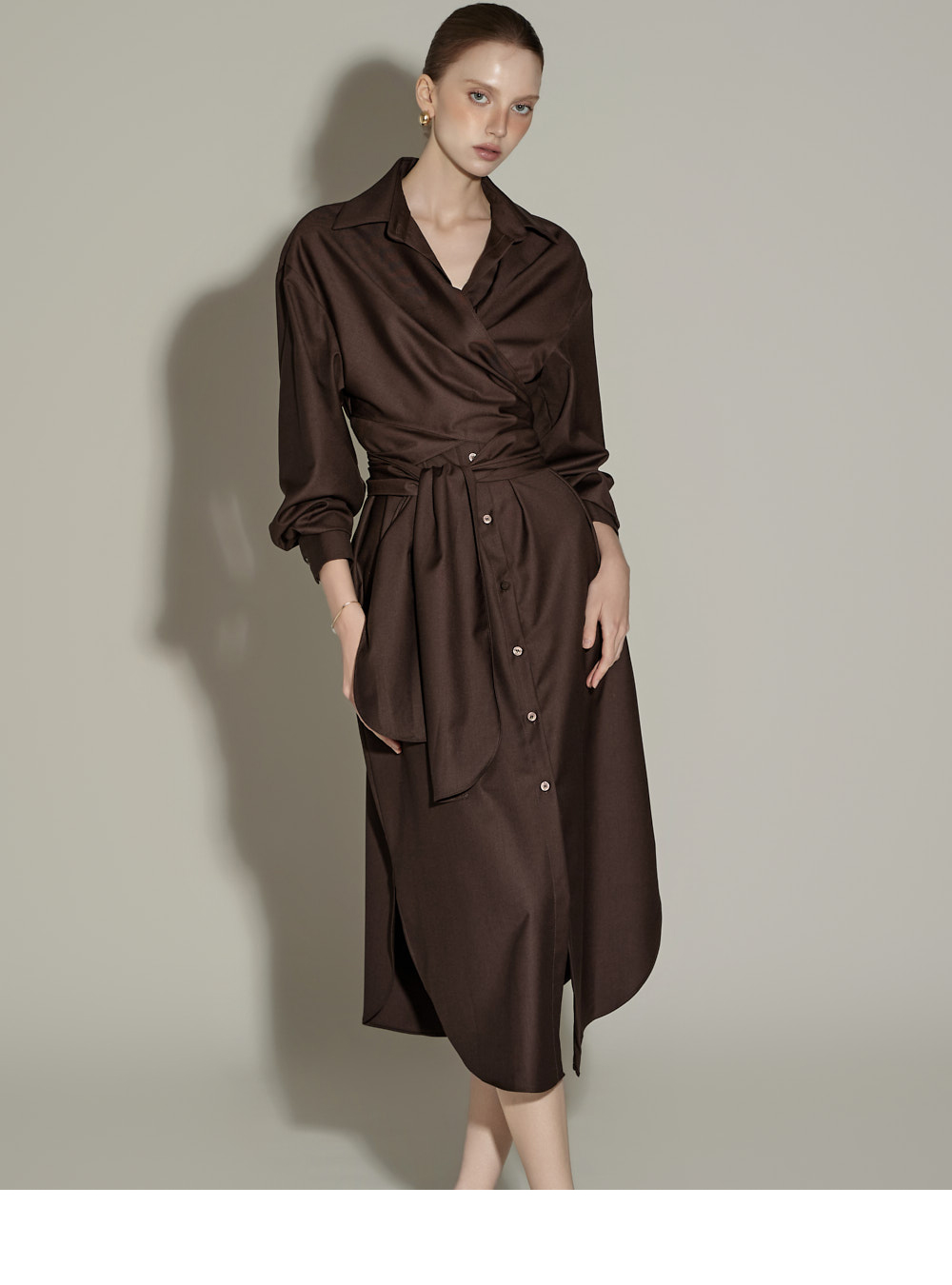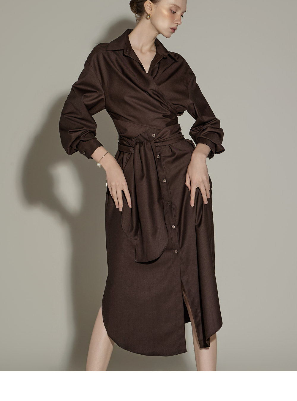 模特身高 174CM,穿 ONE 尺码,DARK BROWN 颜色。