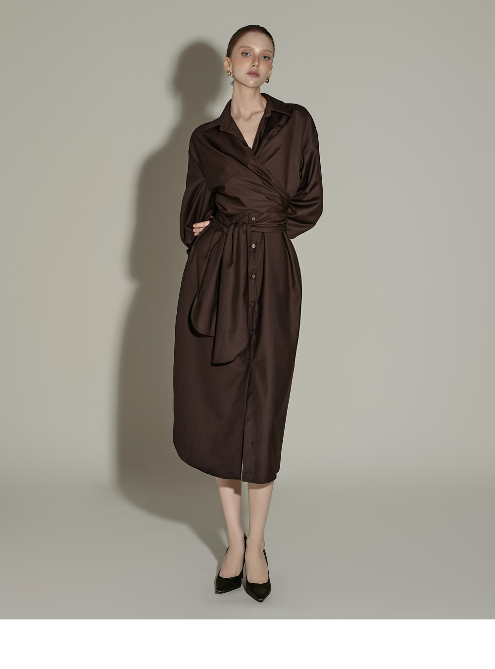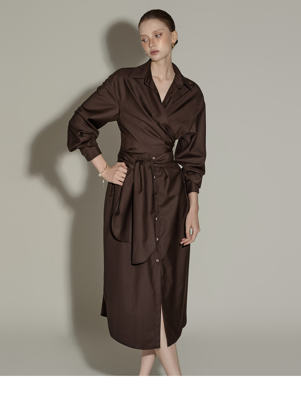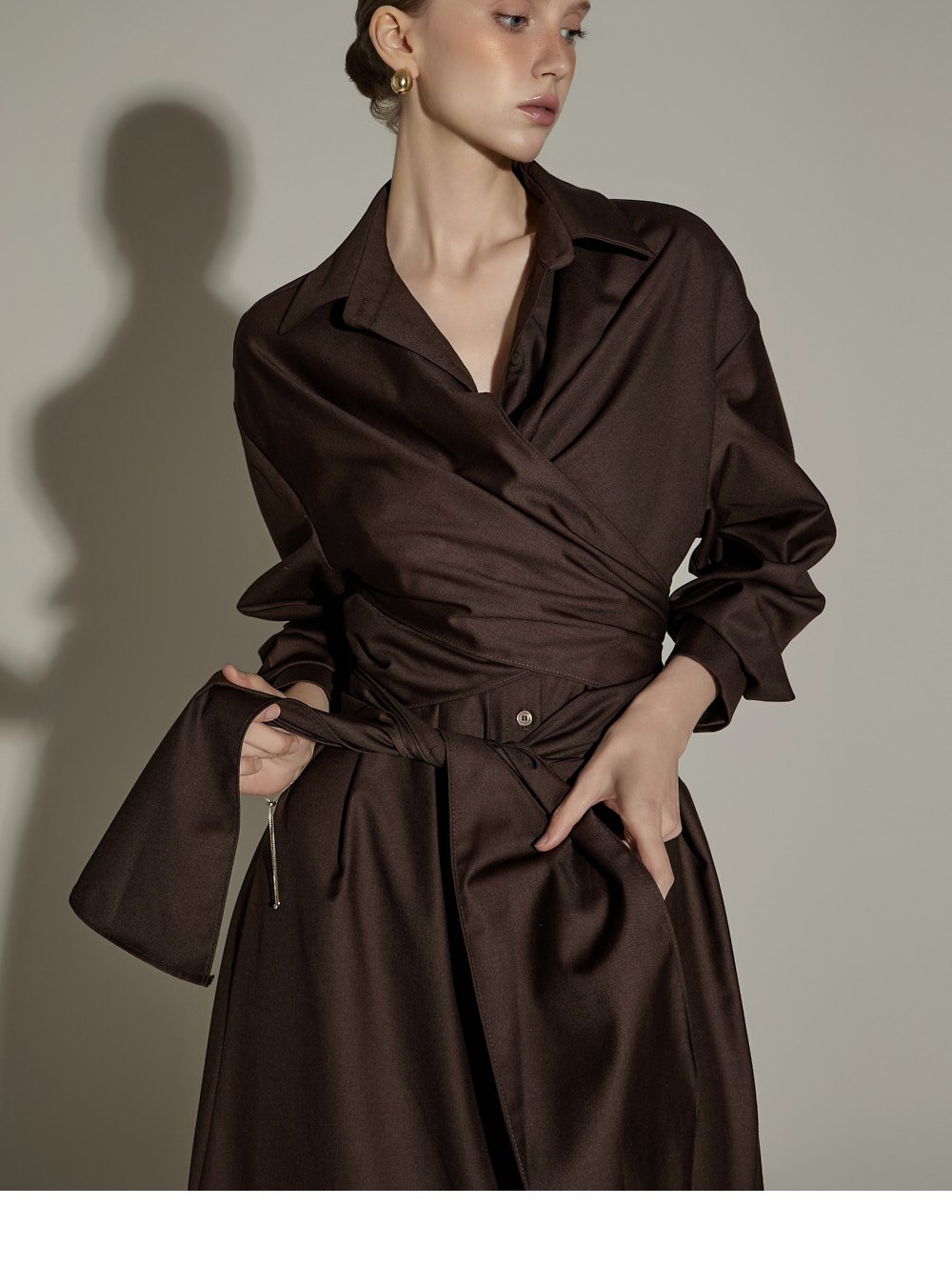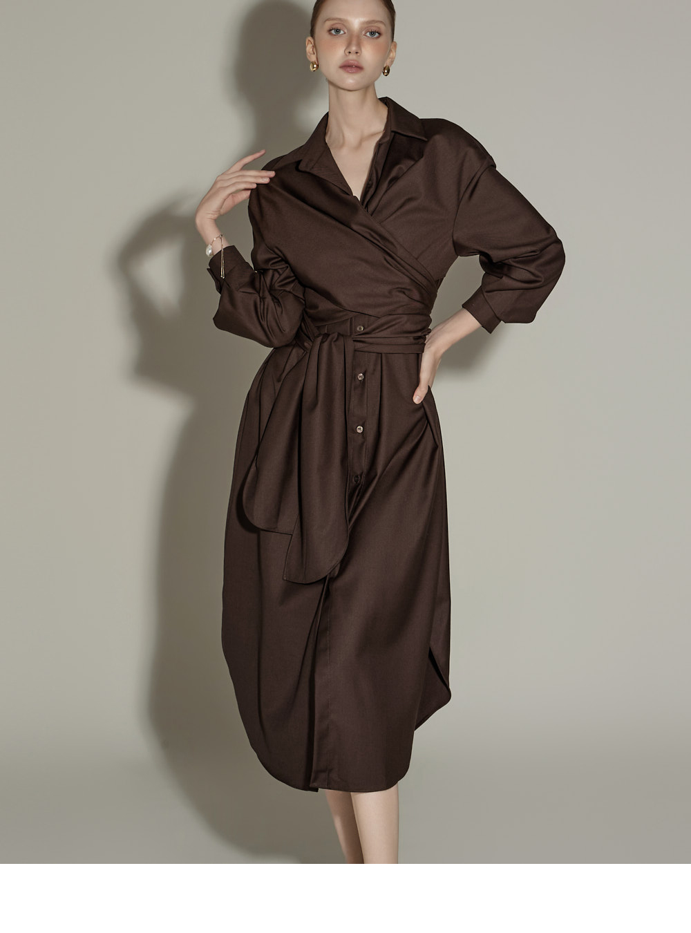 模特身高 174CM,穿 ONE 尺码,DARK BROWN 颜色。