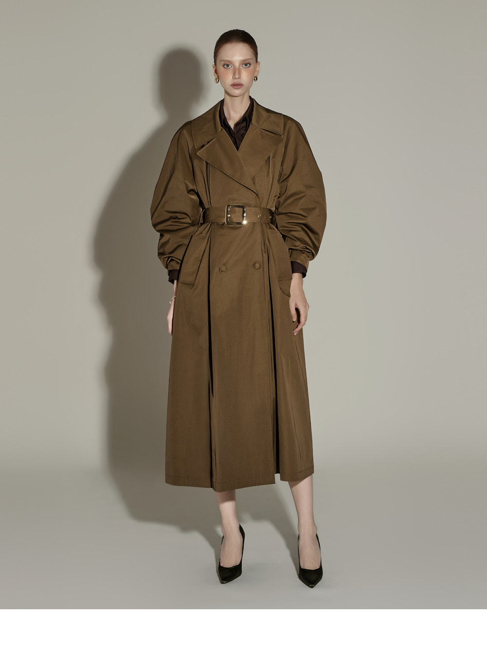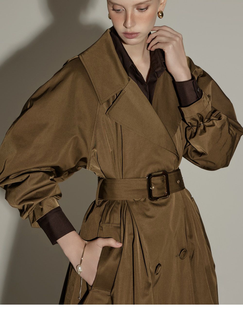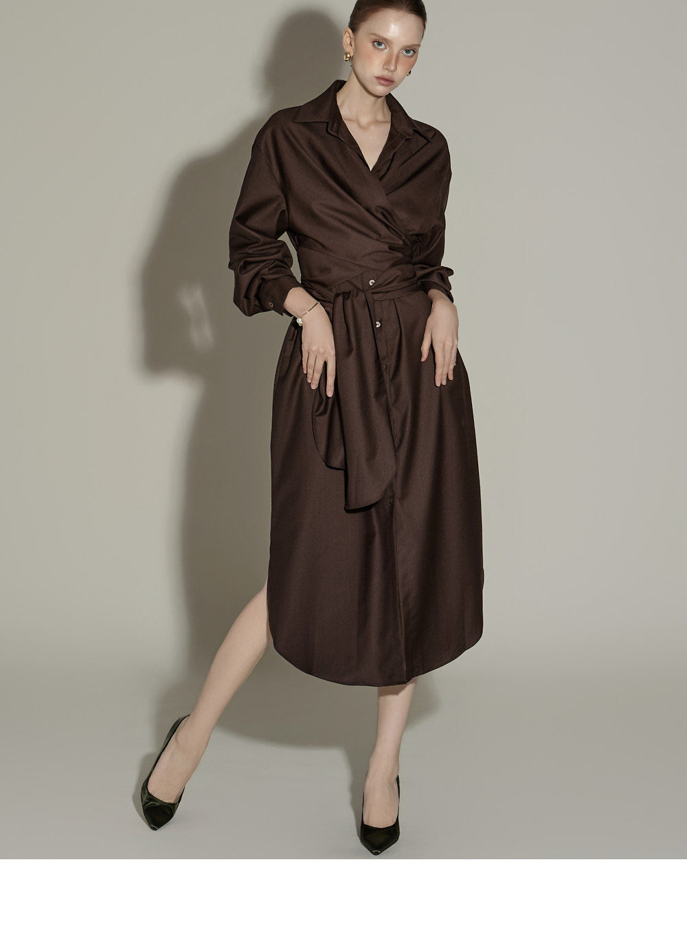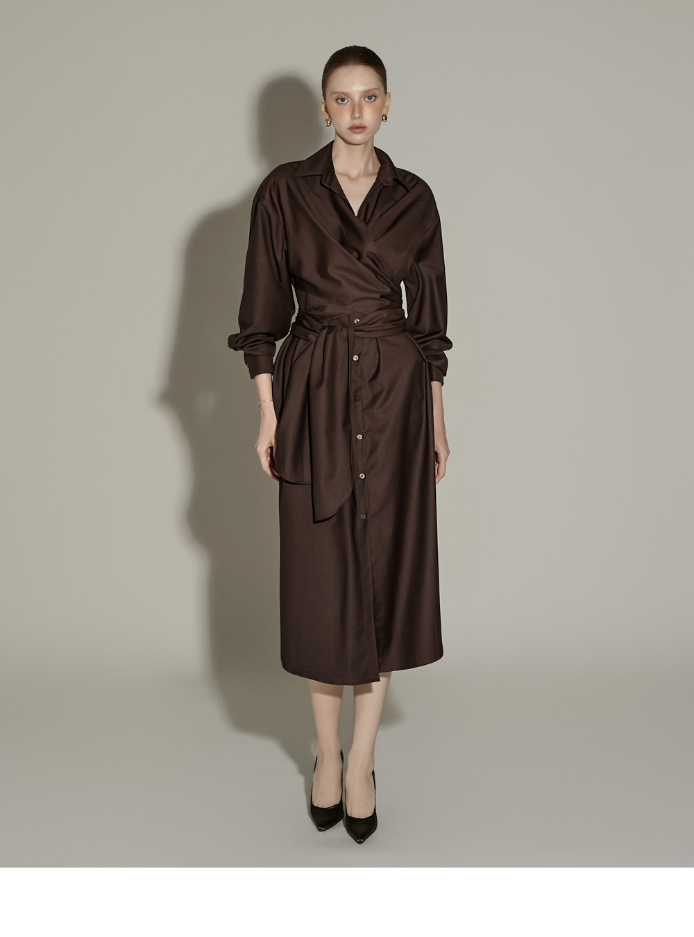 模特身高 174CM,穿 ONE 尺码,DARK BROWN 颜色。