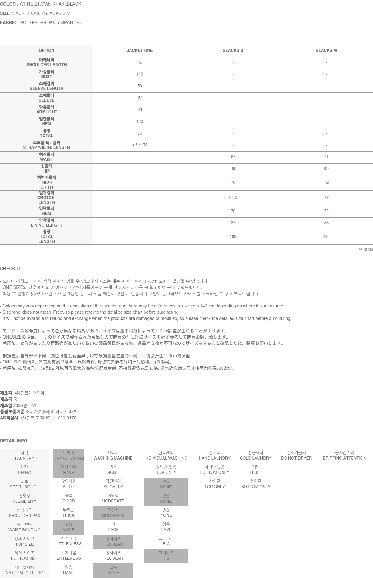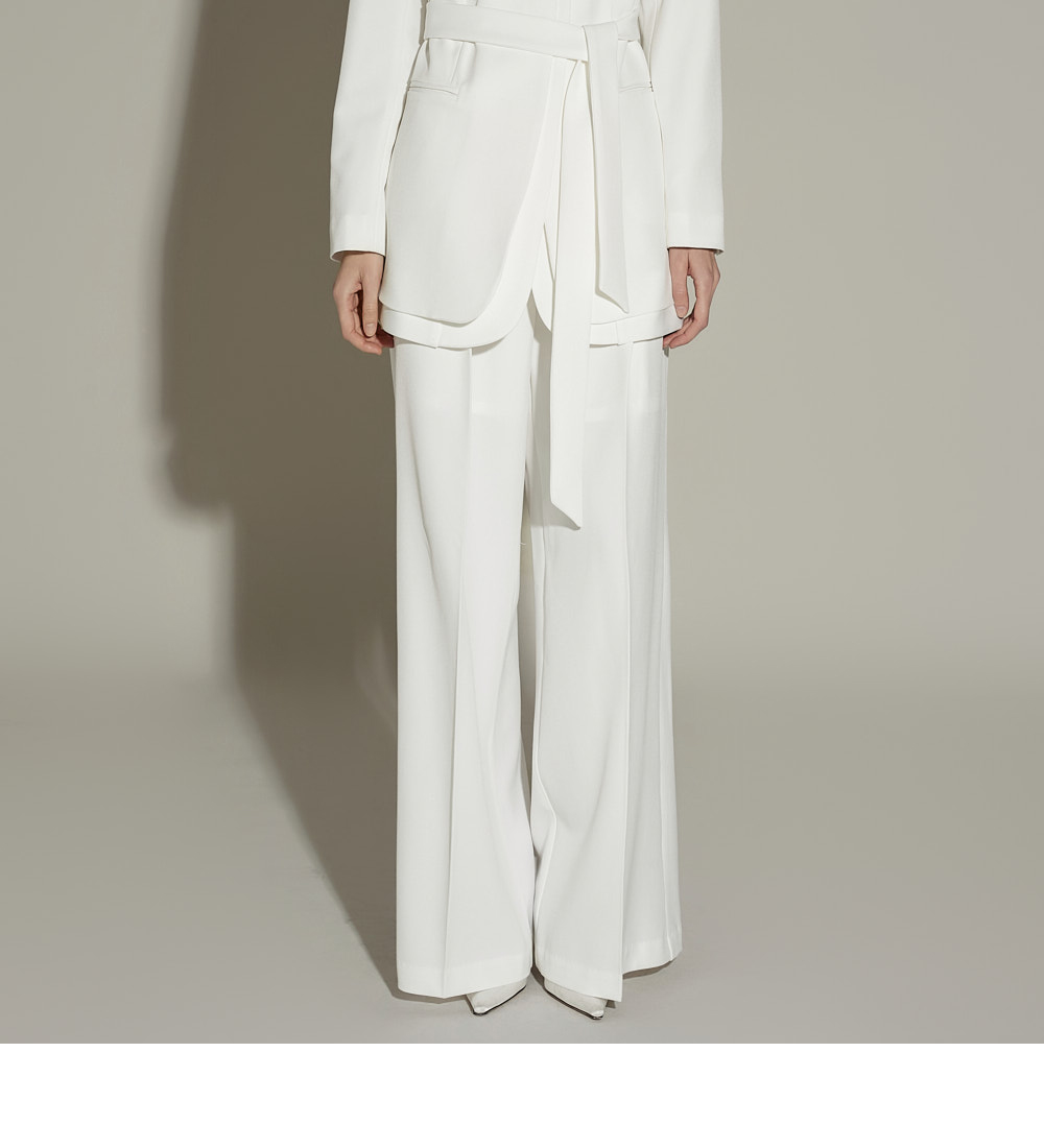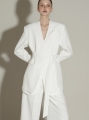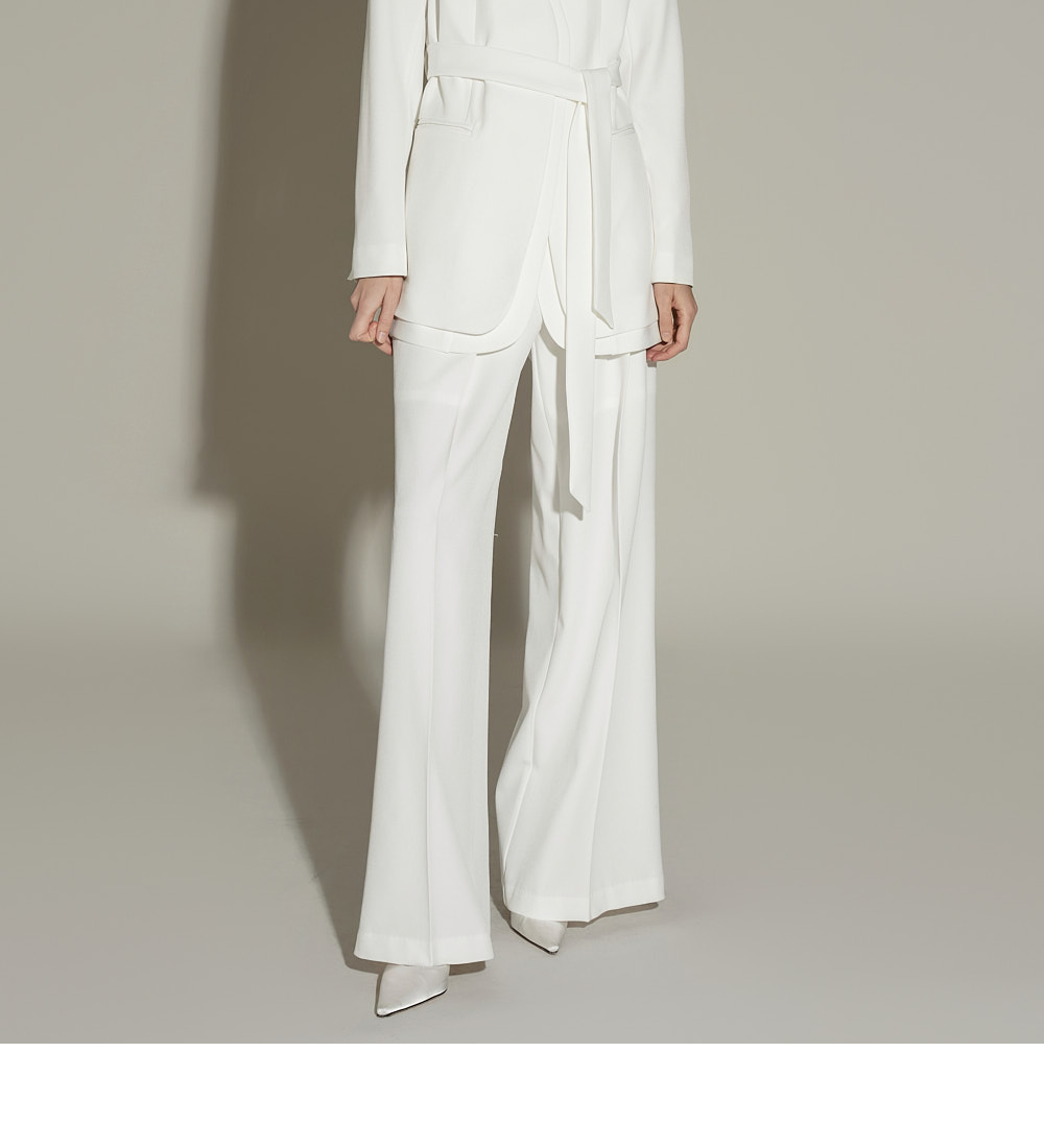 模特身高 173CM,外套穿 ONE SIZE,西裤穿 S 码,白色。