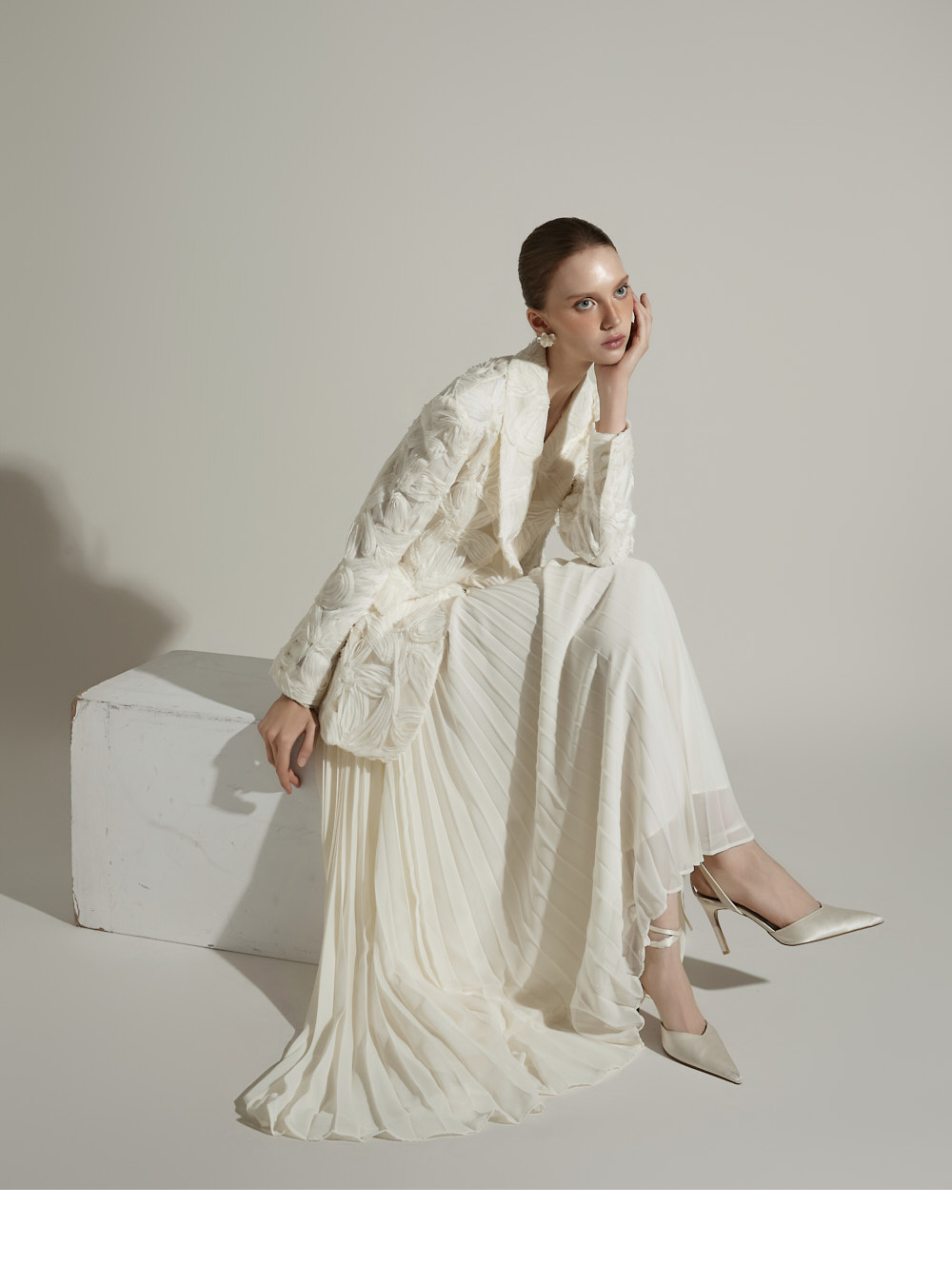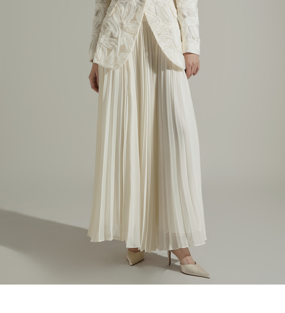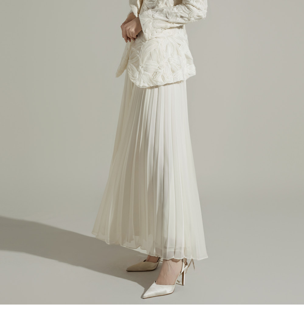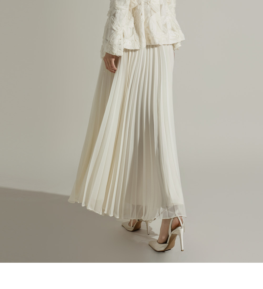 优雅氛围的百褶半身裙。 采用聚酯纤维制作,轻盈顺滑,呈现高级质感。 长款设计搭配百褶剪裁,营造优雅又时尚的轮廓,后腰松紧带保证舒适穿着。 侧边拉链便于穿脱,局部内衬与整体透视设计,展现女性化轻盈氛围。 单穿即可成为造型亮点,适合日常穿搭,也适合聚会场合,轻松完成有品味的造型。 模特身高174CM,穿ONE码,米白色款。