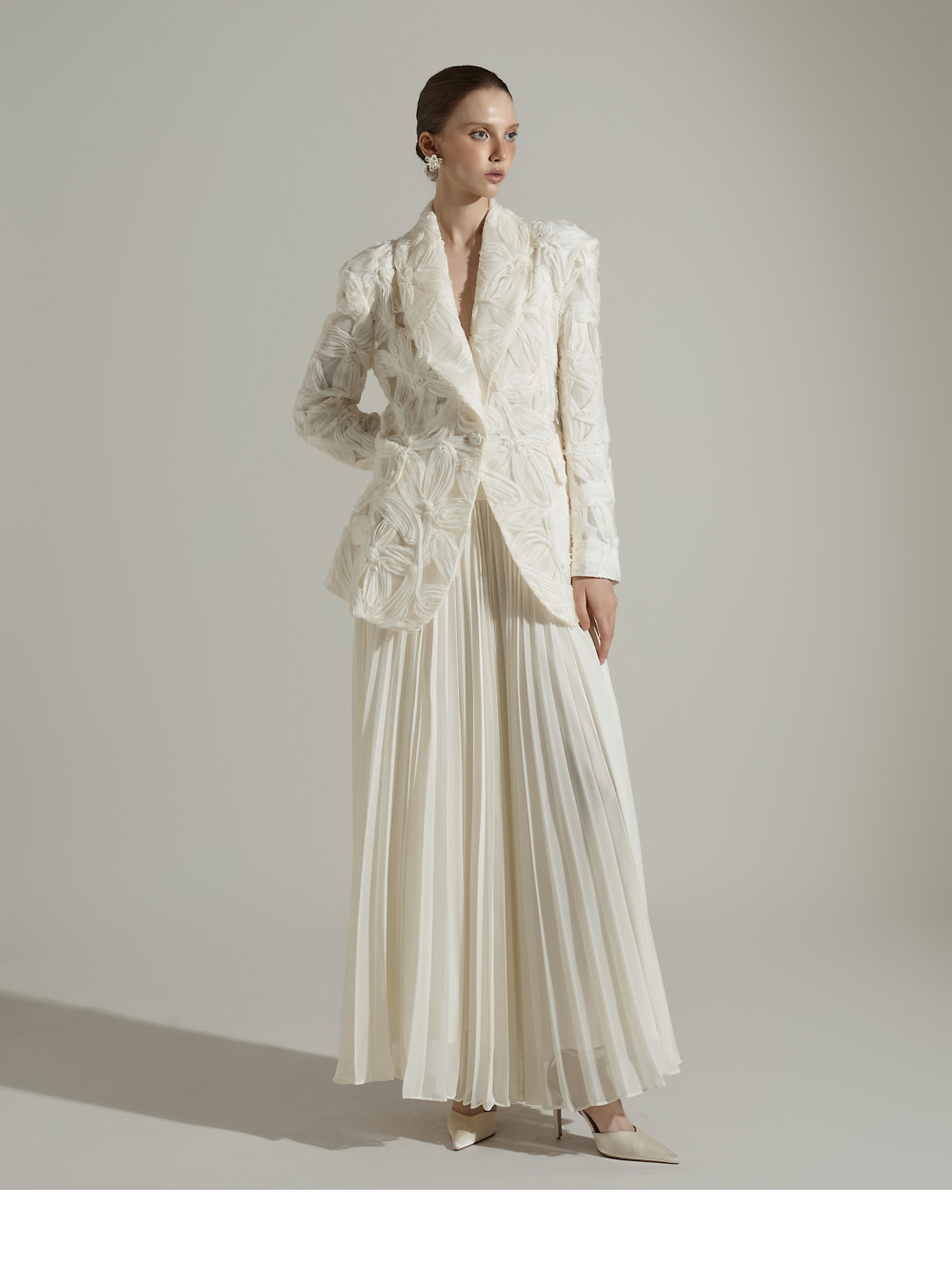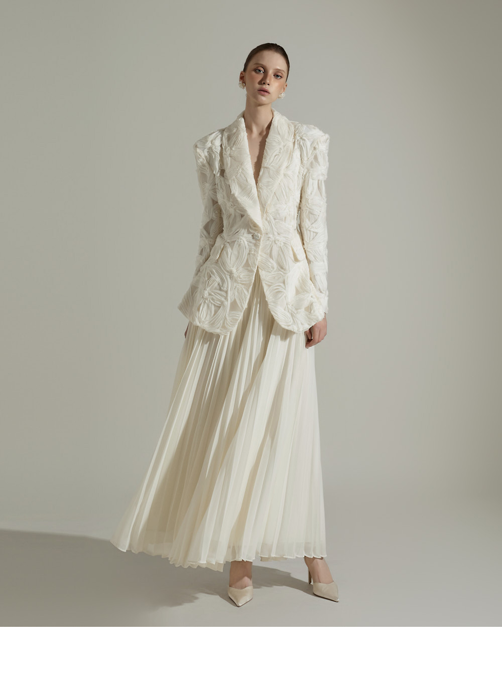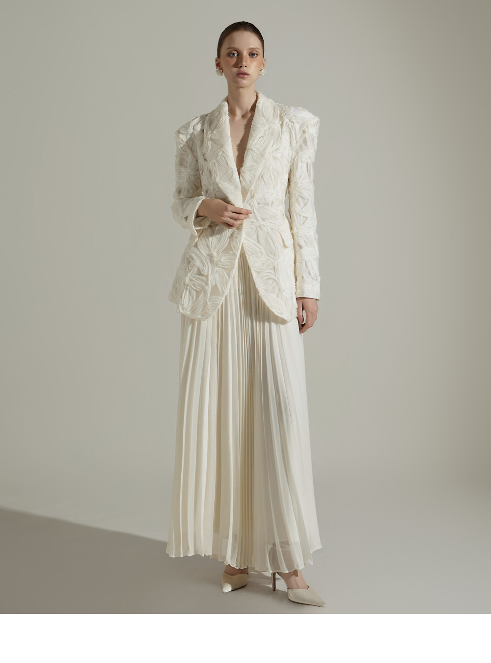 优雅氛围的百褶半身裙。 采用聚酯纤维制作,轻盈顺滑,呈现高级质感。 长款设计搭配百褶剪裁,营造优雅又时尚的轮廓,后腰松紧带保证舒适穿着。 侧边拉链便于穿脱,局部内衬与整体透视设计,展现女性化轻盈氛围。 单穿即可成为造型亮点,适合日常穿搭,也适合聚会场合,轻松完成有品味的造型。 模特身高174CM,穿ONE码,米白色款。
