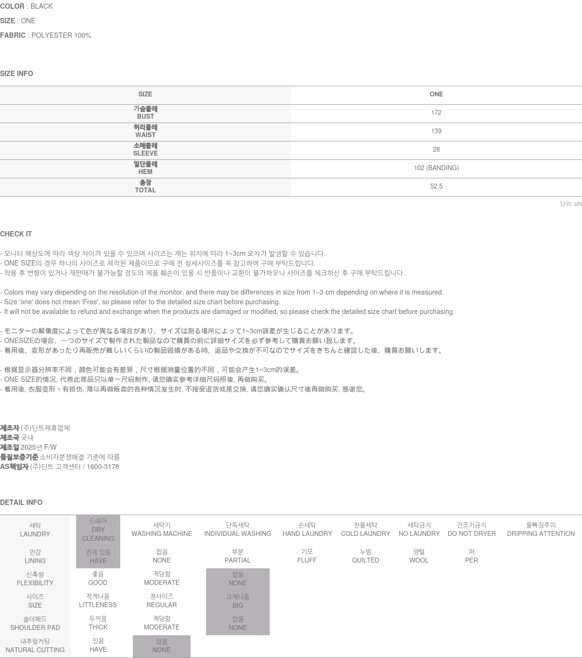 • 退貨住所爲:首爾市 衿川區 加山洞 459-8號 大韓通運 7樓 DINT股份有限公司