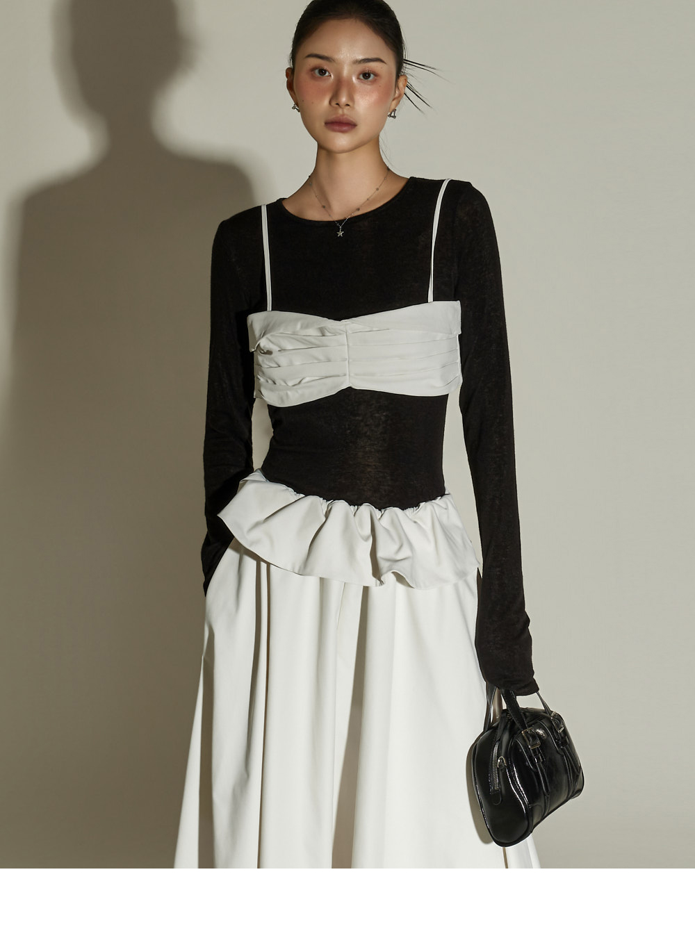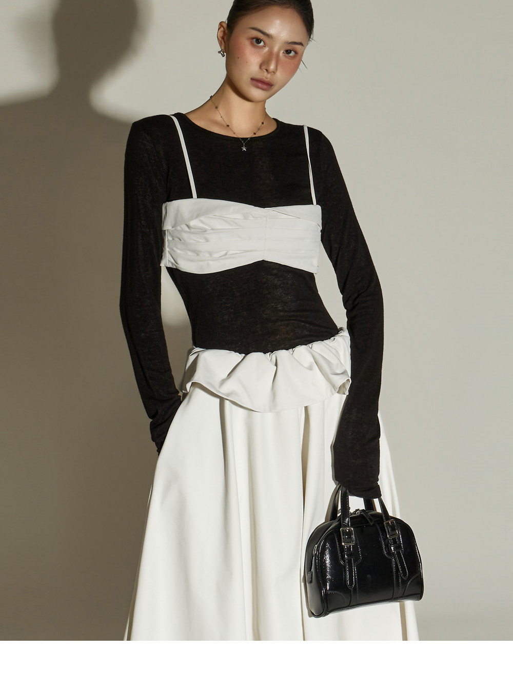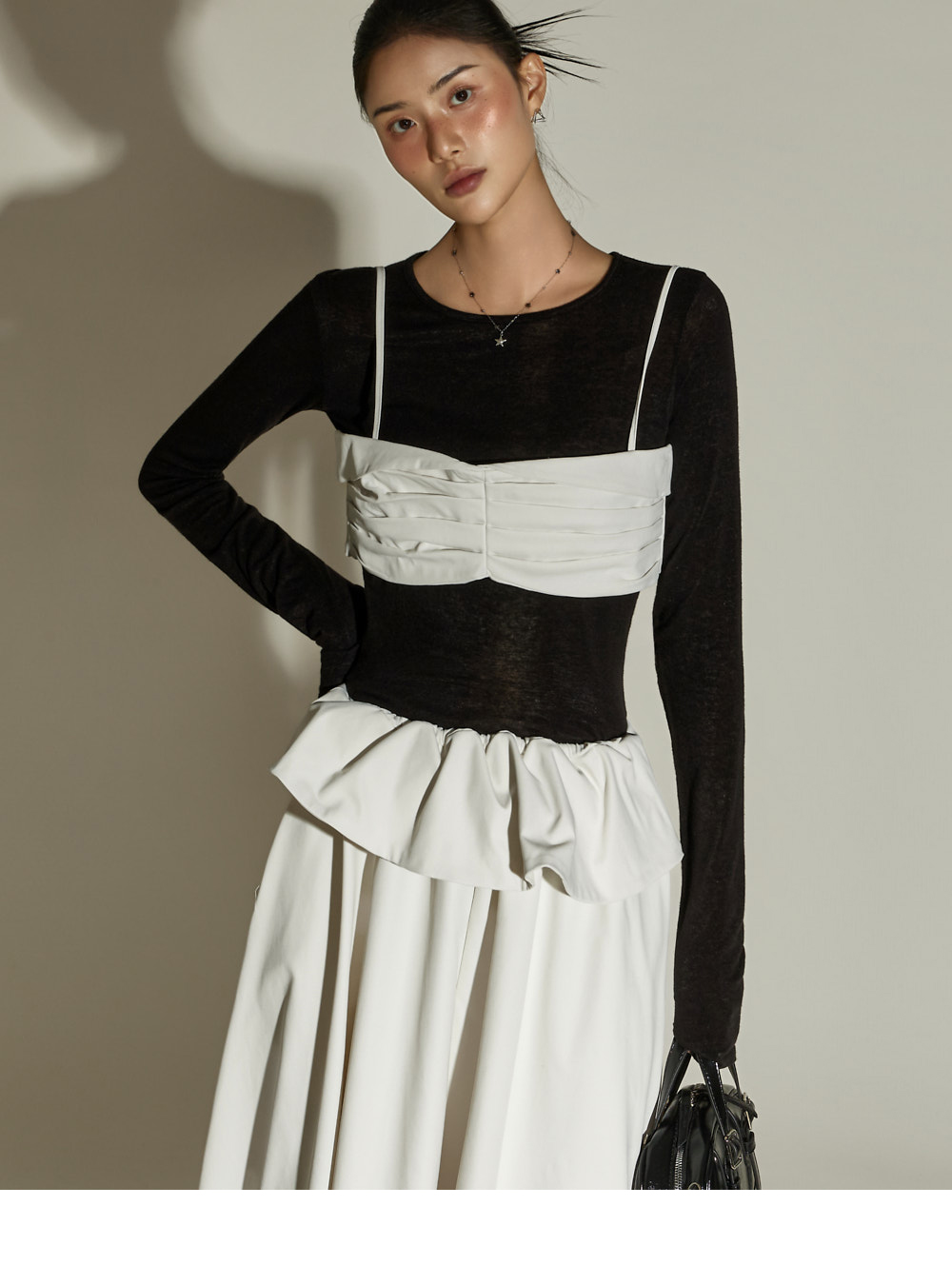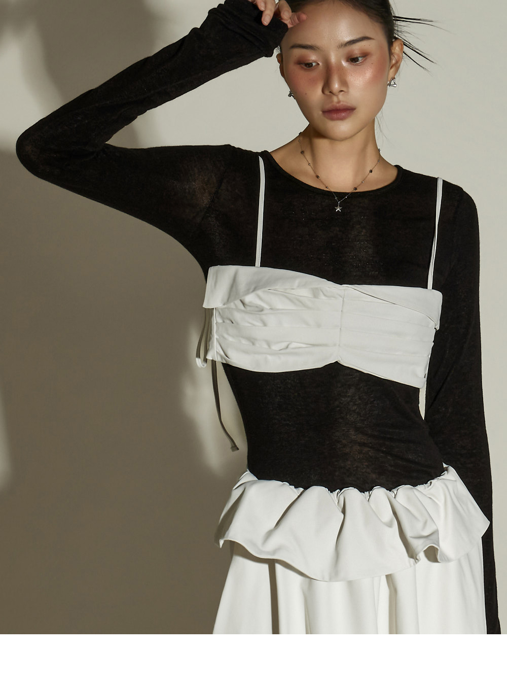 休闲风格的修身上衣。采用天丝、羊毛与氨纶混纺面料制作,柔软且富有弹性,穿着舒适。长袖设计,沿身体线条修身贴合,展现纤细优雅的轮廓,是一款基础百搭单品。整体为透视材质,与内搭叠穿即可打造时尚感十足的层次造型。简约无多余装饰的设计,易于搭配各种下装,是一款适合日常穿着的上衣。模特身高 173CM,穿 ONE SIZE,黑色。