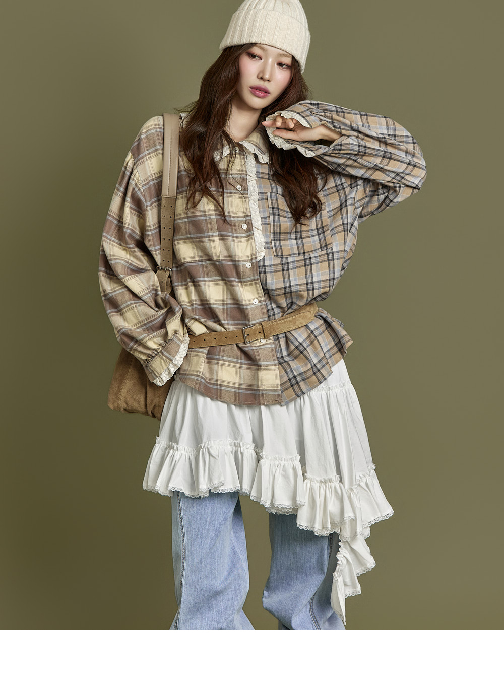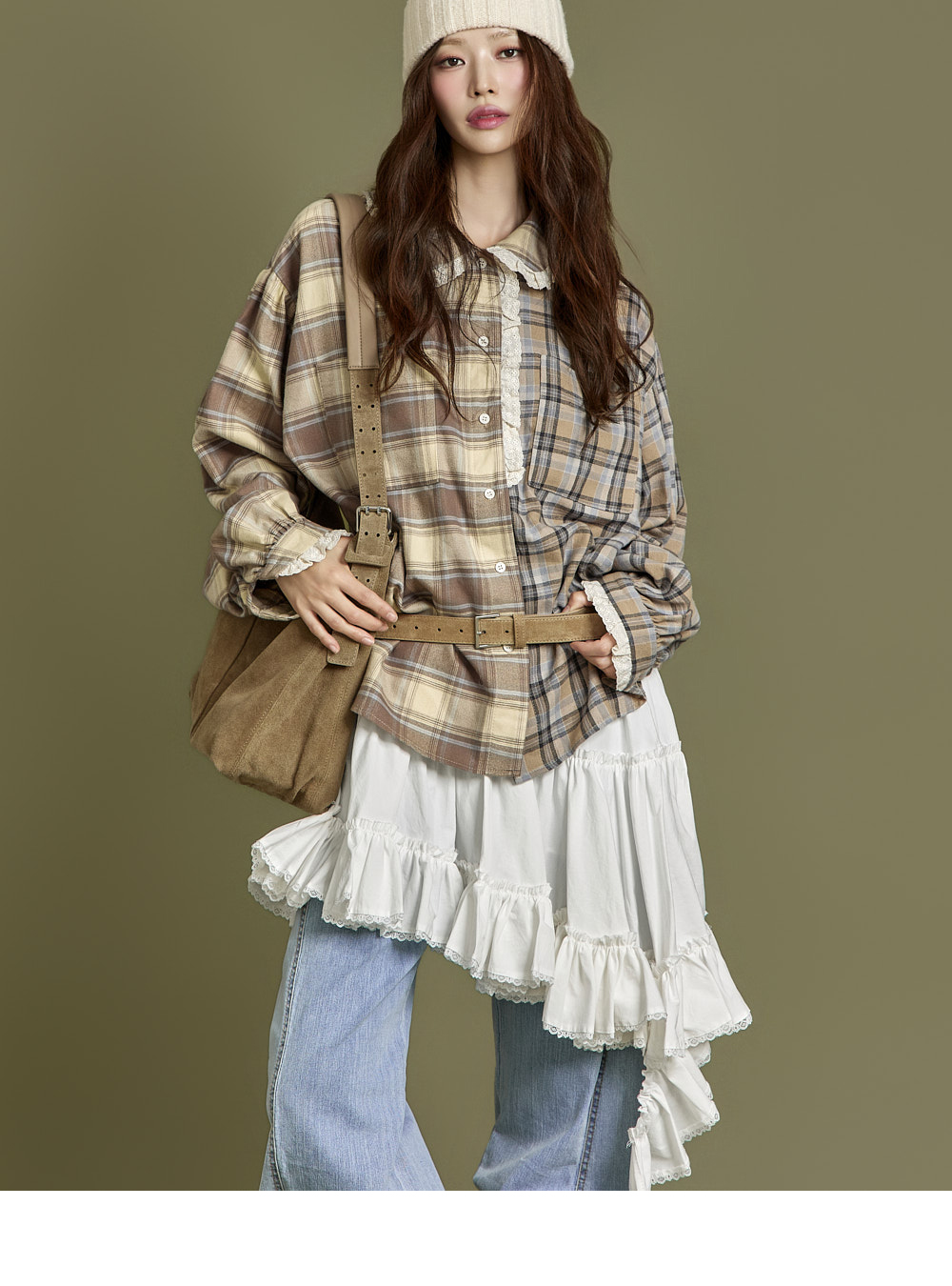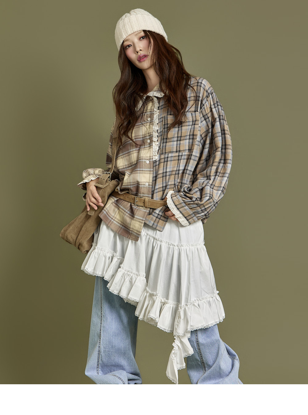 下摆以自然裁剪和蕾丝细节收边,增添可爱又复古的气息。