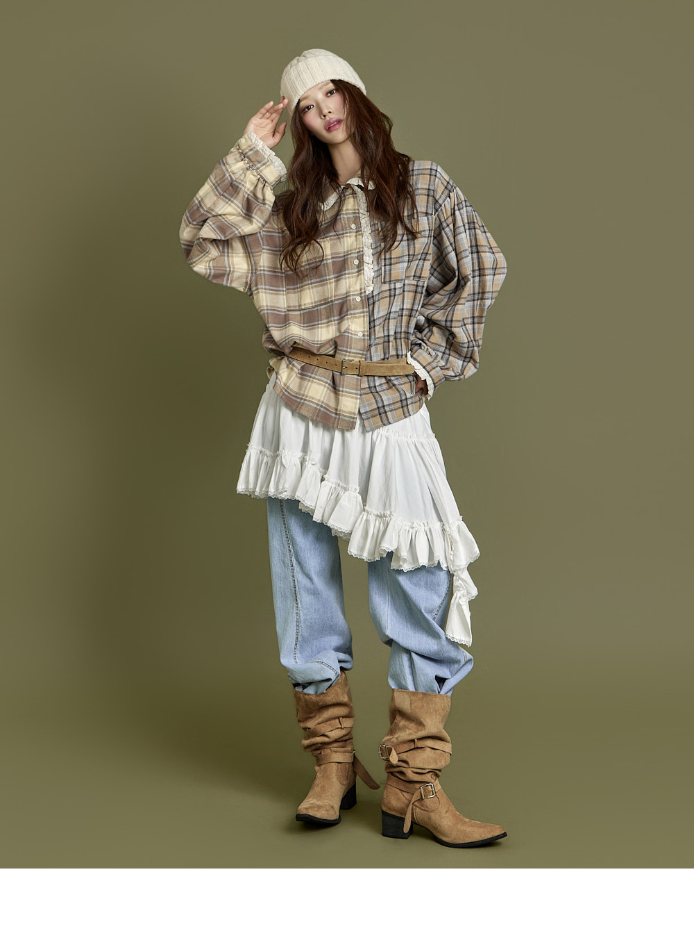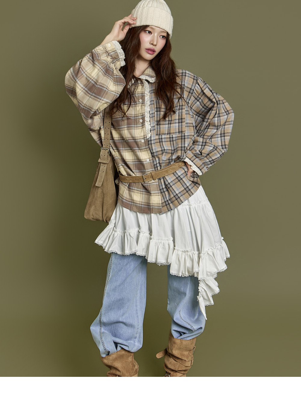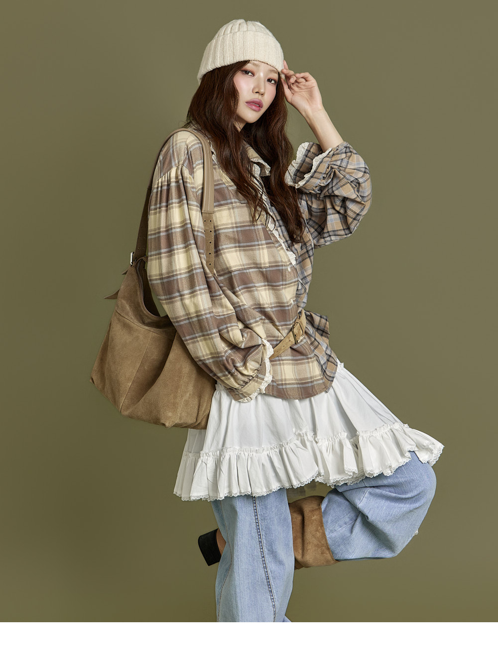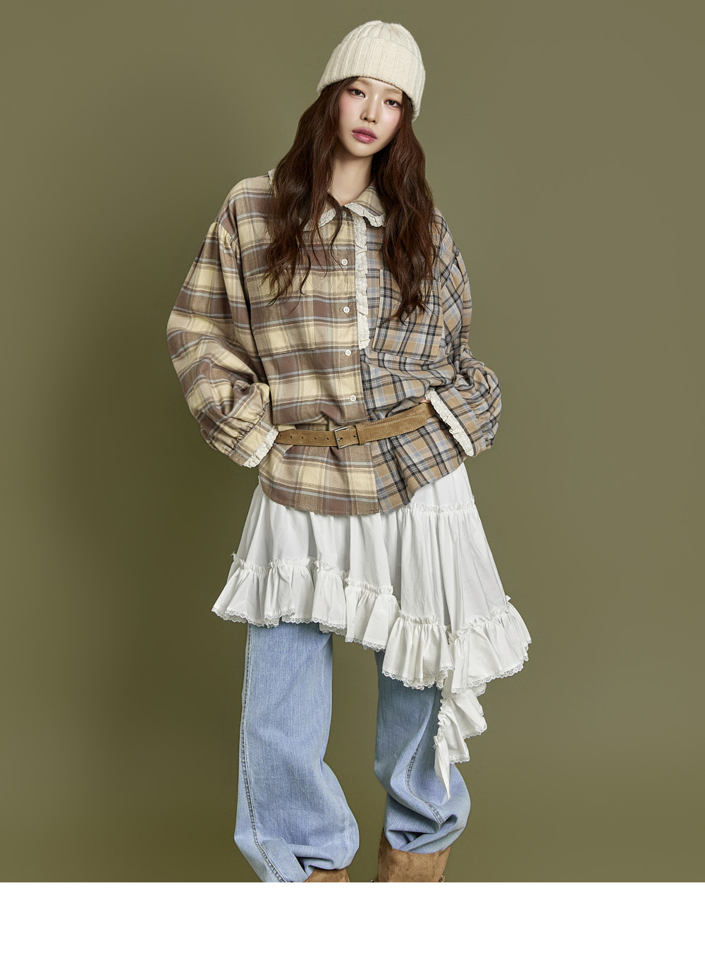 下摆以自然裁剪和蕾丝细节收边,增添可爱又复古的气息。