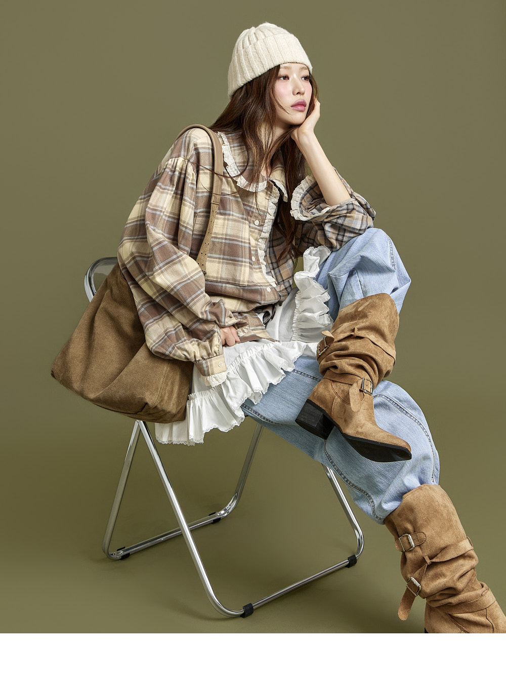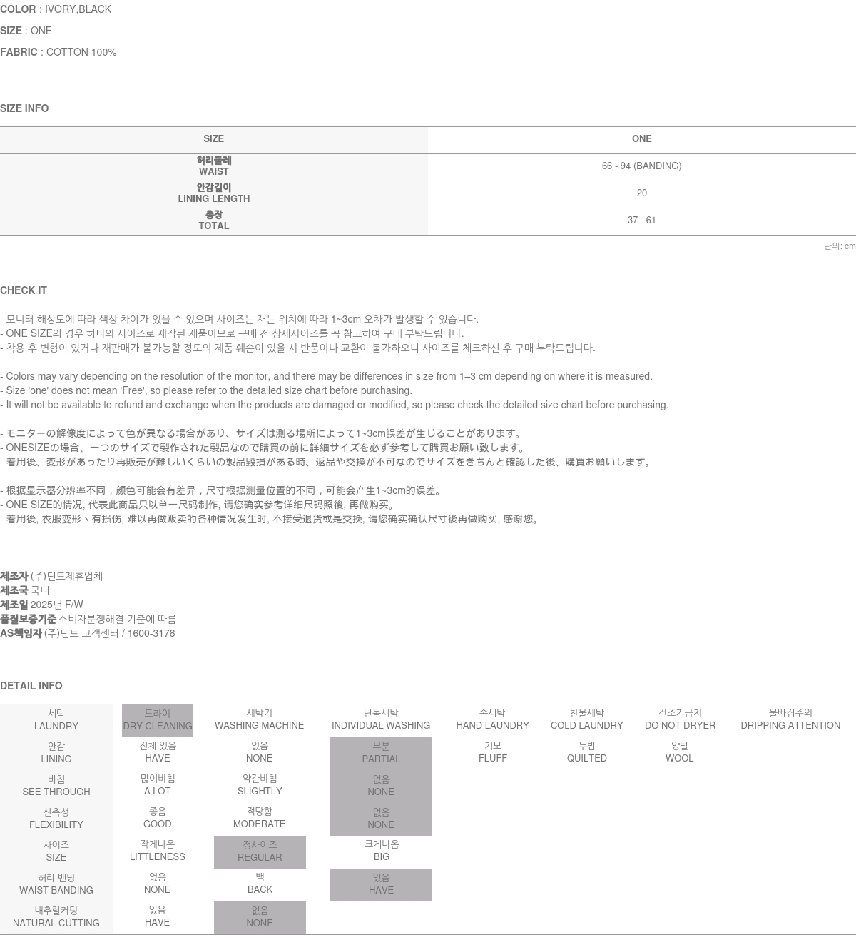 171CM 模特穿着 ONE 尺码,IVORY 颜色。