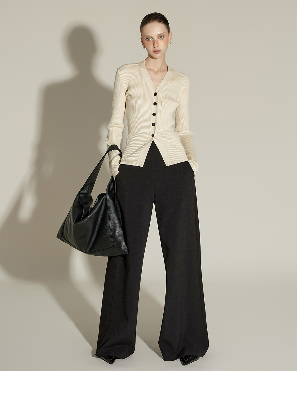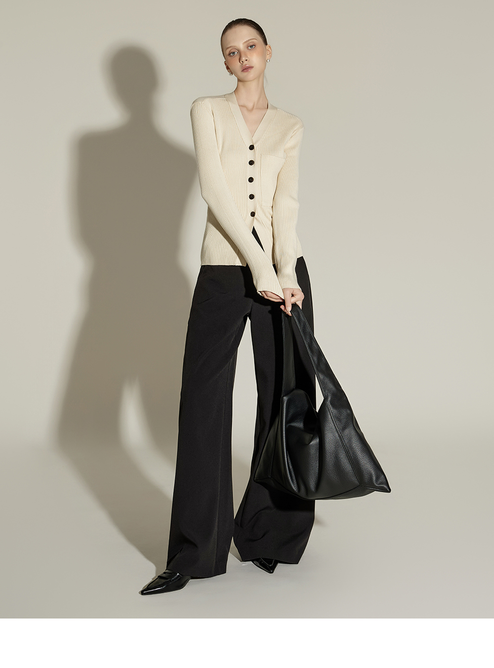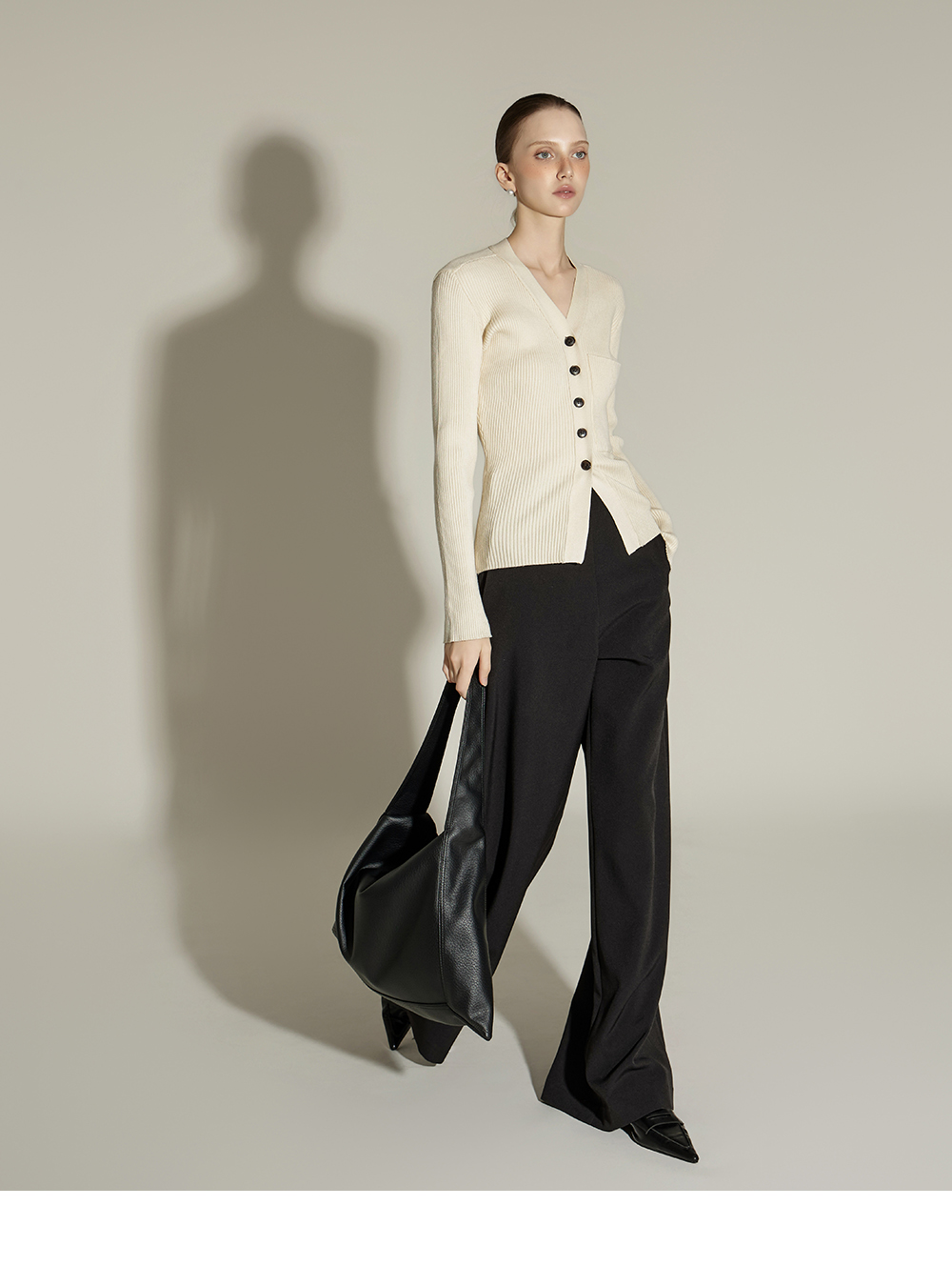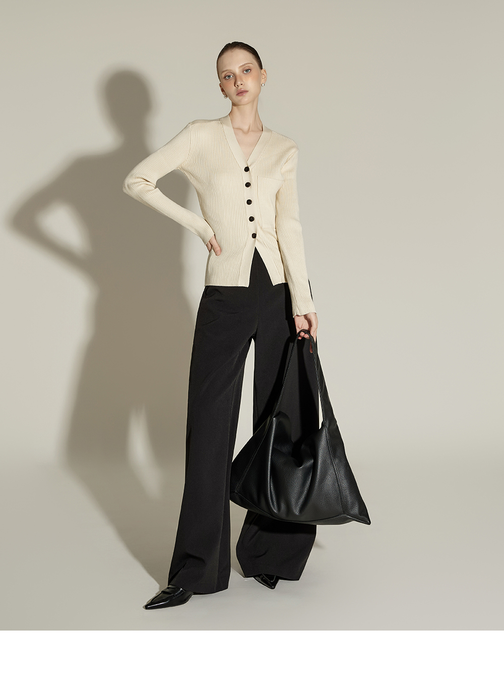 这是一款日常风格的开衫。 采用人造丝与聚酯纤维混纺面料,手感柔软且富有弹性,ONE 尺码设计可自然贴合身体线条,呈现流畅的剪裁轮廓。 罗纹针织凸显修身效果,面料富有弹性,穿着舒适。 前襟纽扣设计收边整洁,胸前口袋细节增添低调亮点,散发女性化又日常的氛围,是换季时期实用单品。 可单穿,也可与多种内搭组合,轻松打造时尚造型。 174CM 模特穿着 ONE 尺码,示范米色款。