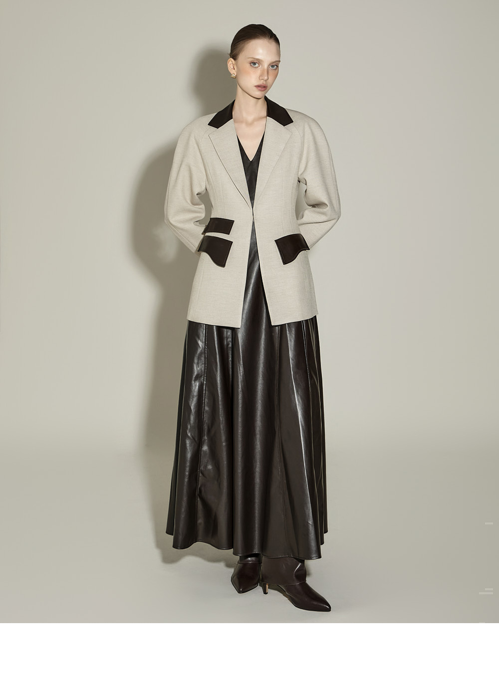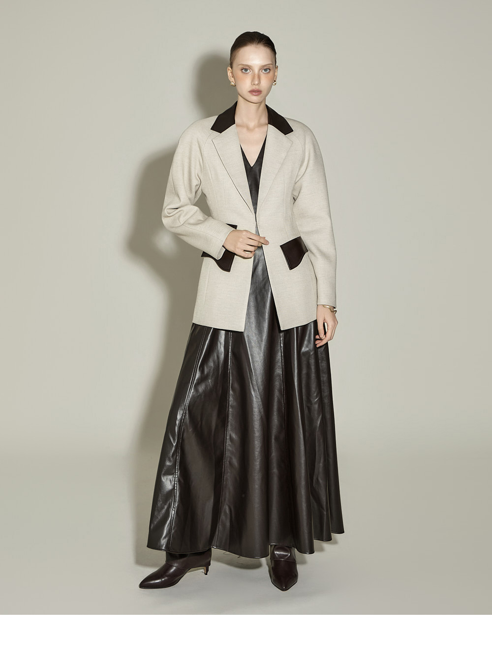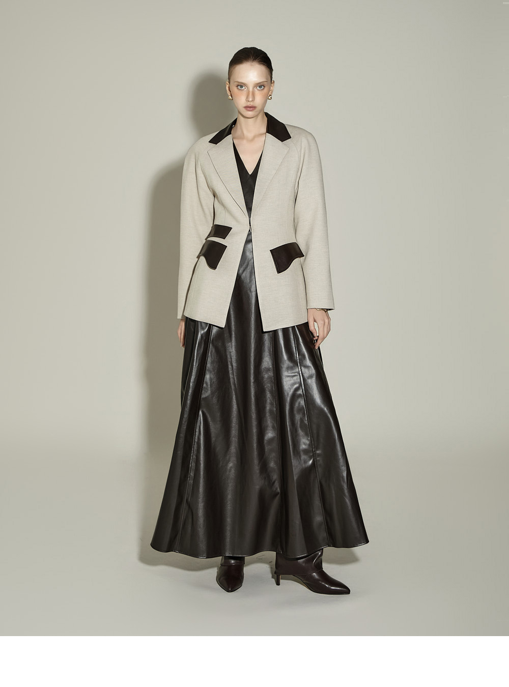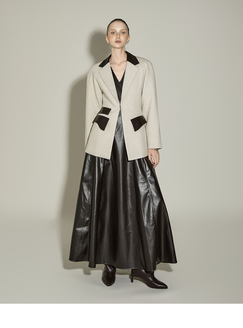 搭配长款裙长与裁片细节,营造高贵氛围。