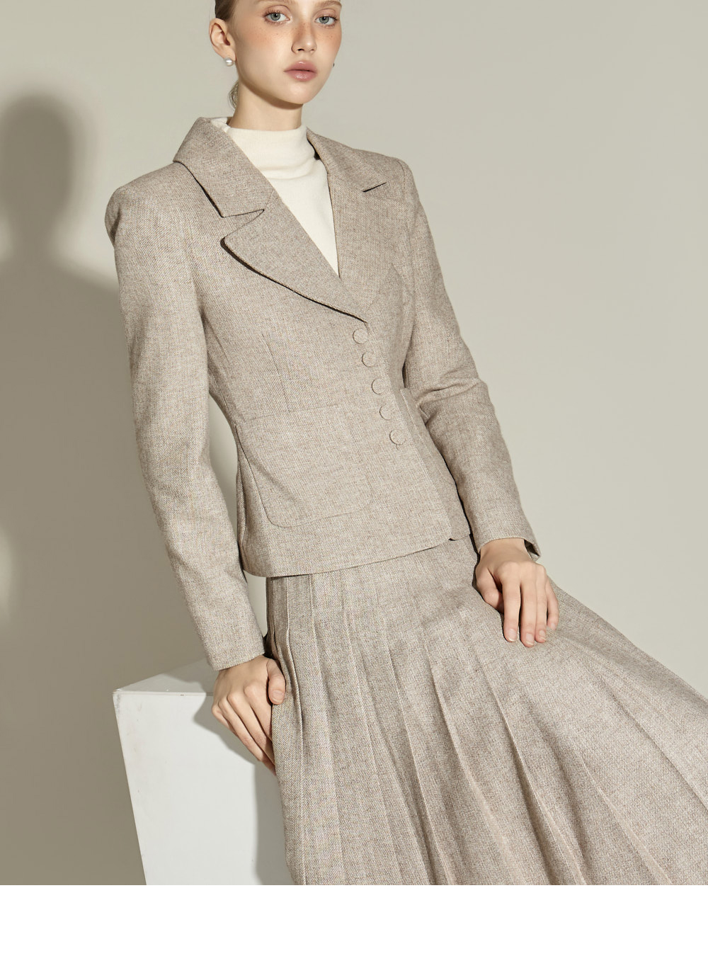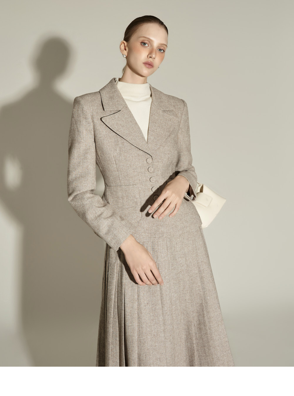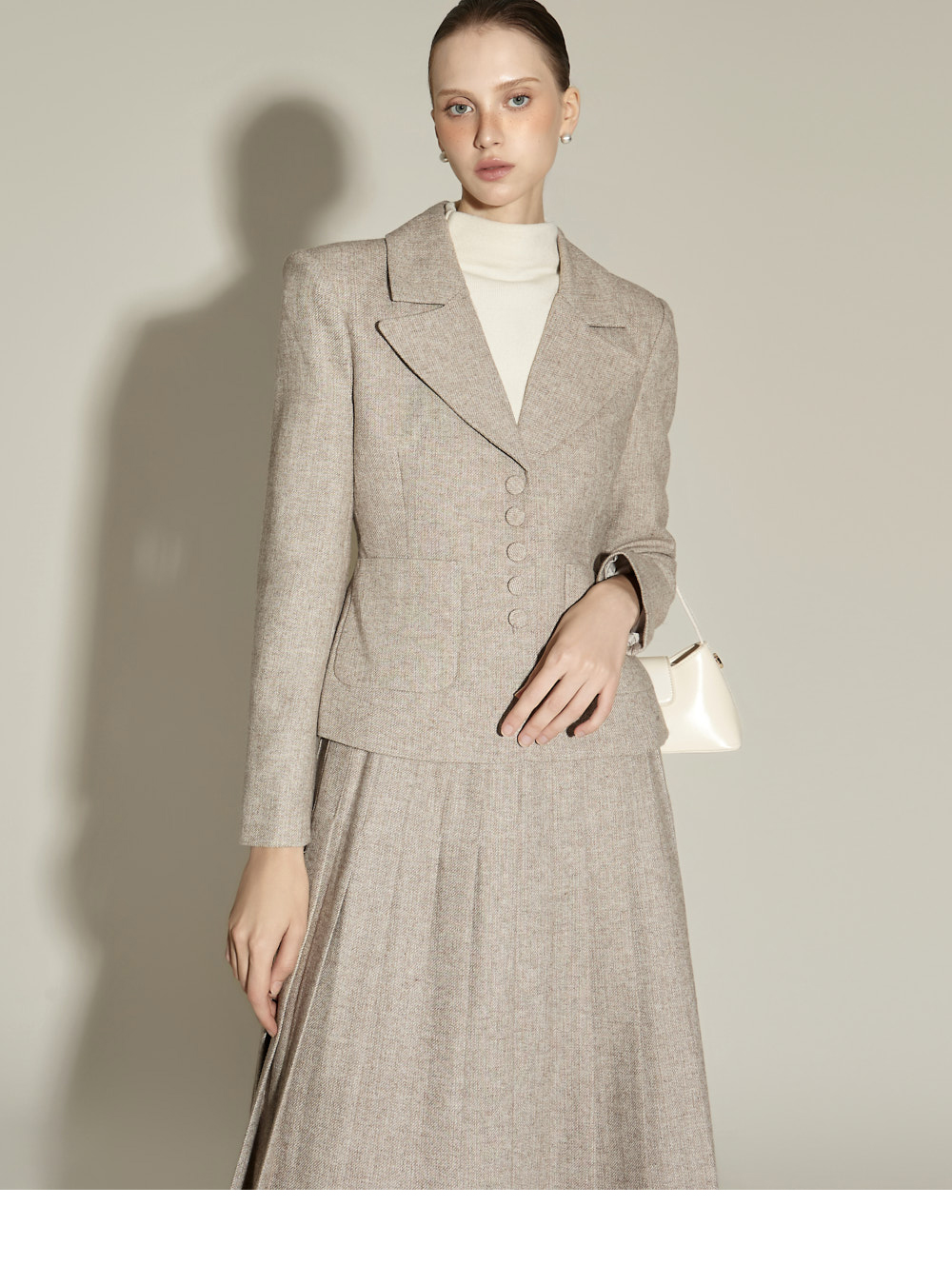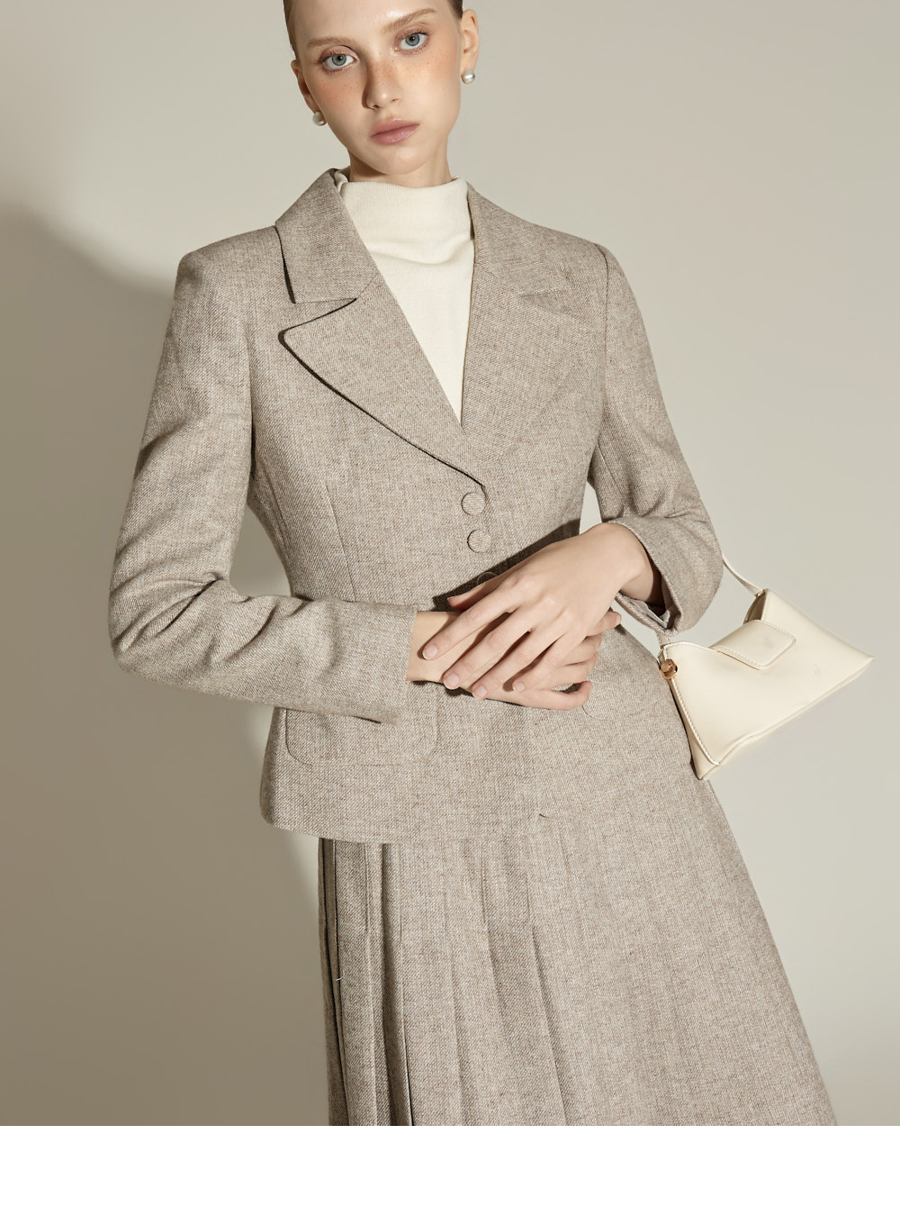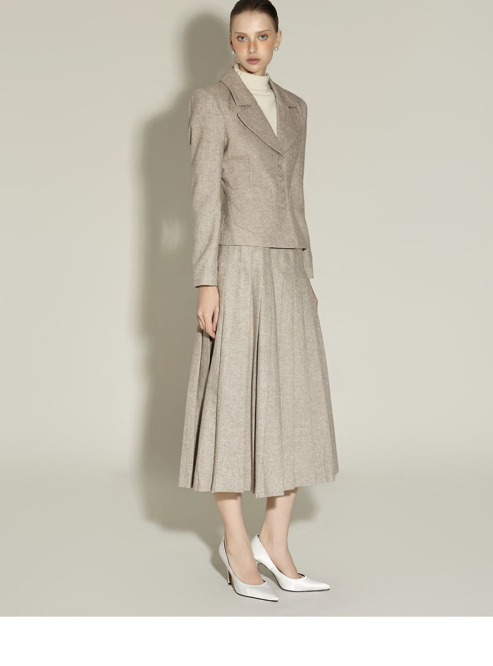 休闲风格的毛呢羊毛半身裙。 由羊毛与聚酯混纺面料制成,带来温暖的穿着感,同时增添经典气质。 长款剪裁与自然散开的 A 字版型,既能修饰身形,又展现女性优雅的氛围,微妙的百褶设计为造型增添不单调的精致感。 与同材质夹克搭配成套穿着,能打造更整洁且有品味的日常造型,单独穿着时也可轻松与毛衣、衬衫等多种上衣搭配。 174CM 模特,穿 S 码,BEIGE 色。