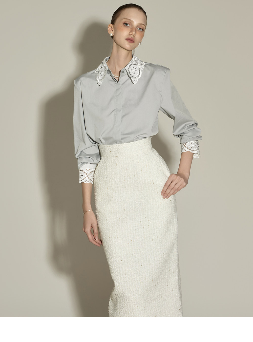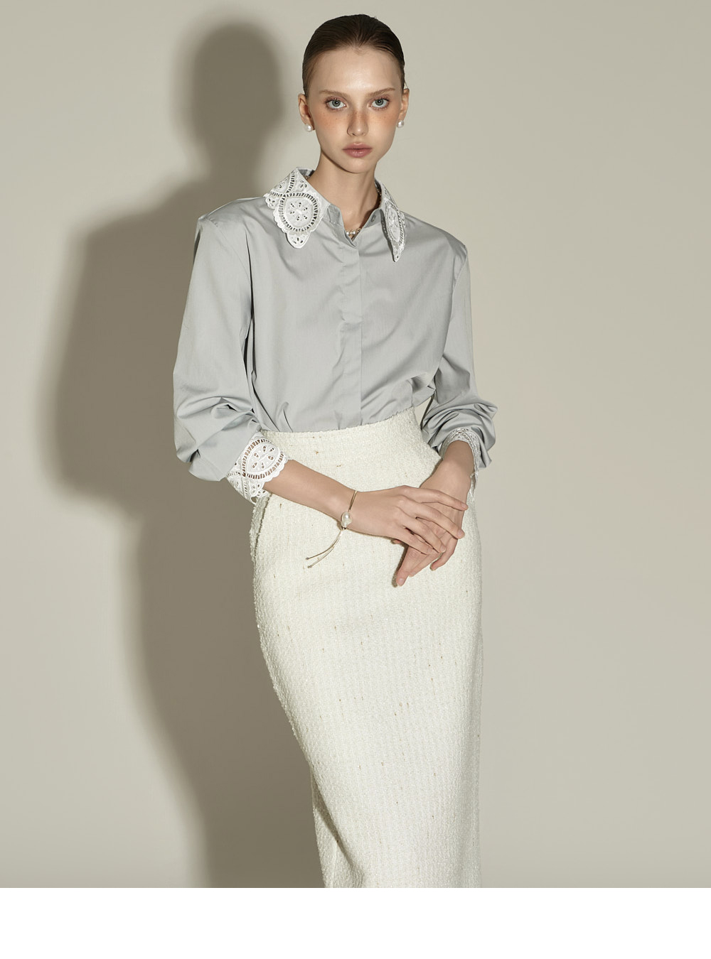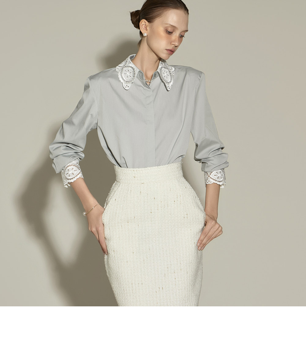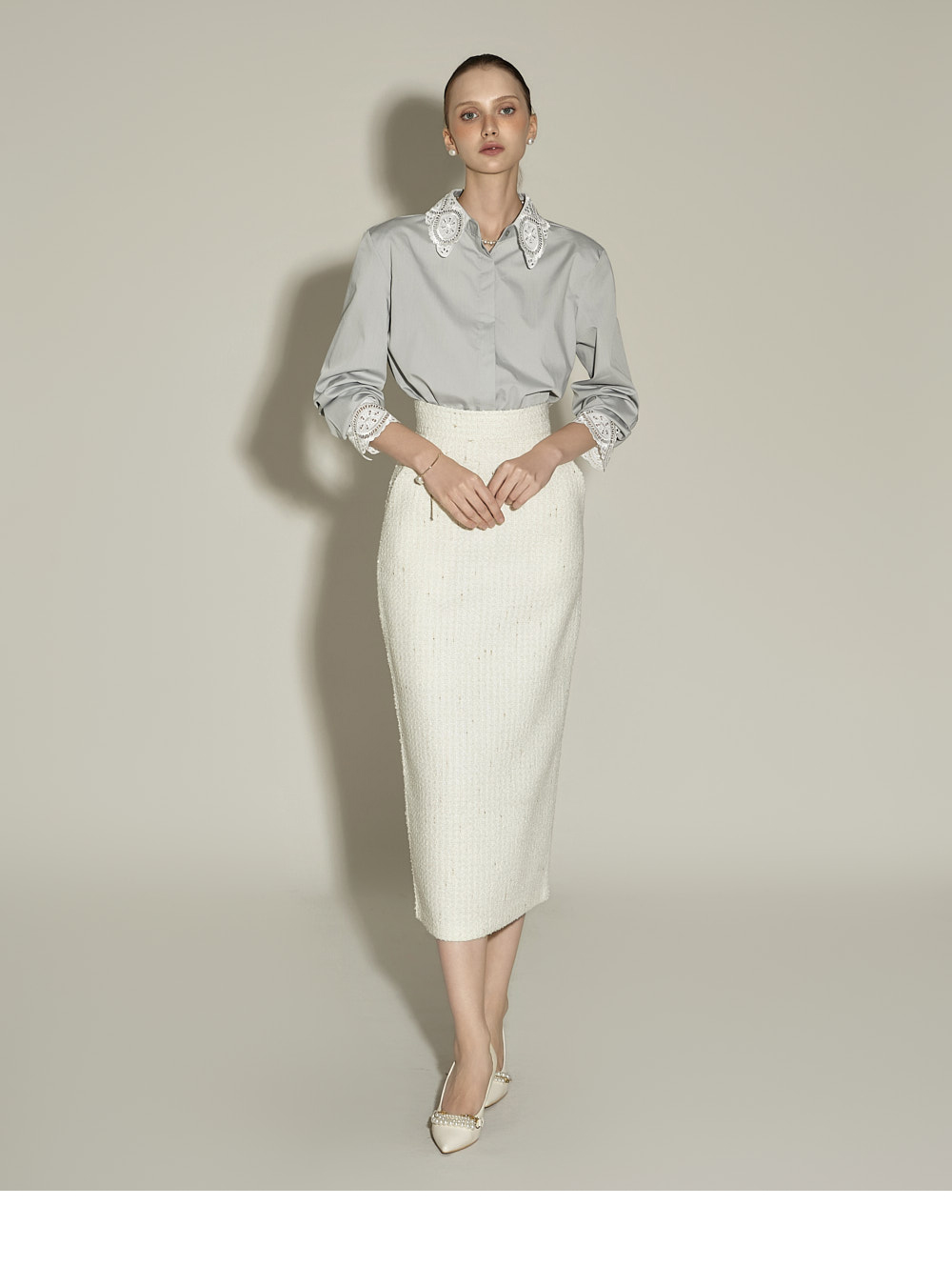 干净的H型剪裁和中长裙长度呈现整洁且女性化的氛围,后开衩设计增加活动便利性。