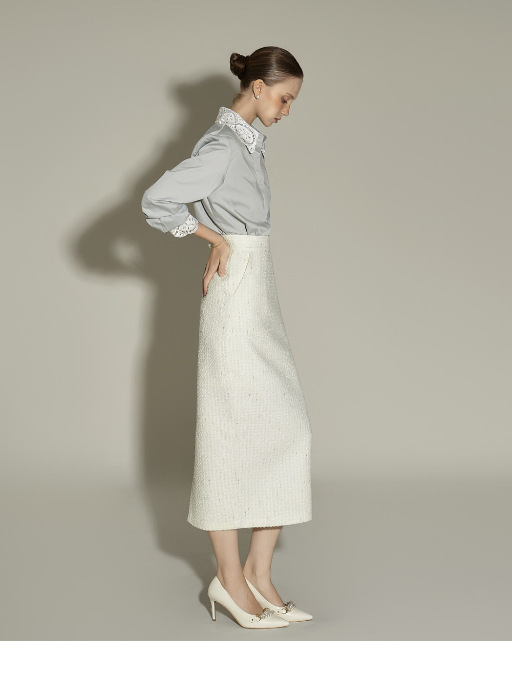 这是一款可营造可爱氛围的粗花呢羊毛半身裙。