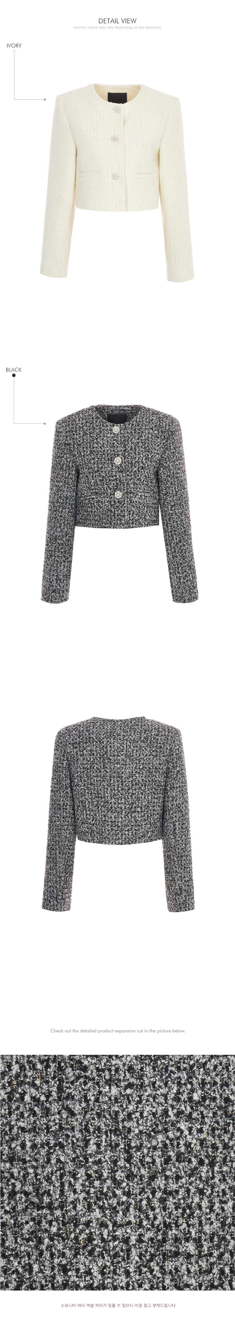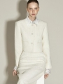 外套采用无领设计与短款版型,增添女性化且经典的气息,前襟纽扣设计及适中的肩垫营造整洁的外型轮廓。