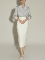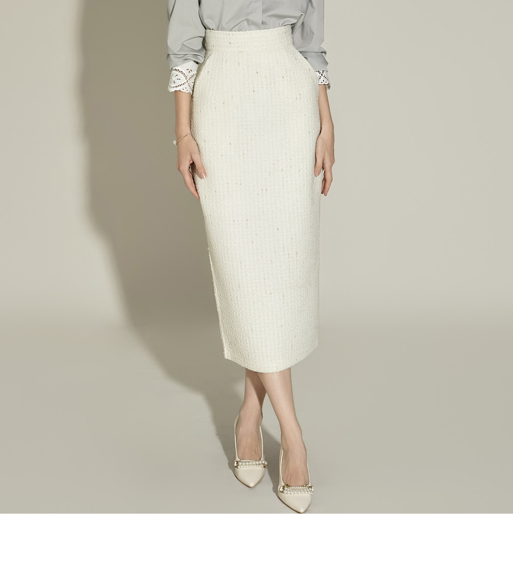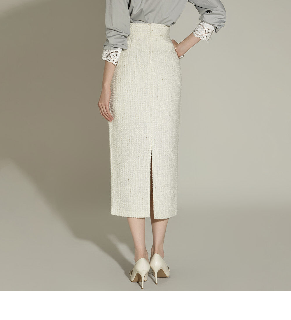 半身裙为H型廓形与中长裙长度,不仅修饰身形,后侧开衩设计提升活动便利性,背部拉链及部分内衬提供舒适穿着感。