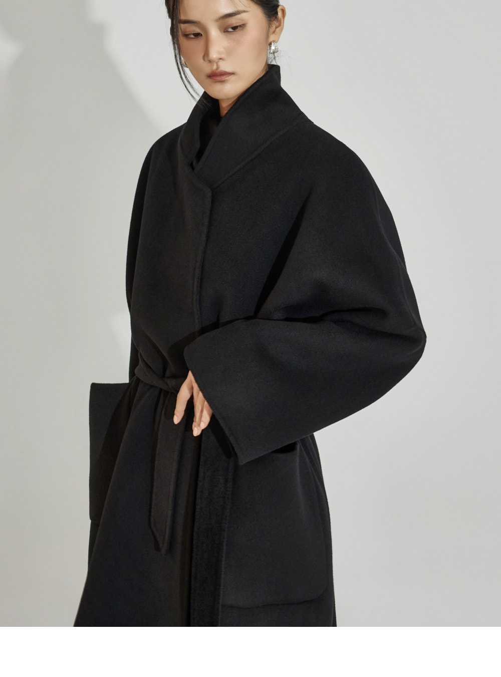 现代感的腰带套装羊毛羊绒大衣。