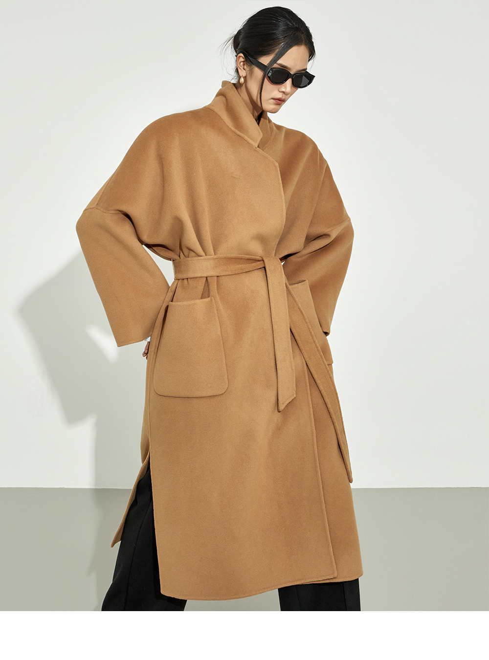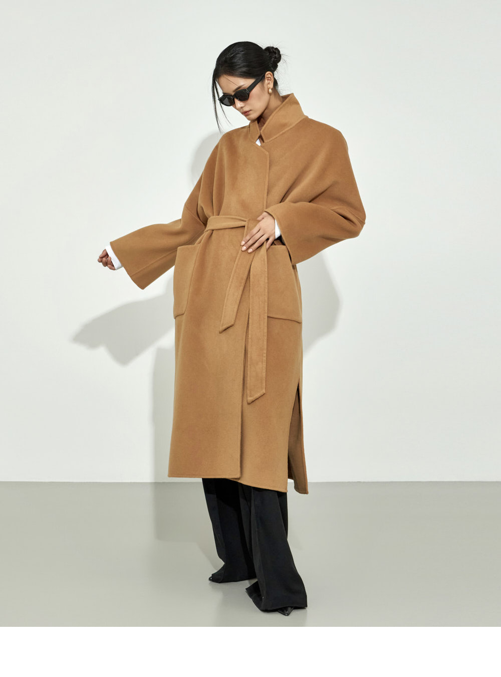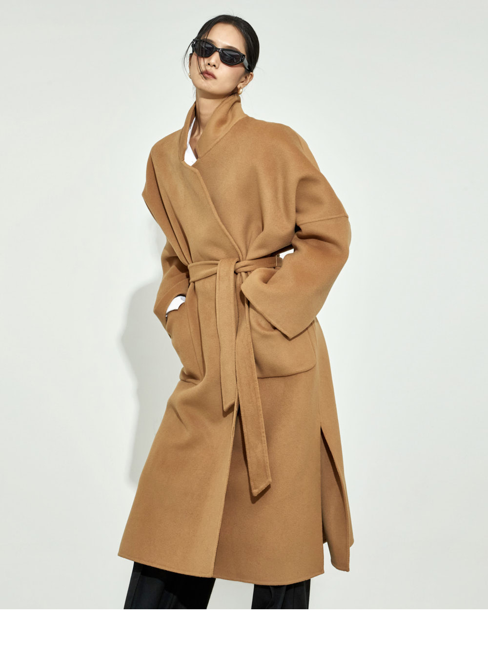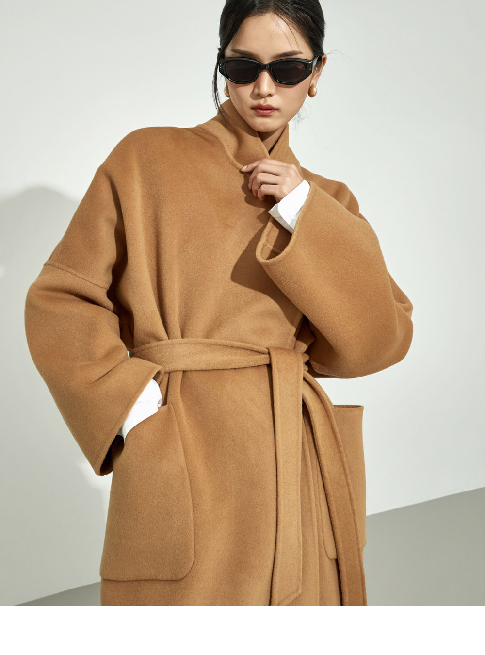 模特身高174CM,穿着ONE码,颜色为CAMEL。