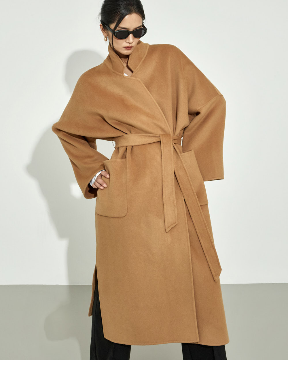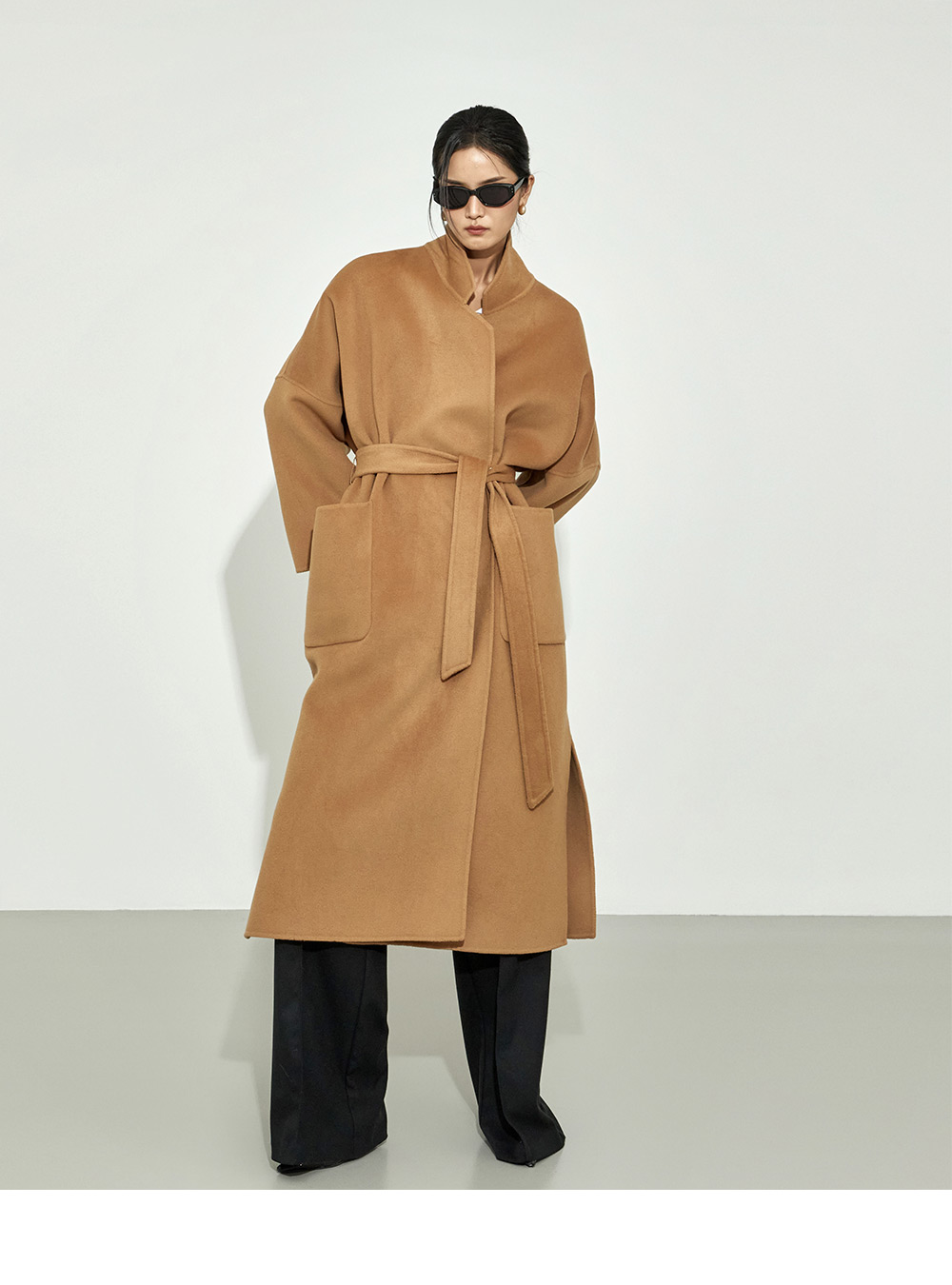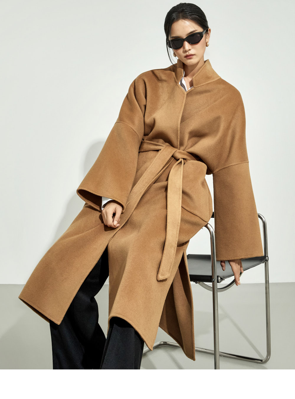 采用羊毛与羊绒混纺材质制作,触感柔软且保暖性优越,是适合换季穿着的高实用性外套。