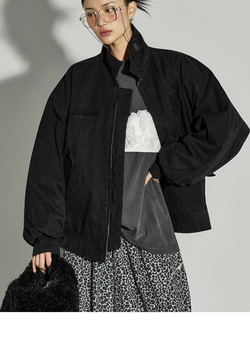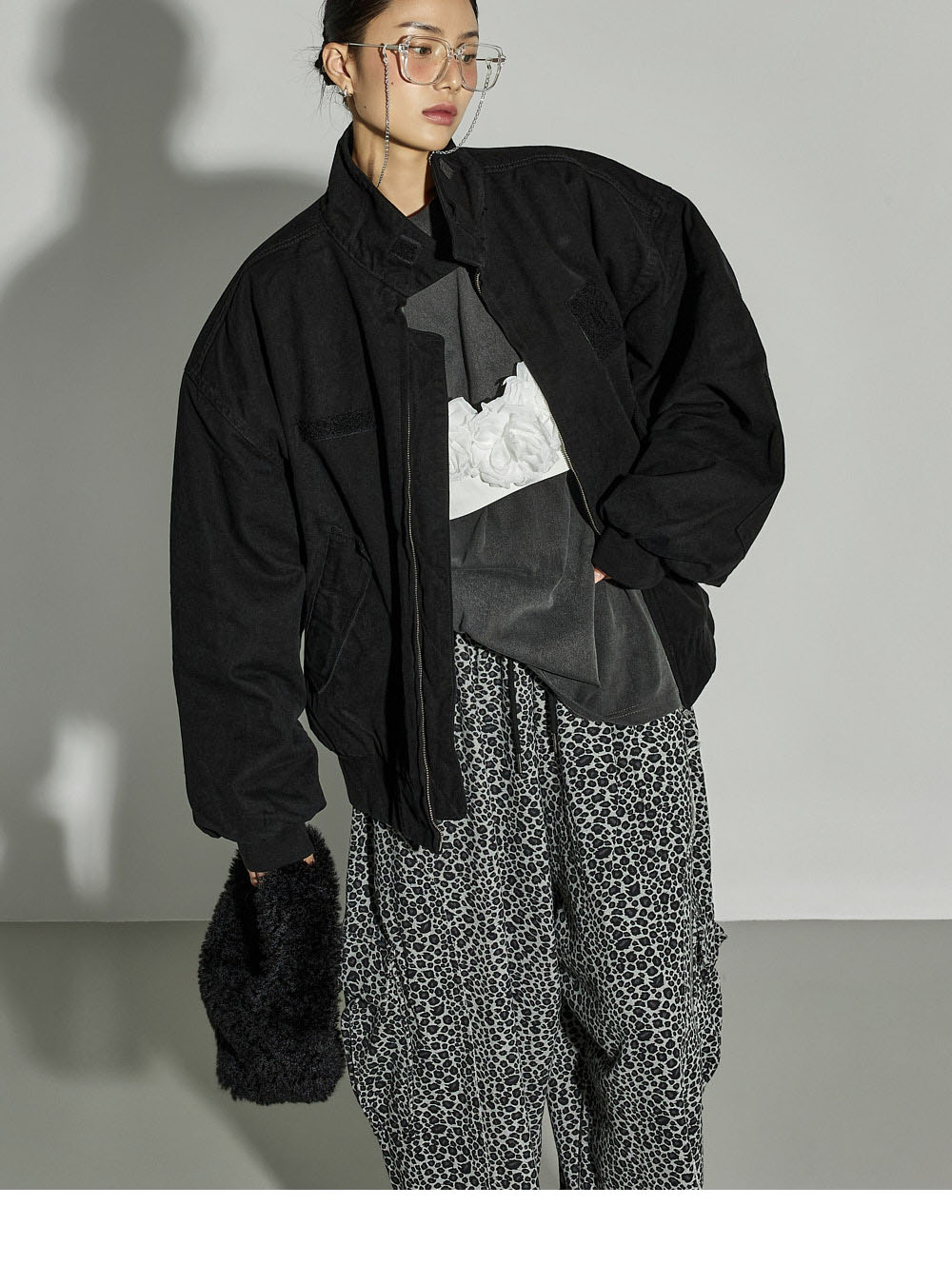 采用挺括的棉质面料制作,适合作为换季外套,宽松廓形提供舒适的穿着感。