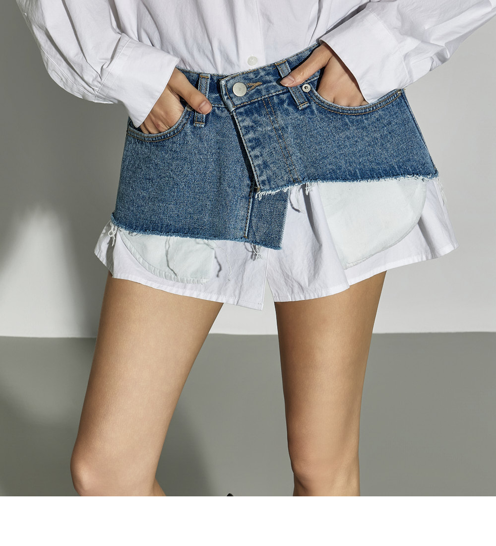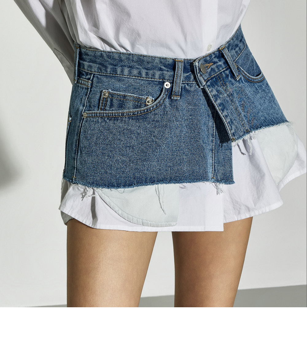 这是一款独特风格的叠穿牛仔裙。