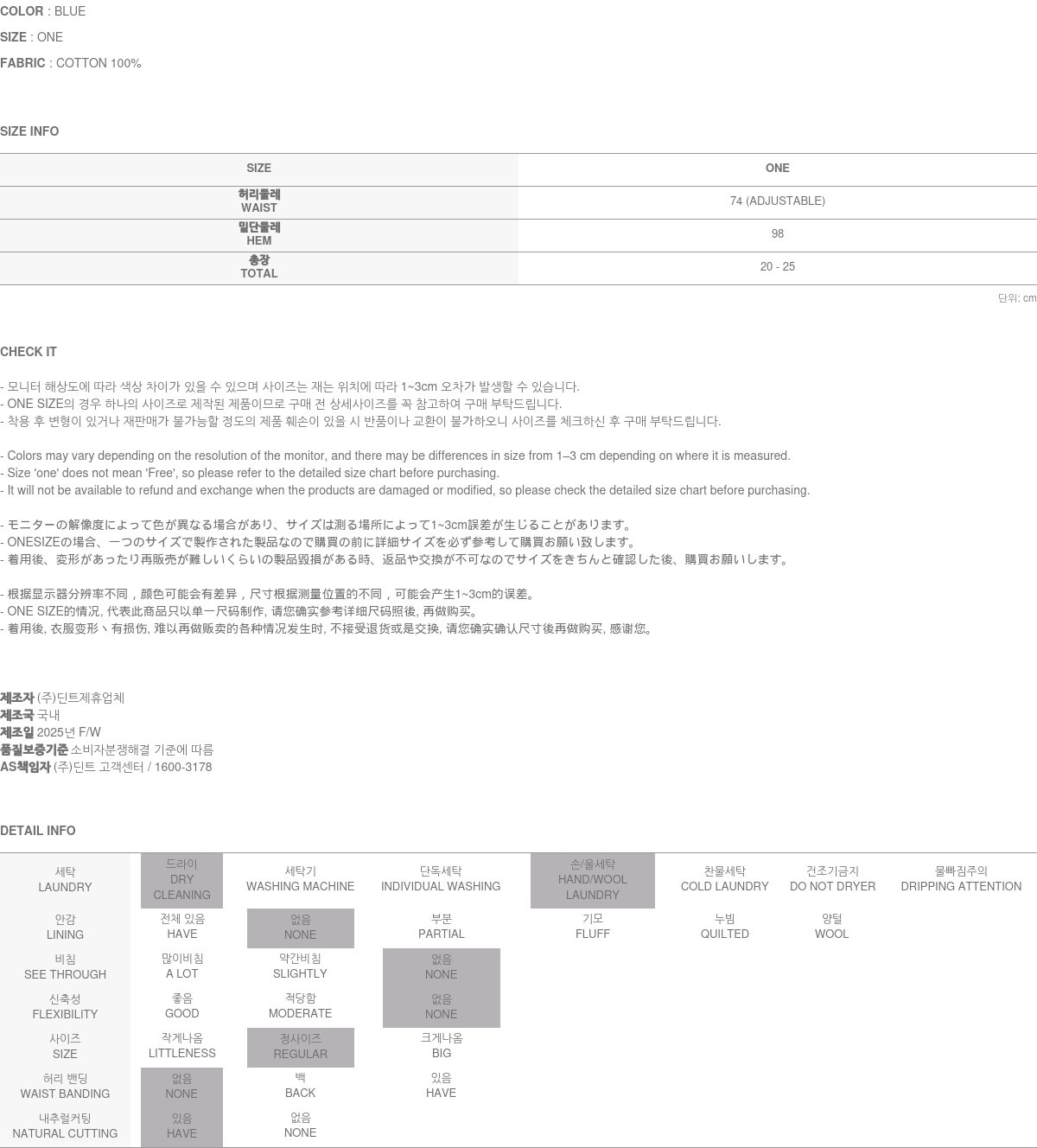 模特身高171CM,穿着ONE尺码,蓝色款。