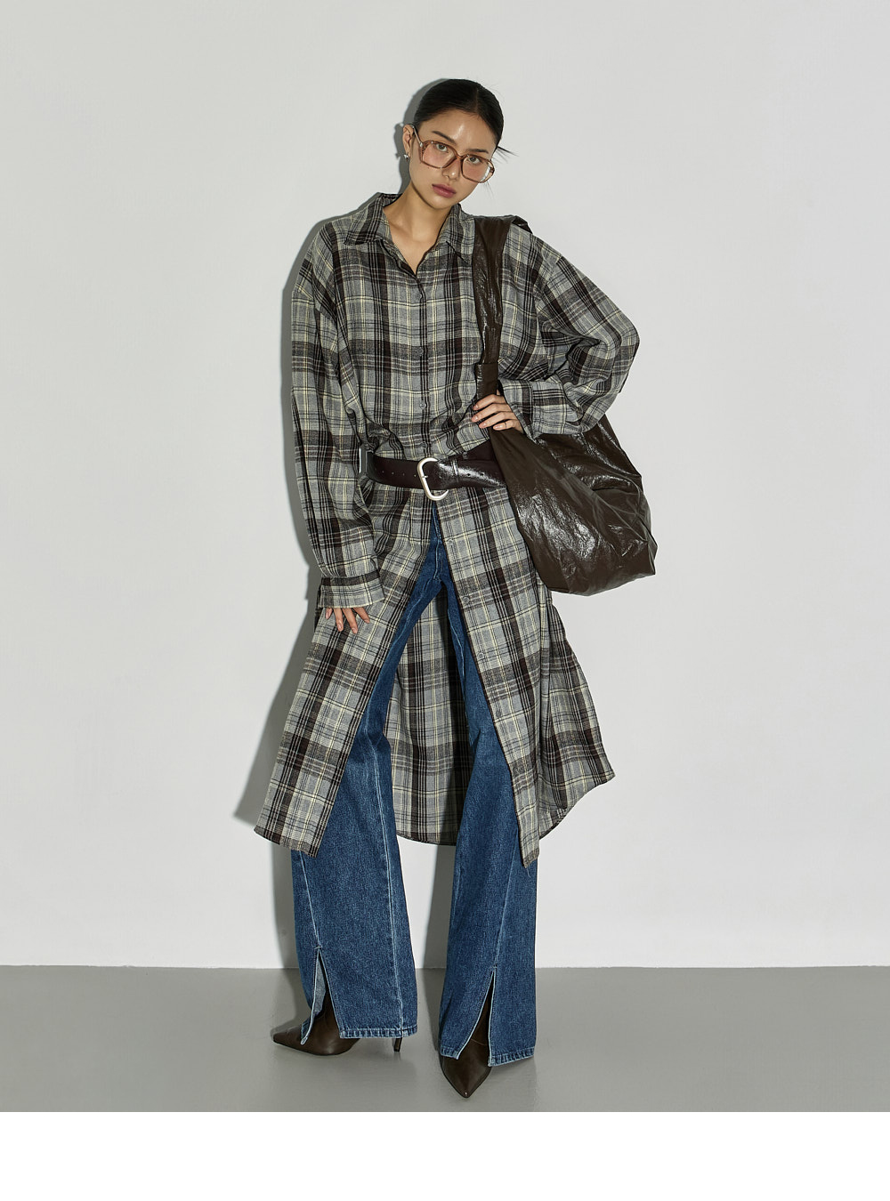 配有同款腰带,可束腰调整轮廓,也可自然松开呈现宽松廓形。