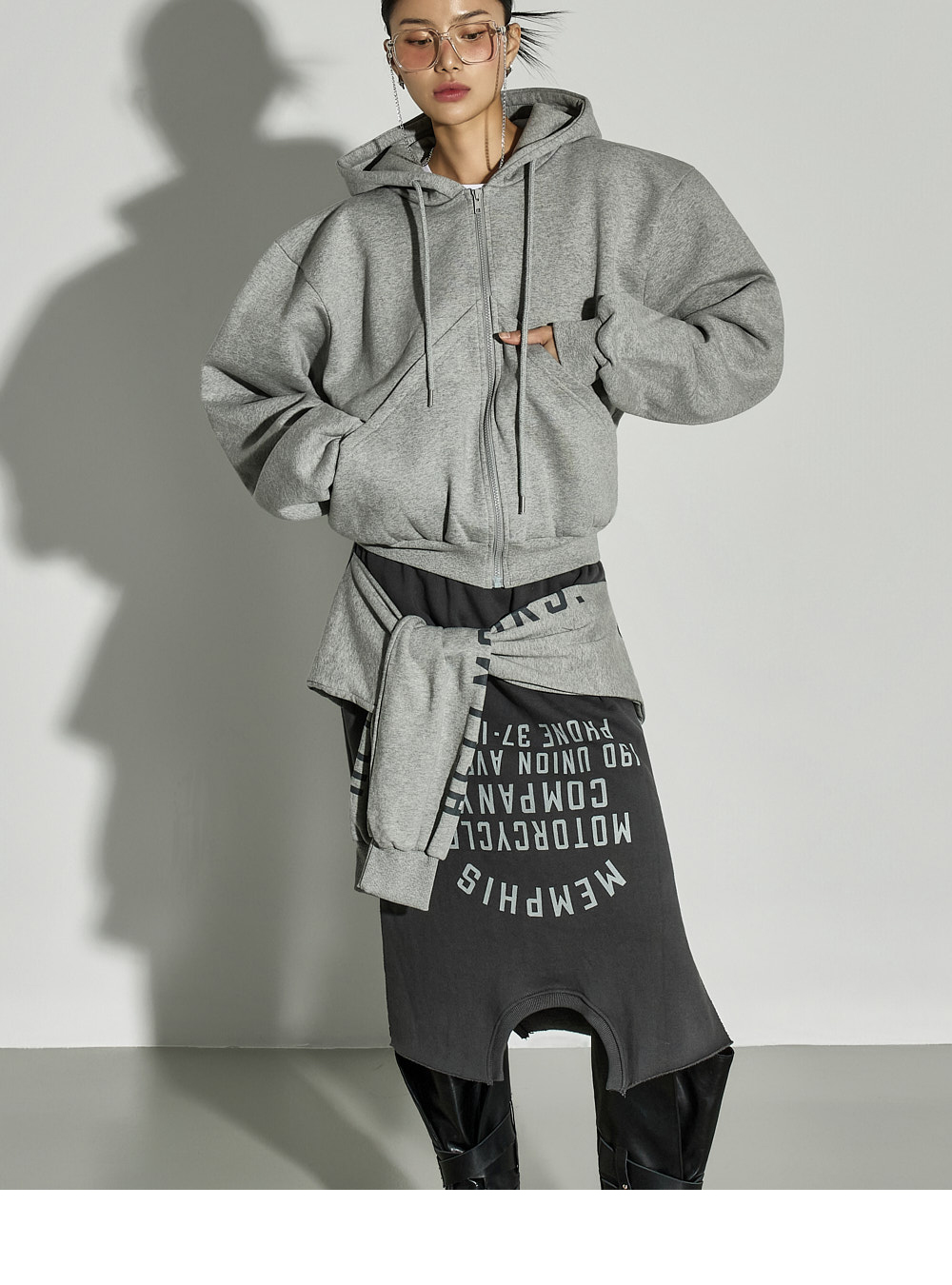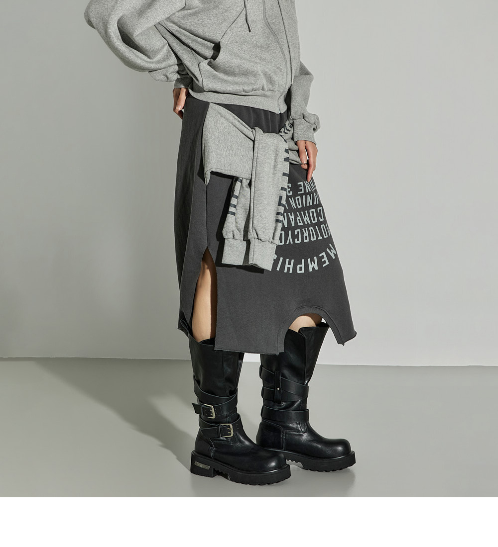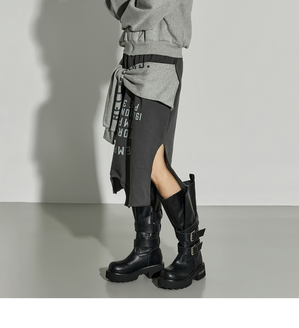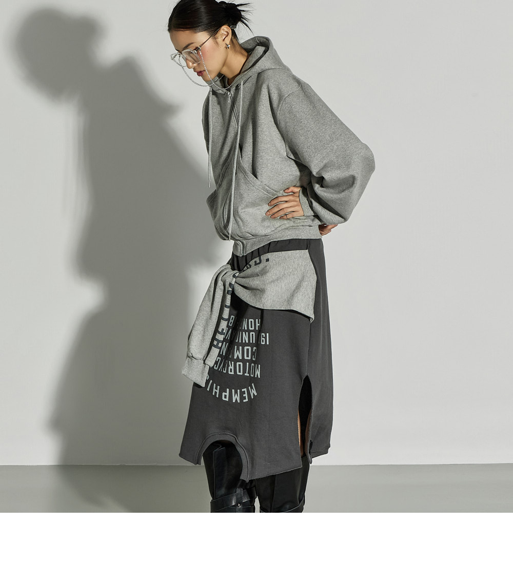这是一款休闲风格的绑带叠层半裙。 采用棉与聚酯纤维混纺面料制作,穿着舒适且稳固,内侧带绒里增强保暖性,适合冬季穿搭,实用性高。 腰部全松紧设计,穿着轻松自在,下摆自然裁切,并搭配不对称裙摆设计,呈现独特轮廓。 侧开衩提升活动性,绑带细节如同双袖设计,可多样化搭配,营造叠穿感般的时尚亮点。 与宽松针织衫、连帽衫或oversize外套搭配,即可打造时尚休闲造型。 模特身高171CM,穿着ONE尺寸,颜色为CHARCOAL。