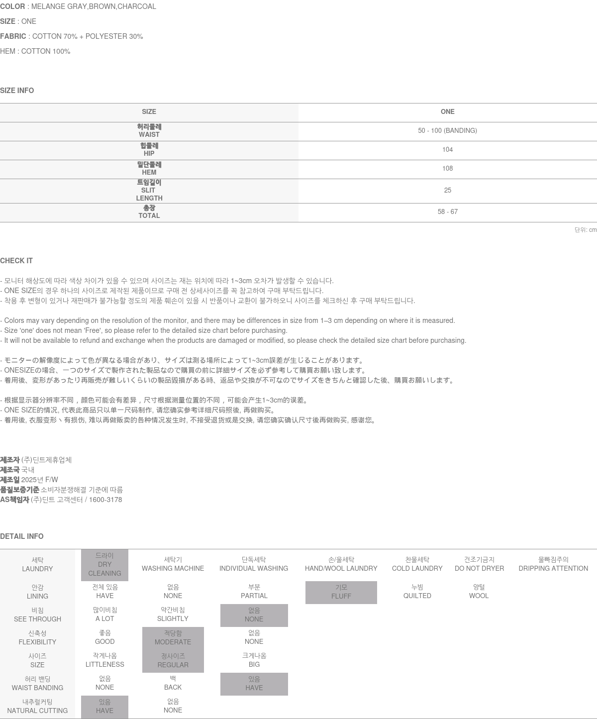 關於售後服務 瑕疵商品, 或是布料瑕疵、不正確標註的尺碼或質料, 引起的問題, 將會爲您進行修復/車縫 → 交換 → 退貨處理 (換貨與退貨的實際舉例, 請參考 ”換貨與退貨“ 與 “無法進行換貨與退貨的情況”之說明.) A/S負責人與連絡電話:DINT.Inc (gbcs_dint@naver.com)