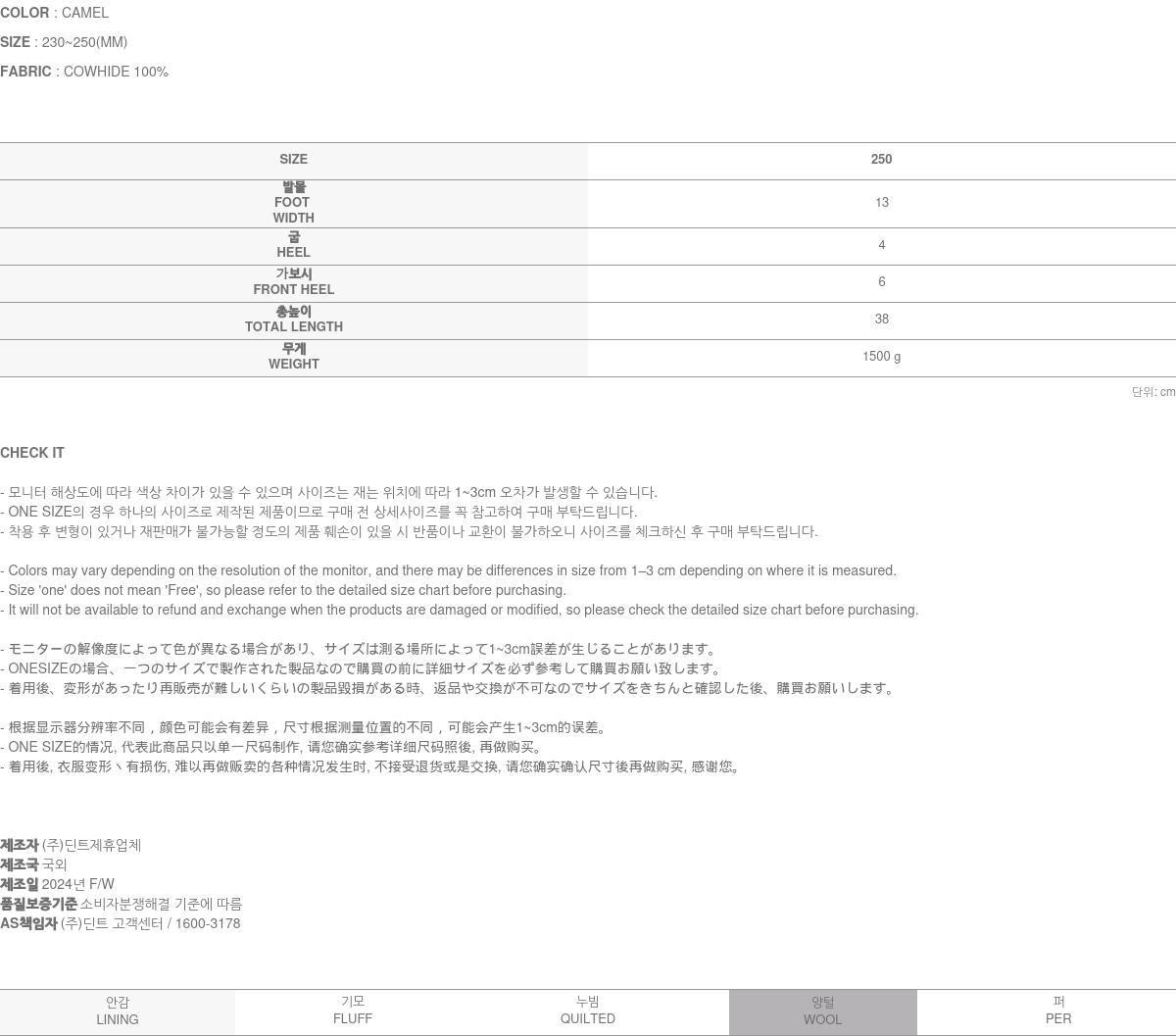 洗滌方法 與 處理時的注意事項 DINT的所有商品, 使用一般洗滌或是烘乾機, 皆有可能成爲變形或是商品損傷的原因, 建議您使用乾洗. 鞋子污染情況時, 建議您在受污染的部分, 塗上極少量的清潔劑, 進行管理. 包類商品水洗時, 有可能造成變形, 皮革商品類, 請使用皮革專用清潔劑做管理. 飾品類經過長時間的保管與着用時, 有可能造成變形. (保管時, 請個別分離做保管, 且建議使用專用管理產品做分類管理.) 丹寧商品的部分, 商品特徵上洗滌時有可能會掉色, 着用時請多加留意.