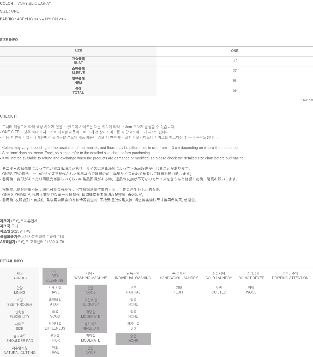 • DINT的所有商品, 使用一般洗滌或是烘乾機, 皆有可能成爲變形或是商品損傷的原因, 建議您使用乾洗.