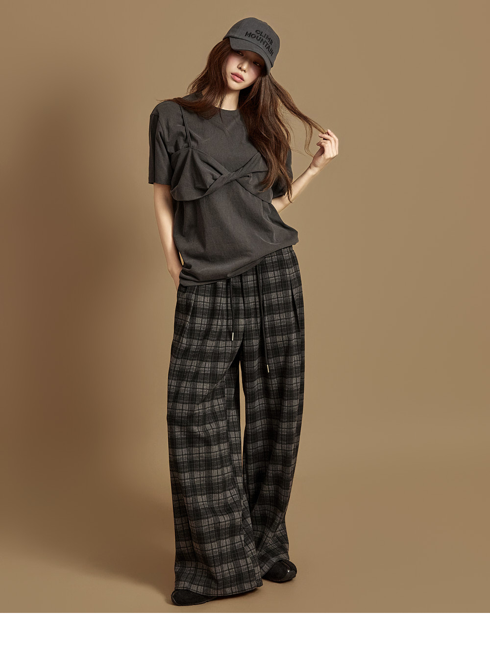 171CM 모델 ONE 사이즈, CHARCOAL 컬러 착용하였습니다.