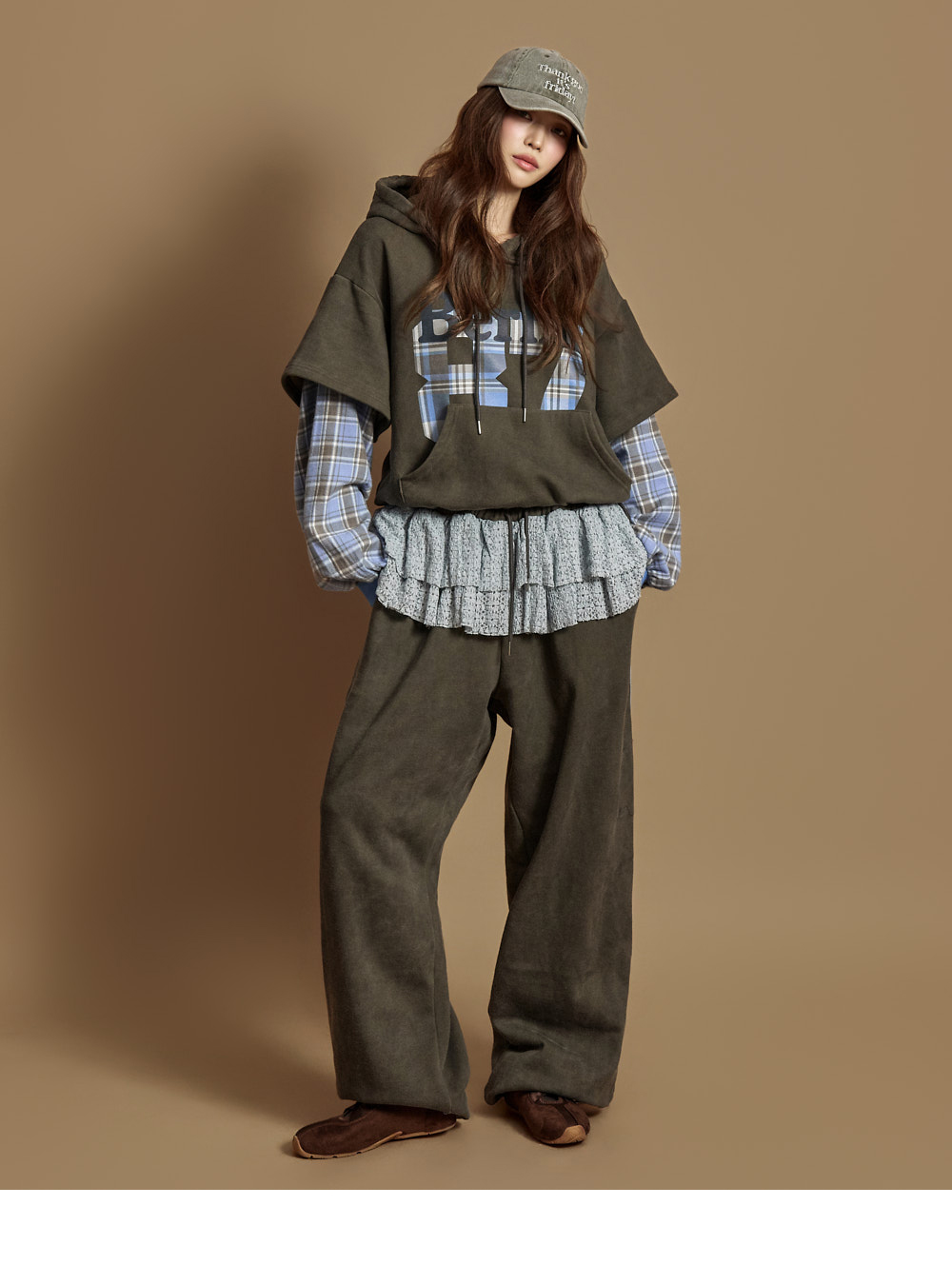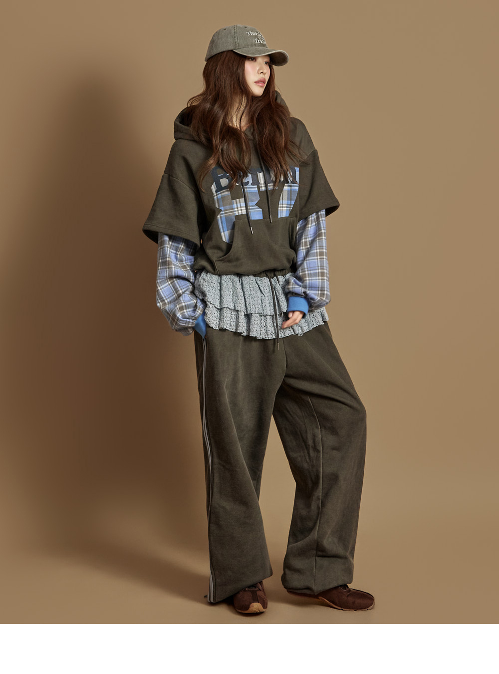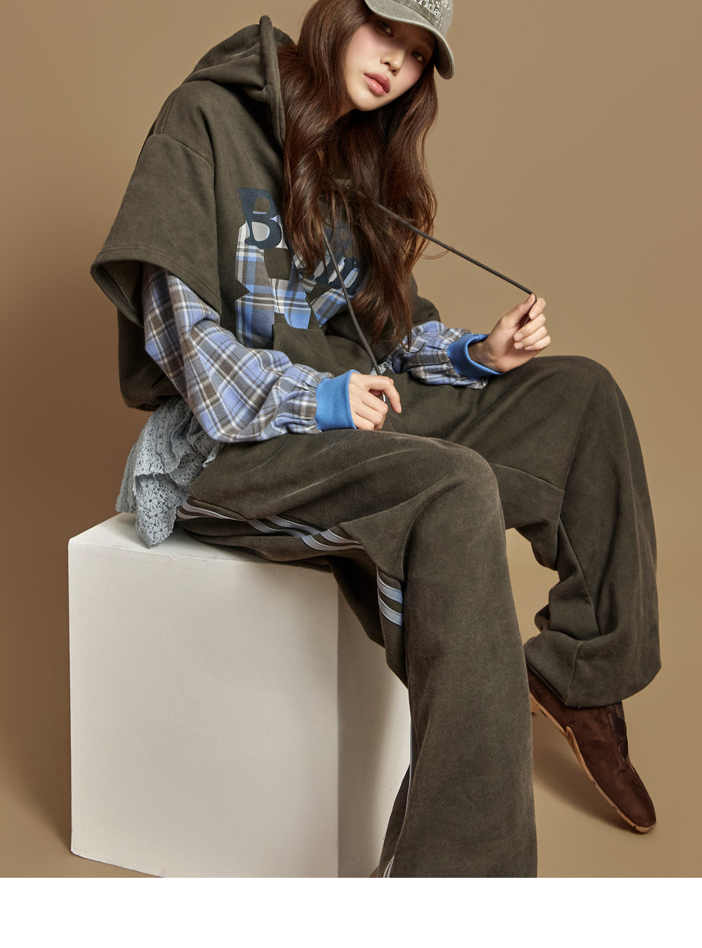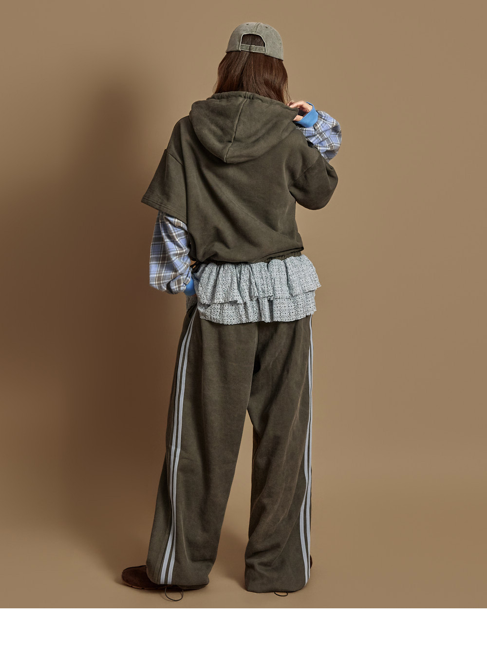 캐주얼한 무드의 후드 팬츠 셋업입니다.