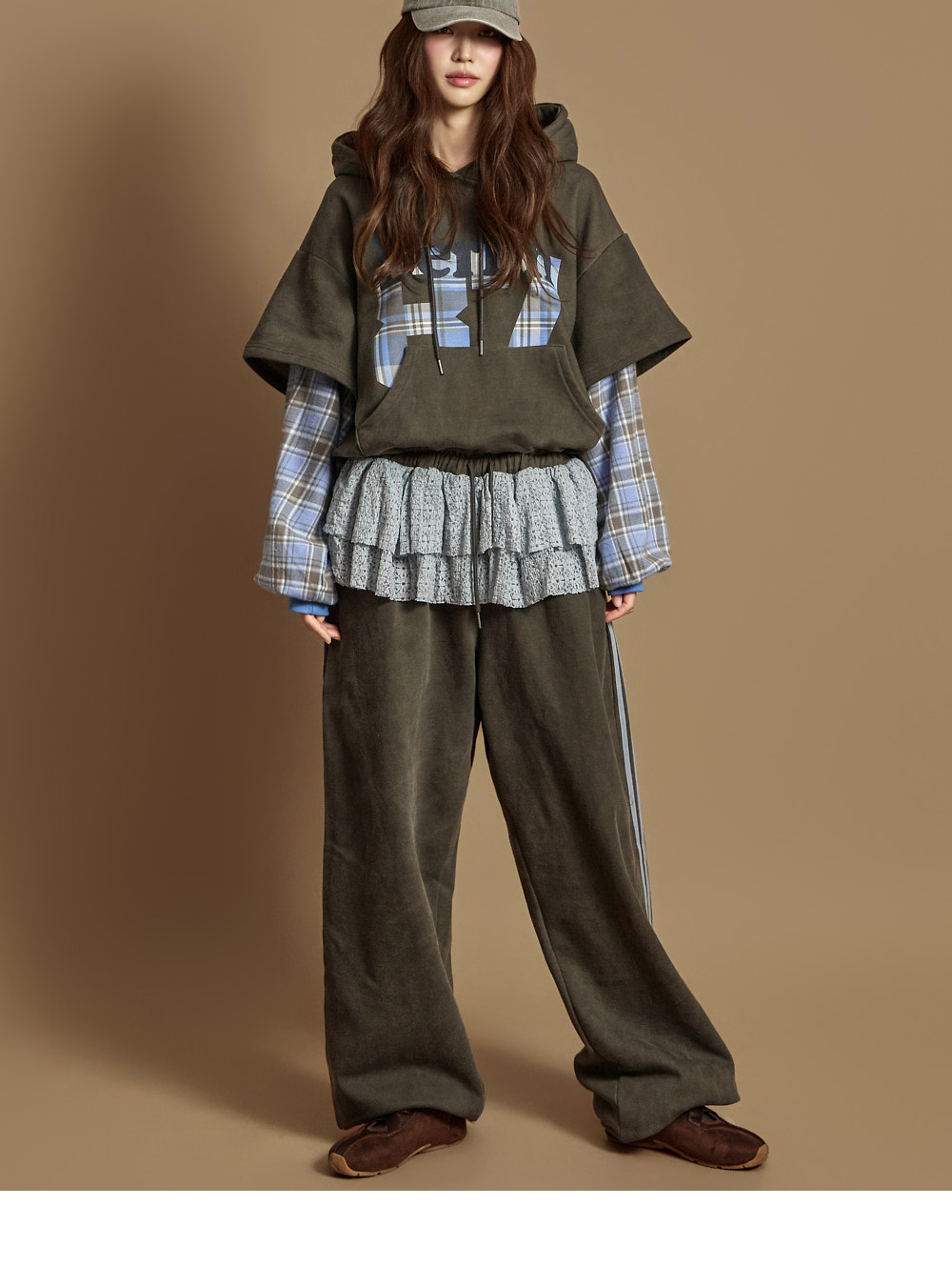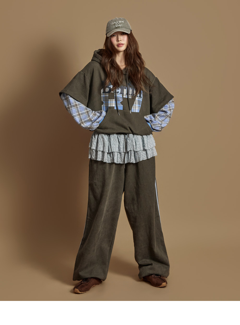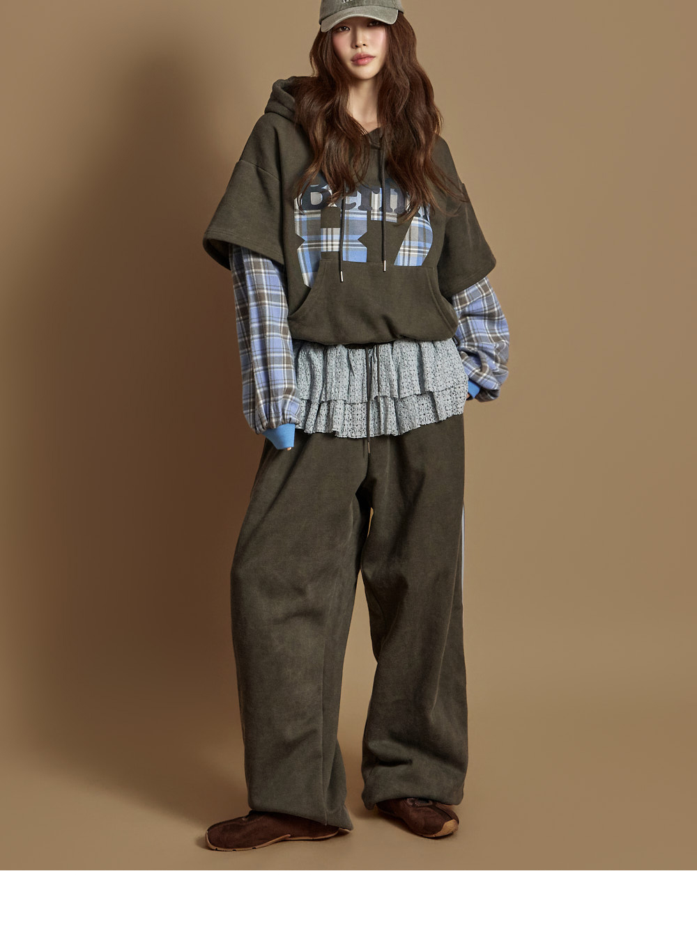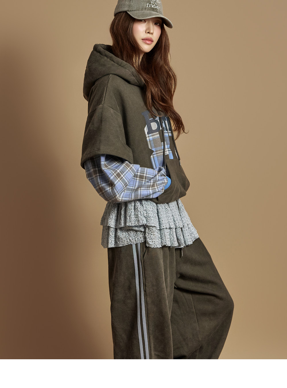 캐주얼한 무드의 후드 팬츠 셋업입니다.
