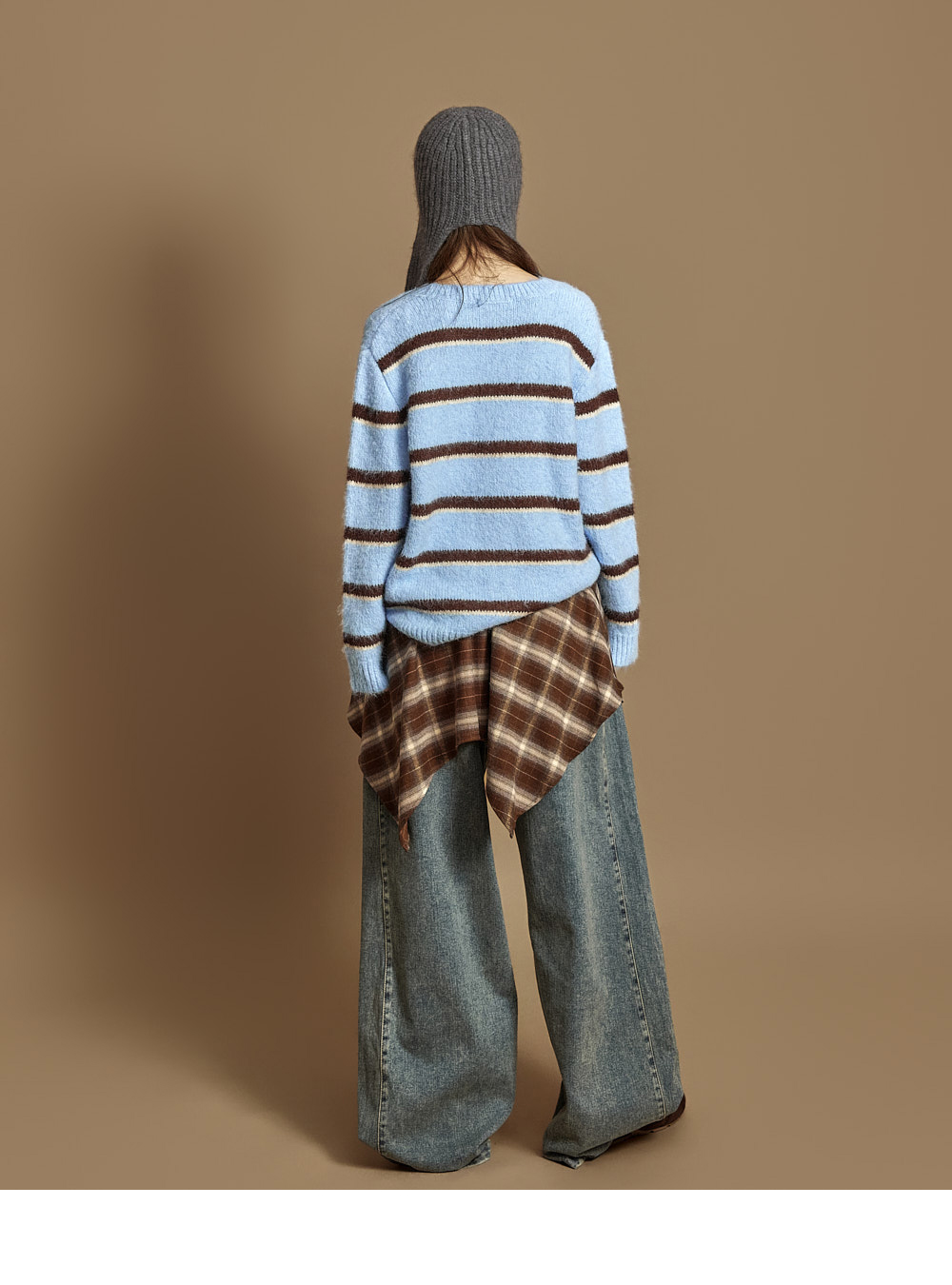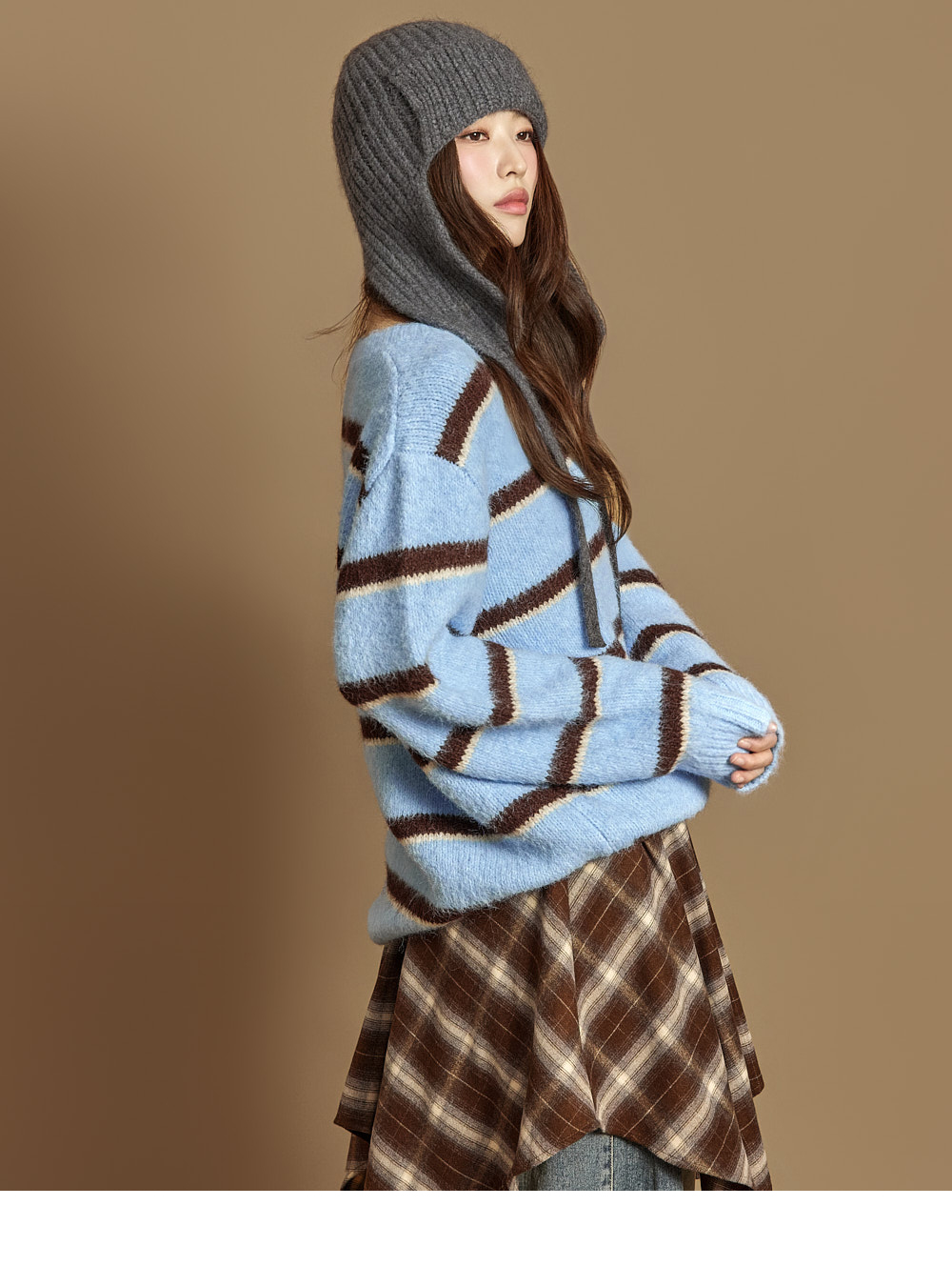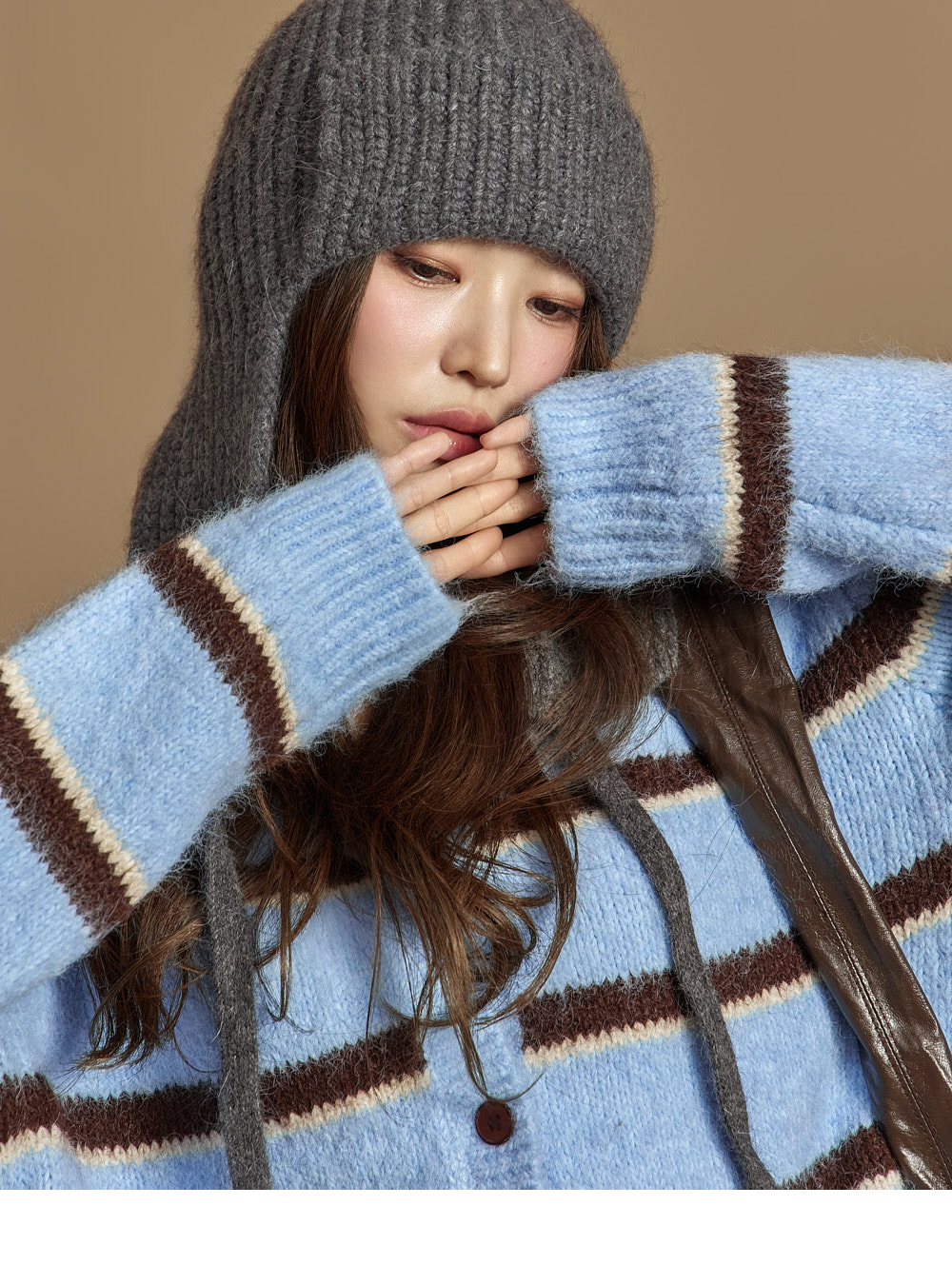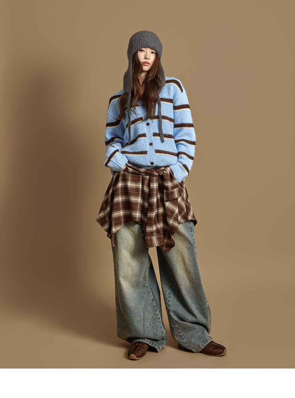 充满休闲气息的条纹羊毛开衫。 采用再生纤维、聚酯纤维、尼龙与羊毛混纺材质制成,轻盈柔软,带来温暖舒适的穿着感。 宽松版型自然垂坠,配以条纹图案,展现出休闲又时尚的氛围。 V领设计便于与内搭叠穿,前襟纽扣开合方便穿脱,材质具备良好弹性,活动更加自如。 无论搭配牛仔裤、半身裙等多种下装,都能轻松打造出随性又有格调的造型。 171CM 模特穿着 ONE 码,颜色为 SKY BLUE。