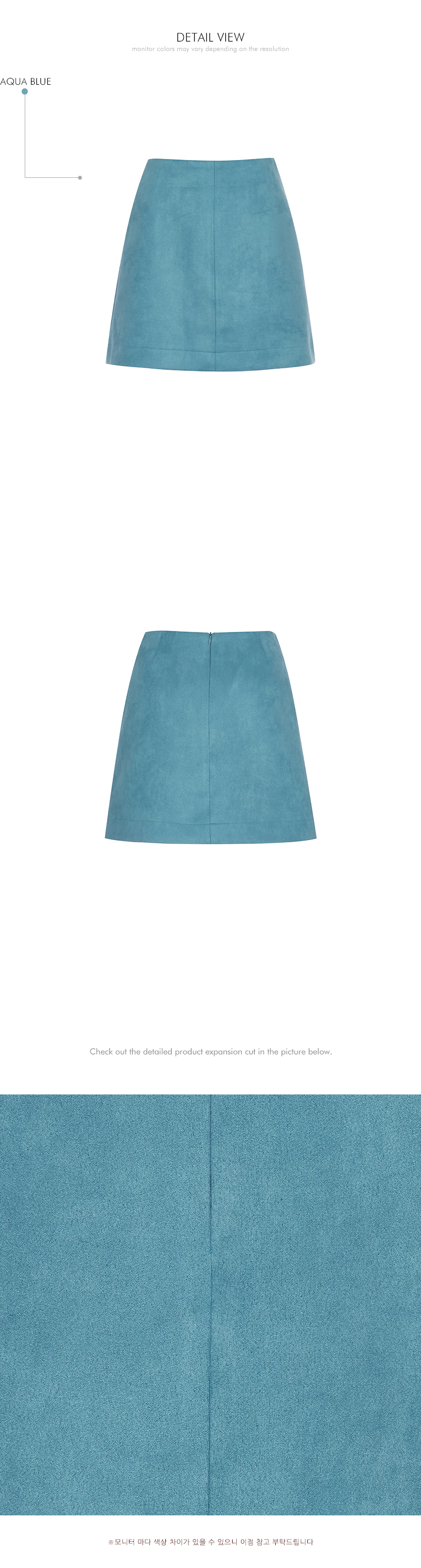 这是一款充满休闲气息的麂皮迷你半身裙。 采用聚酯纤维与氨纶混纺面料制成,质地挺括又富有弹性,穿着舒适自然,柔软的麂皮质感更添高级与精致氛围。 短款 H 型版型设计,能修饰腿部线条,让双腿显得更加纤细修长,后背拉链开合,穿脱便捷且线条利落。 整体内衬设计,提升穿着的稳定与舒适度,可与针织衫、衬衫、连帽卫衣等多种上装搭配,无论是日常休闲造型,还是具有时髦感的亮点造型都能轻松驾驭。 模特身高 171CM,穿着 S 码,展示 AQUA BLUE 颜色。